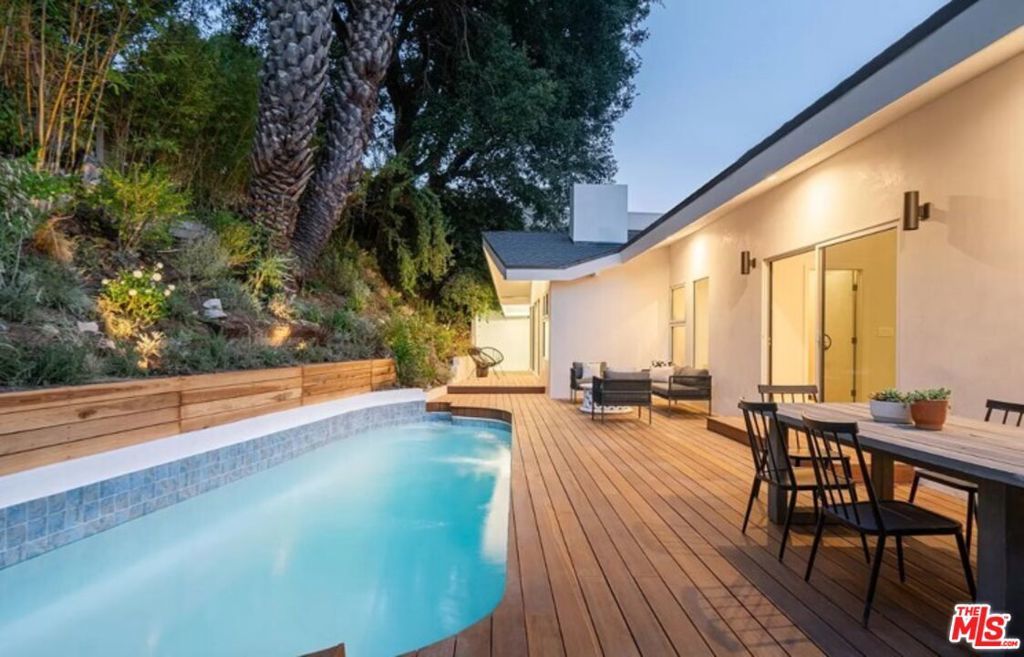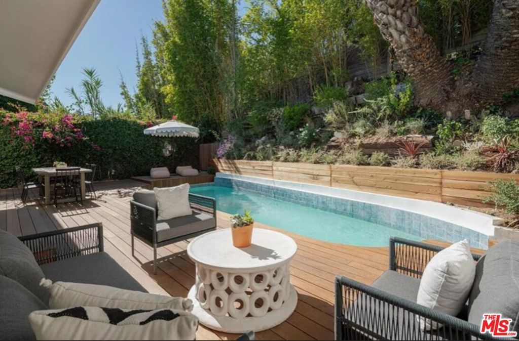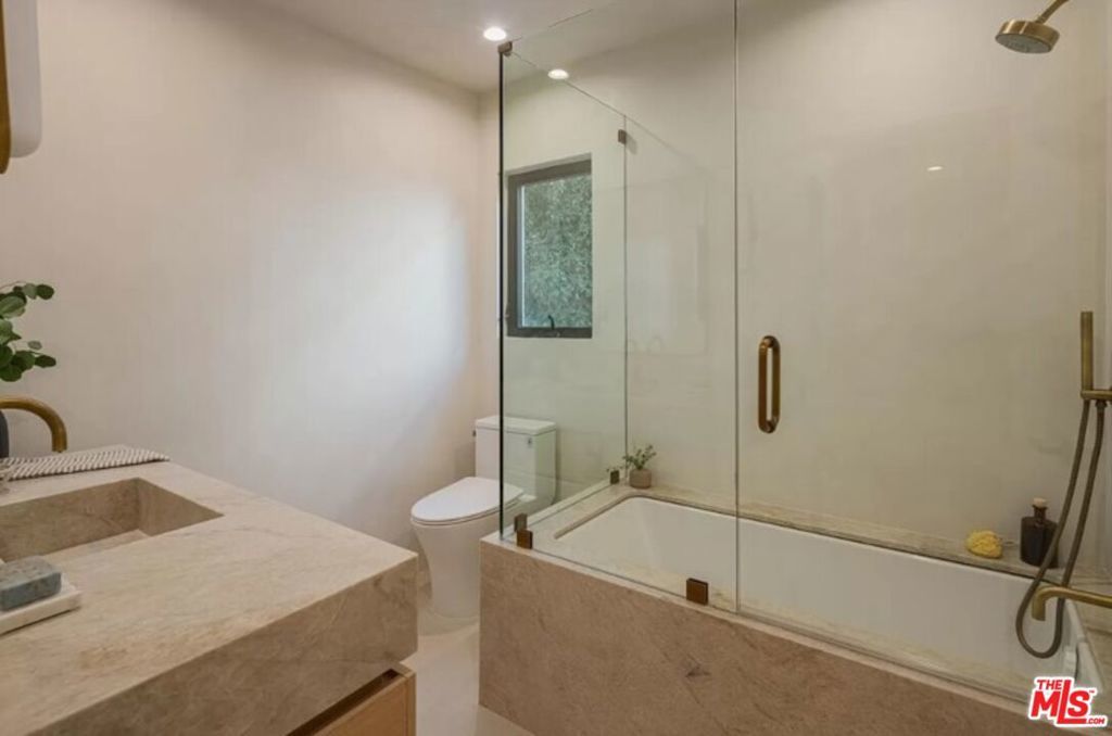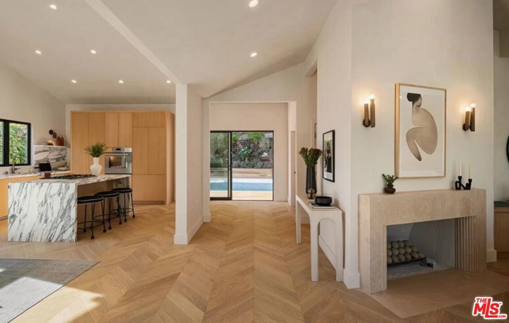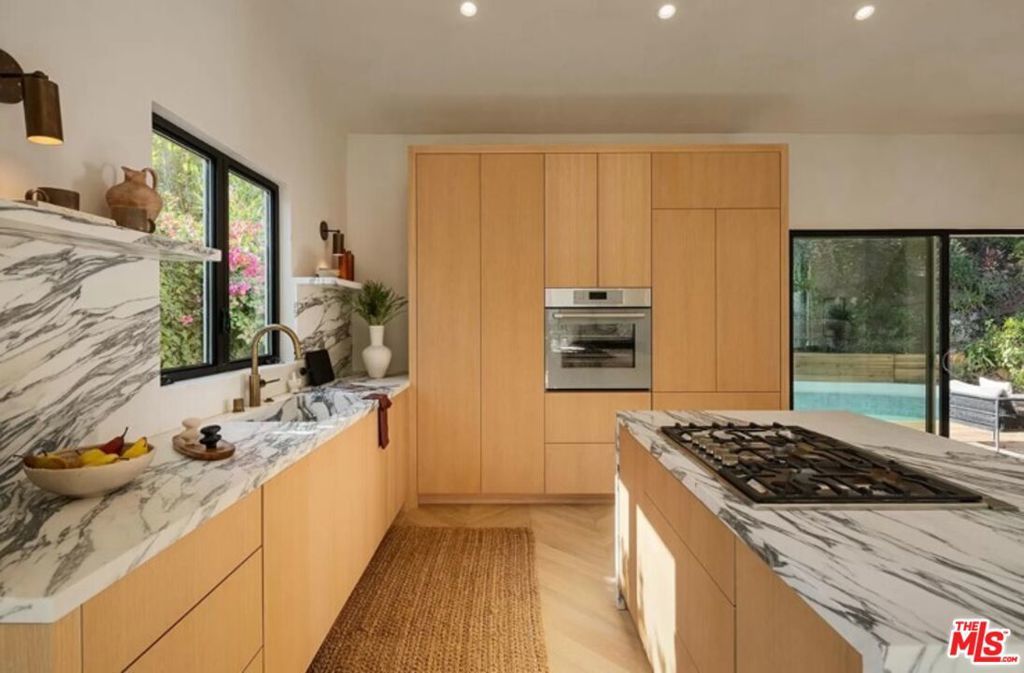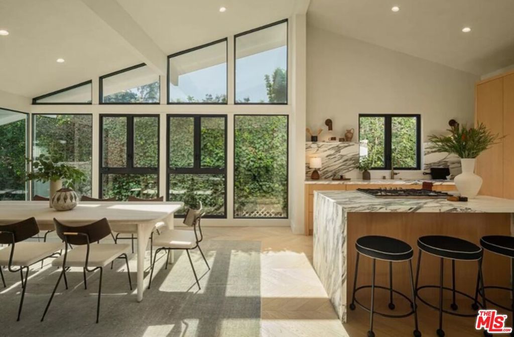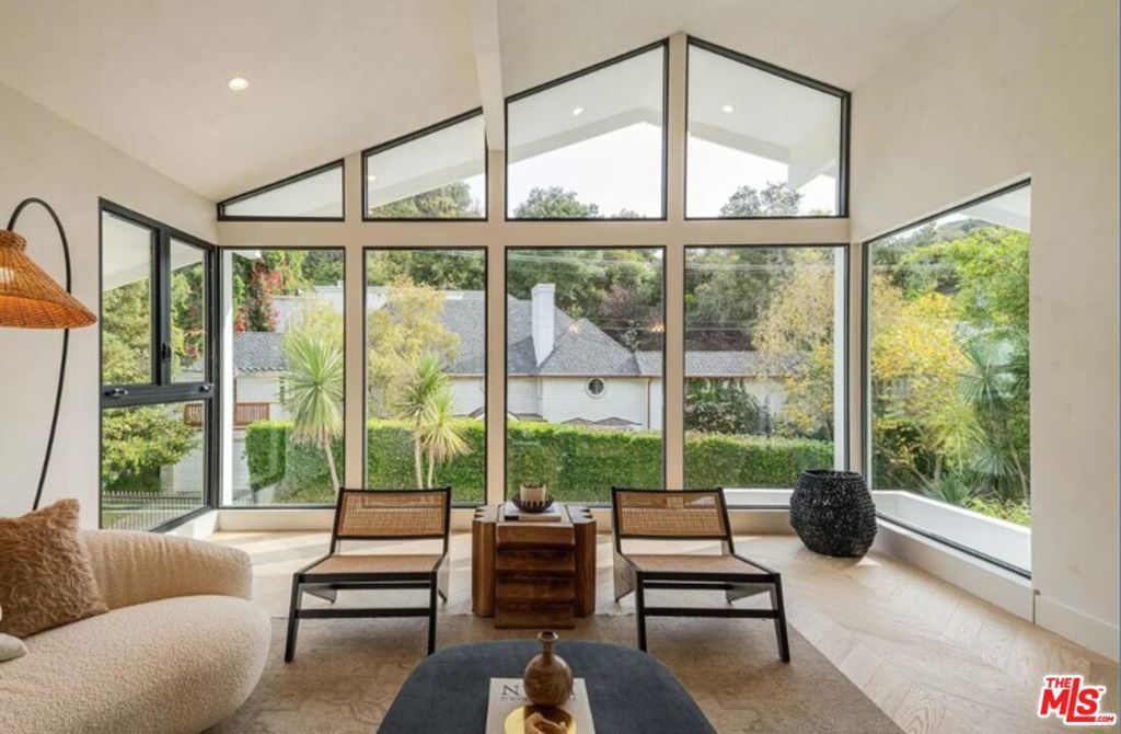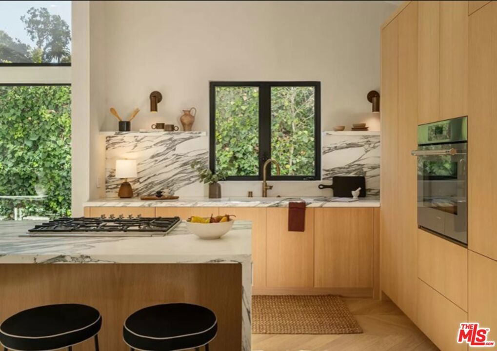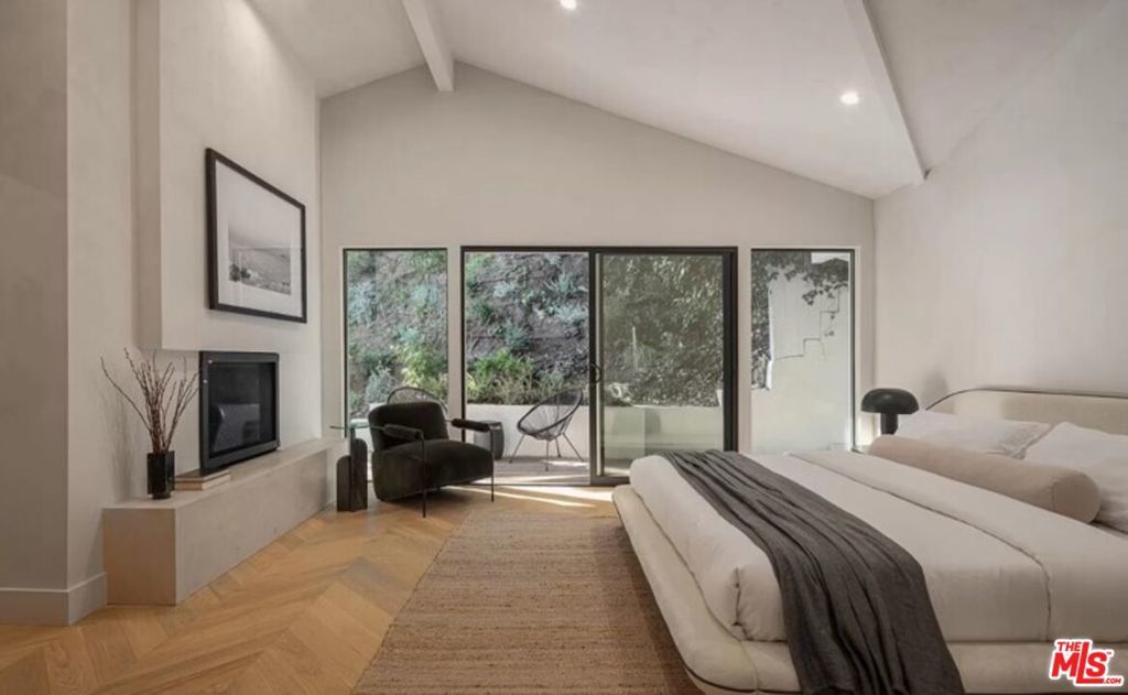 Perched high above the street, this radiant mid-century has been meticulously reimagined by a renowned designer, offering an extraordinary blend of architectural heritage and contemporary sophistication. Enveloped in privacy, this home is a true retreat, where natural light pours through expansive glass walls and double-hung windows, illuminating the refined textures and warm tones throughout. Every detail has been thoughtfully curated, from the lime-washed Portola Paint walls that exude a calming, organic elegance, to the seamless integration of luxury finishes. The heart of the home, an exquisite open-concept chef's kitchen boasts rich solid oak cabinetry, state-of-the-art Thermador appliances, and a dramatic Arabescato Corchia waterfall island that invites culinary inspiration and conversation. The layout includes three spacious bedrooms and three impeccably designed bathrooms. The primary suite is a masterclass in design, with soaring 11-foot ceilings, bold architectural lines, and a remote-controlled fireplace that creates an atmosphere of elevated intimacy. The ensuite bath stuns with antique brass fixtures, a striking microcement finish, and custom Dolce Vita quartzite double vanity offering a spa-like experience every day. Step outside to your private oasis with newly renovated pool and sun-soaked wooden deck invite relaxation and entertaining under the California sun. Ideally located in the prestigious Beverly Hills Post Office area, just moments from Trousdale Estates and the iconic Sunset Strip, this turnkey residence seamlessly marries timeless elegance with modern luxury. This is not just a home, it's a lifestyle. Offered fully furnished and turn-key for long term rental with newly updated furnishings throughout, updated photos coming soon.