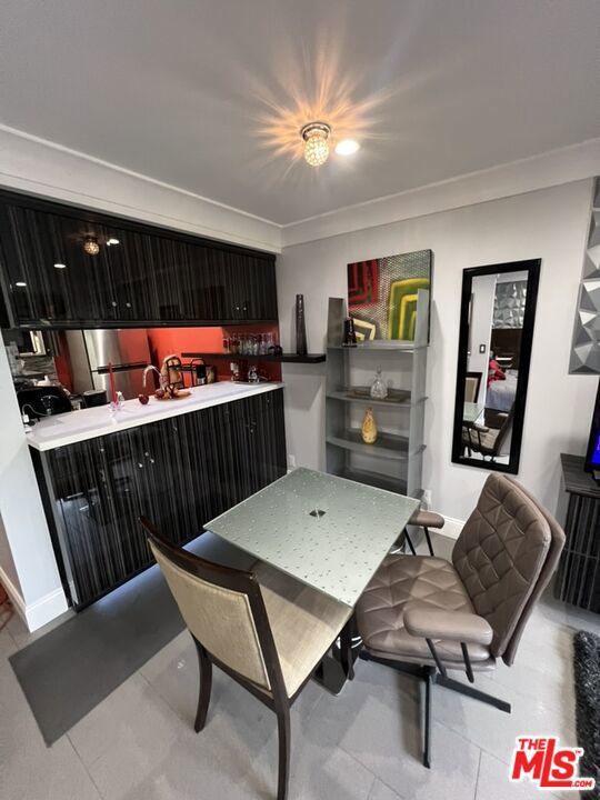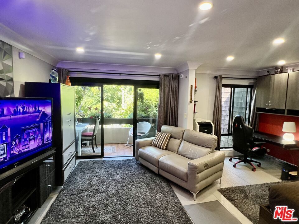 Short-term, fully furnished luxury studio available for a minimum of 31 days stay and up to 6 months. Owner pays all utilities + fast wifi internet. This one-of-a-kind, hip, modern designer condo comes fully equipped and furnished with everything you need for a comfortable stay, just bring your toothbrush. The unit includes a 52" flat-screen TV with Roku for all your streaming needs, high-speed Wi-Fi ideal for remote work, and is fully stocked with plush towels, extra linens and sheets, and upscale kitchen accessories. Cooking appliances include a gas chef's stove, Power XL air fryer, microwave, rice and vegetable steamer, coffee maker, kettle, crockpot, blender, and premium pots, pans, glasses and tableware for dining in style. Located in a gated, quiet, and peaceful resort-style complex in the heart of vibrant West Hollywood, this front-facing unit features desirable western exposure with large windows overlooking one of the most beautiful, tree-lined streets in Weho. The tastefully remodeled interior includes a designer-updated bathroom with walk in shower and kitchen, travertine countertops, custom cabinetry, polished chrome fixtures, and Bosch dishwasher and stainless steel appliances. Central heat and air are managed by a Nest thermostat for personalized comfort. High-end designer finishes include recessed lighting, custom built-ins, and a spacious walk-in closet. The building offers controlled access, an elevator, a reserved parking space, gym, sparkling swimmers pool, sunbathing area, spa, koi pond, waterfall, and serene garden walkways. Water, gas, electricity, internet and trash are all included. Ideally located just blocks from Santa Monica Boulevard, Melrose Avenue, the Sunset Strip, and near cafes, bars, gyms, markets, and shops, this studio offers five-star luxury living in a prime location. No large parties. Your pet, maybe approved for an additional fee upfront and pet deposit. This is a smoke free property and complex. No smoking inside unit, or no smoking on the balcony, or the grounds and no smoking around the pool or in the common areas. A rare opportunity for refined, short-term living in the best of West Hollywood. Better than a five star hotel! Exterior Security Camera Disclosure. For guest safety and property security, the condo is equipped with an exterior video doorbell camera located at the condo front entrance door, facing outward only. There are no interior cameras or recording devices inside the condo.