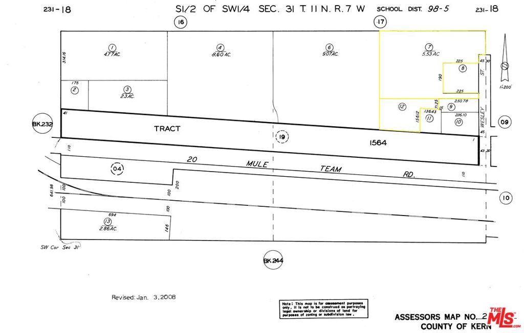 R3 zone Great location. 2 huge lots located South of the 758 Hwy and North of 20 Mule Team Rd. Easy Freeway access. 2 lots must be sold together. Subject lots adjacent to home at 26496 Anderson St Boron, CA 93516.Walking distance to recently renovated 20 Mule Team Museum. Apn: 231-180-07 + 231-180-12