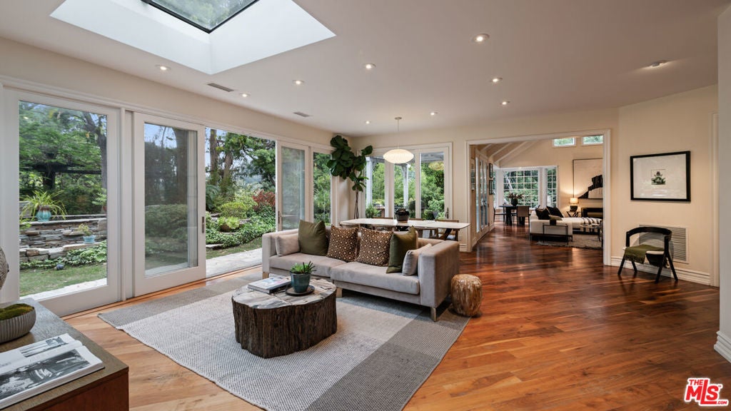 2576 Benedict Canyon Drive: A Peaceful Haven in Beverly Hills. Welcome to a truly special Beverly Hills retreat - once home to a legendary figure of Hollywood's golden era. Tucked behind graceful iron gates and surrounded by lush greenery, this private estate offers a rare sense of calm and comfort in the heart of the city. Inside, the home feels open and airy, with vaulted ceilings, soft natural light, and thoughtful details throughout. Built-ins, warm finishes, and generous living spaces make it easy to settle in and feel at home. The family room is perfect for relaxed evenings, while the elegant dining areas and chef-inspired kitchen - with top-of-the-line appliances - invite easy entertaining and everyday connection. A sweet breakfast nook and cozy corners offer peaceful views of the vibrant, lovingly landscaped gardens. The primary suite is a quiet escape, with spacious proportions and a spa-like bath that encourages rest and renewal. Additional bedrooms and guest spaces are welcoming and private, each with beautifully designed bathrooms. Outside, discover your own private oasis. A sparkling, stone-trimmed pool, shaded lounge areas, and mature trees create the perfect backdrop for restful afternoons or gatherings with loved ones. A charming detached guesthouse offers flexible space for visitors, creativity, or work-from-home ease. Set in one of Beverly Hills' most desirable neighborhoods, this warm and graceful home is a place to unwind, reconnect, and enjoy the simple beauty of California living.