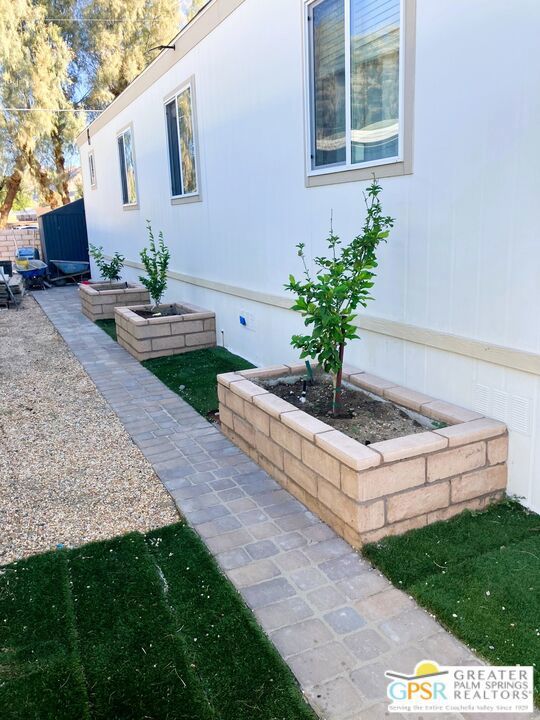 This great home is less than 4 years old and ready for new owners to enjoy. Located in the cozy 55+ community of Corkill Palms it features 1148 square feet of living space with 3 bedrooms and 2 baths. It has a beautiful limestone wall in the dining area which is open to the living room. Appliances include gas range, refrigerator, dishwasher, washer and dryer. There is a covered porch on the front of the home with a carport the length of the home on the east side with plenty of room for a nice patio for outdoor living. To the back of the house there are 2 block raised beds ideal for growing vegetables or your favorite flowers. Currently the seller has pumpkin, basil, cauliflower and tomatoes planted in them. He has also planted a meyer lemon, naval orange and Mexican lime tree as well. There is also a storage shed for extra storage space. Relax in the Therapeutic Natural Mineral Springs at the Clubhouse or have some fun on the putting green or in the billiard room. Space rent is approximately $540 per month. Buyers must be approved by park before opening escrow. Buyer to verify with park manager space rent amount and any utility charge amounts passed on to home owners. Contact us today to set up and appointment to see this wonderful home!
