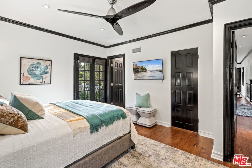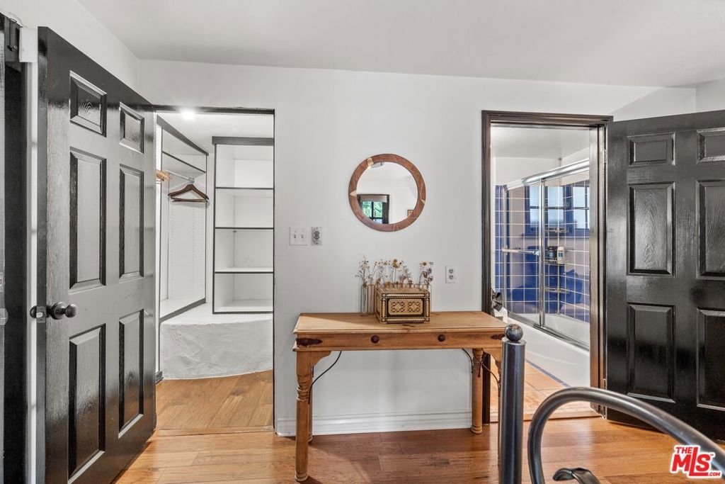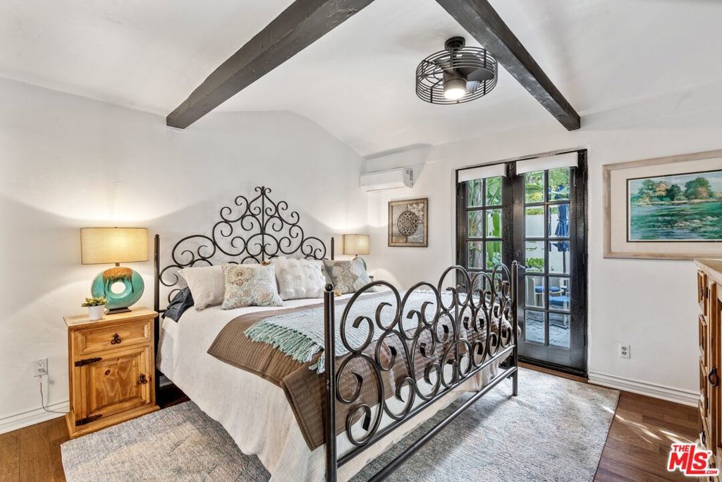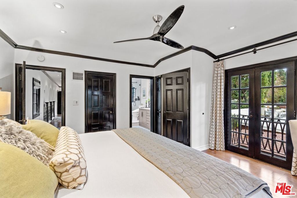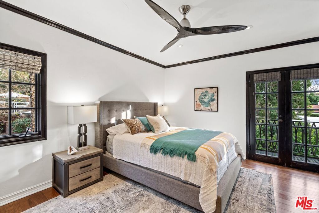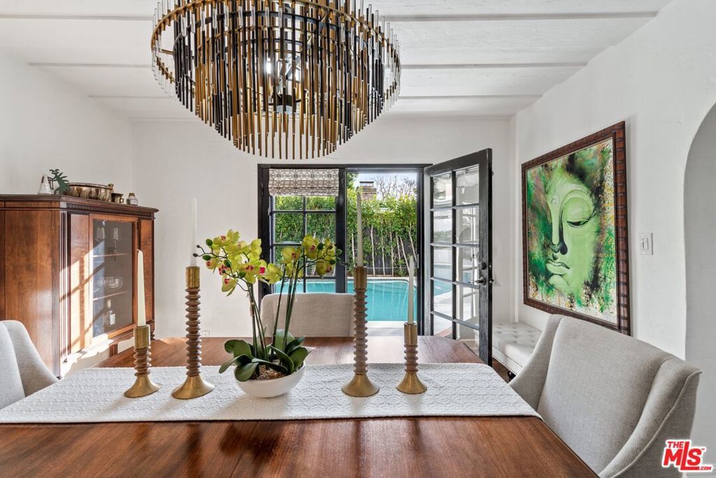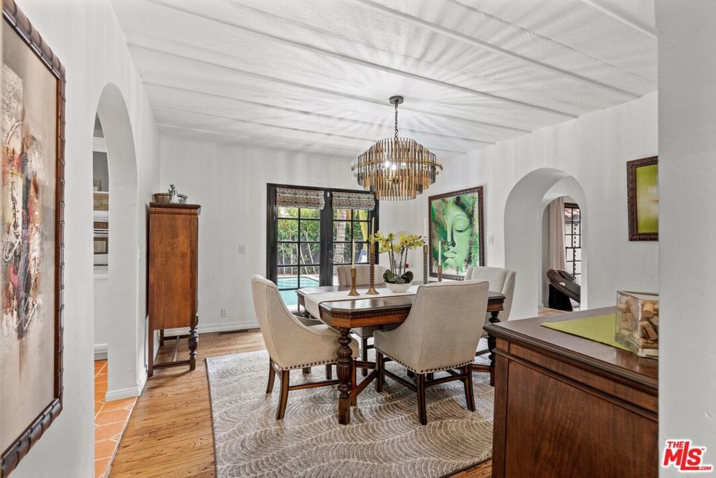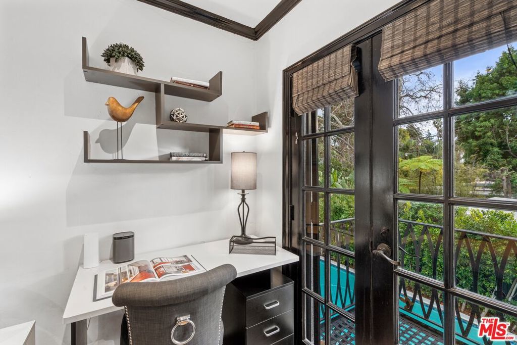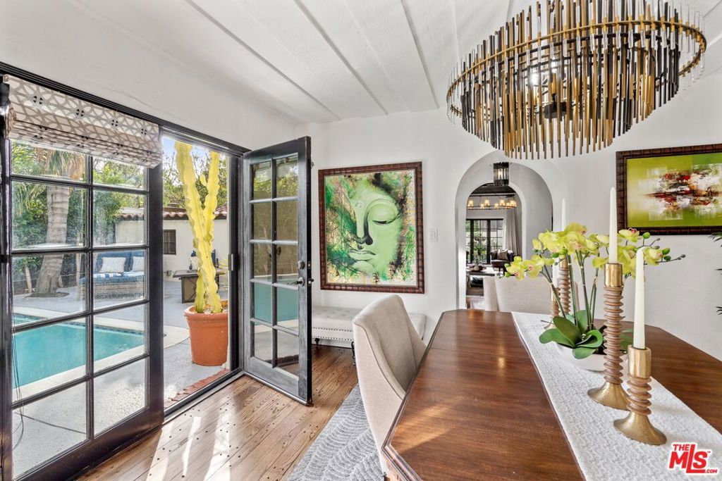 PRICE IMPROVEMENT! Welcome to "Hollywood Oasis" -- a classic Mission Revival gem on a secluded tree-lined street in the heart of the Hollywood Dell. Minutes from hipster Hollywood to the south and Cahuenga Pass to the east, with easy access to popular venues such as Pantages Theater, TAO, Hollywood Bowl ... Step into a private walled courtyard. Turn right to sequestered guest room and en suite with patio access. Straight on through vestibule to oversize rear pool. Or left up to elegant living space, with beamed ceilings and gas fireplace. Attention to detail showcases period lighting, original arched doors and hand-nailed flooring, leading to formal dining room. Gourmet kitchen with festive Spanish tile and new professional range. Dine al fresco on the rear patio with retractable sun awning. Main staircase leads to stunning arched hallway and three additional bedrooms. All with en suite baths; additional guest bath downstairs. Upstairs bedrooms have Juliet balconies. Middle bedroom can be used as office. "California Closets" installed throughout. Gated, secure off-street parking for two tandem cars plus one additional in garage; on-street with permits. Preview by appointment only.