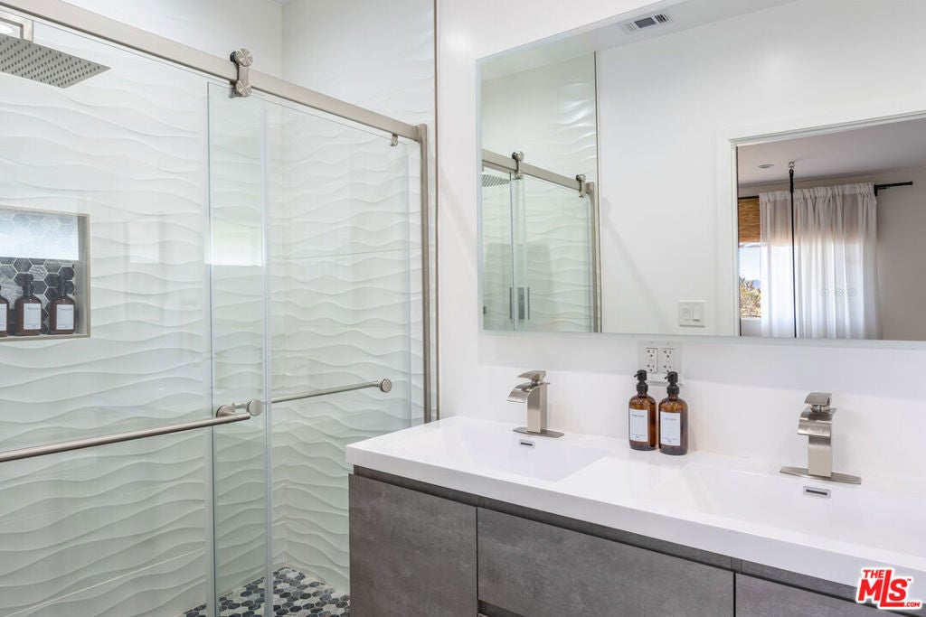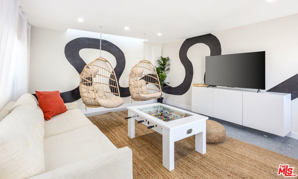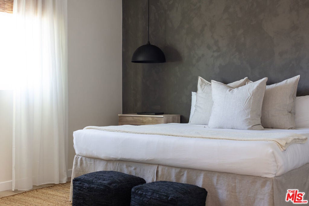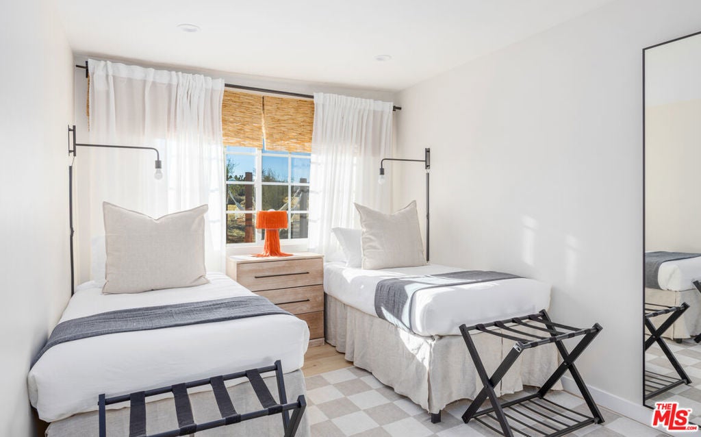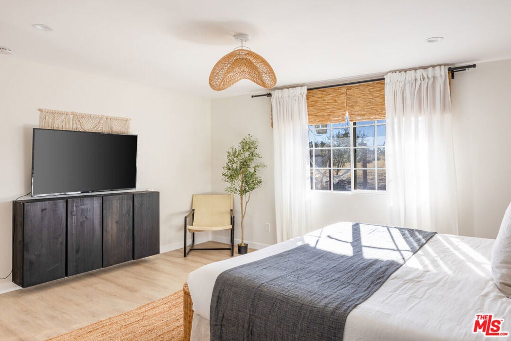 Generating $80,000 in annual gross income, this fully furnished, turnkey 5-bedroom, retreat delivers exceptional short-term rental performance and high-desert luxury. Set on five private acres in Yucca Mesa, the 2,040 sq ft home has been fully remodeled with designer finishes, including luxury vinyl plank flooring, recessed lighting, and a modern kitchen with a new cooktop, Samsung Bespoke refrigerator, shaker cabinetry, and butler's pantry. The open-concept layout is bright and spacious, ideal for entertaining. The primary suite features a spa-inspired en-suite bath, while a fifth bedroom in the pool house offers a private entrance for guests or rental flexibility. Outdoors, enjoy a resort-style setting with an Olympic-sized pool, hot tub, firepit, hammocks, and a custom Linx patio cover, all surrounded by sweeping desert and mountain views. Additional features include RV hookups, 220V carport, a storage unit, and a custom enclosed area suitable for events or parking. With HV/RL zoning, and room to expand, this property offers both immediate cash flow and long-term growth potential just minutes from Joshua Tree National Park and Pioneertown.