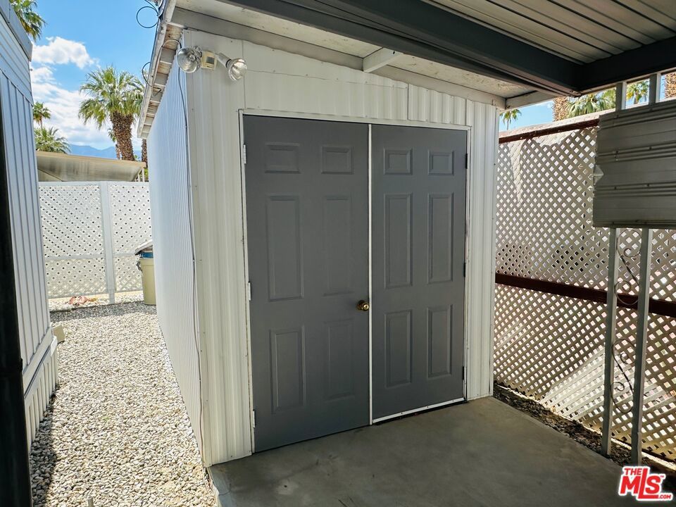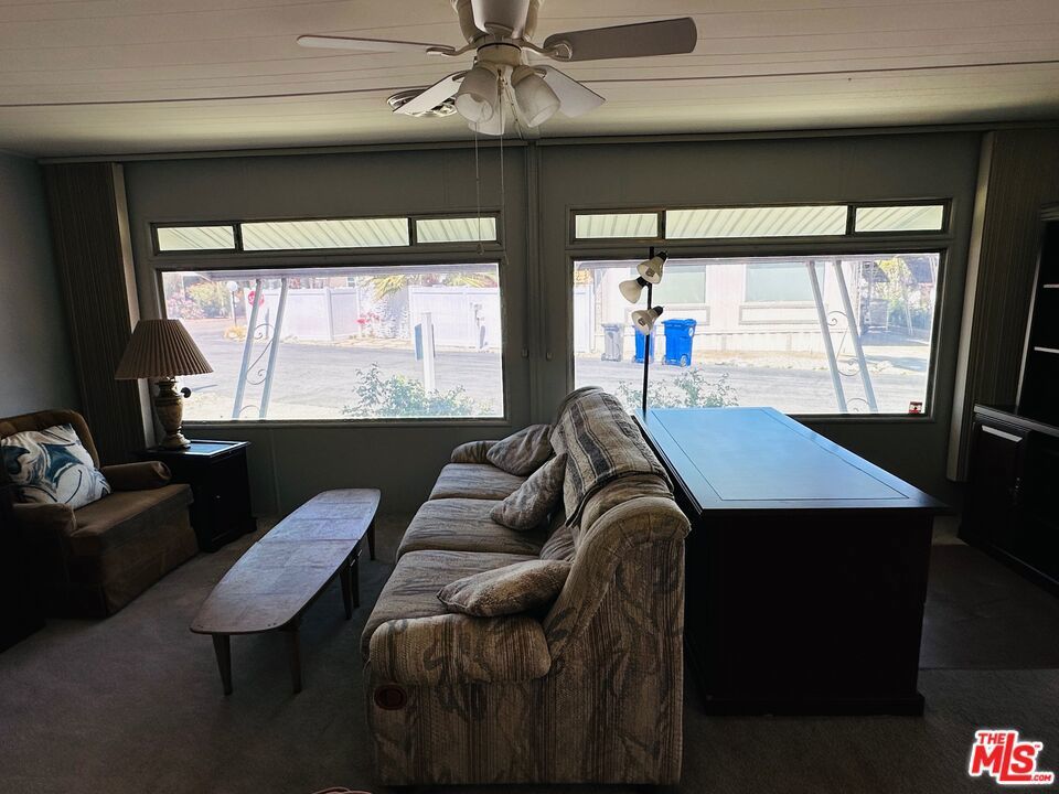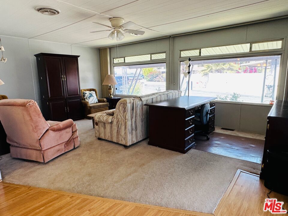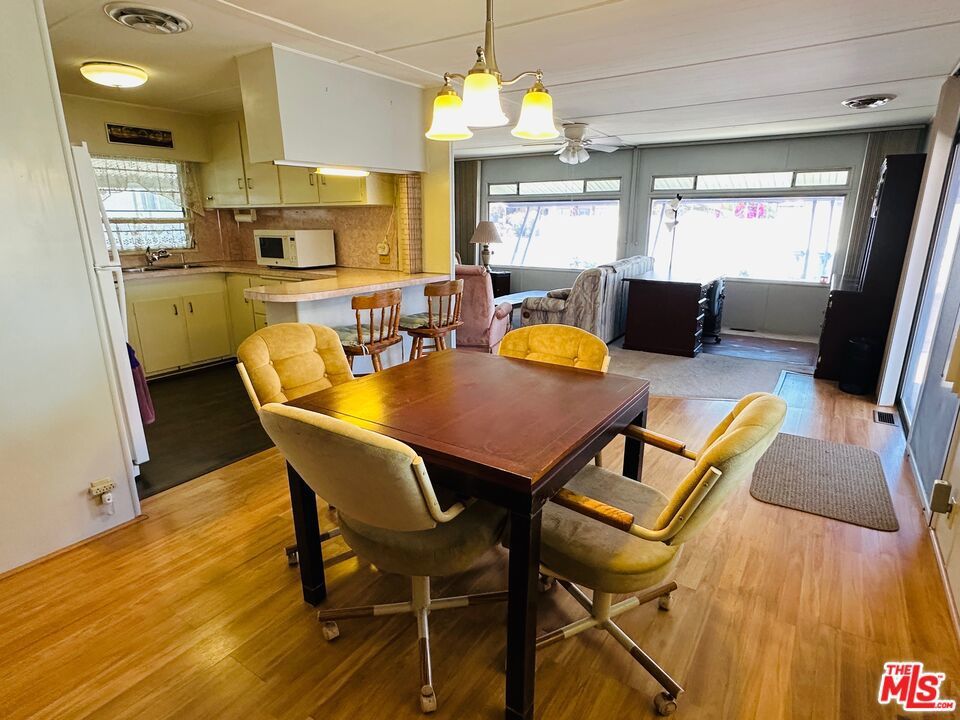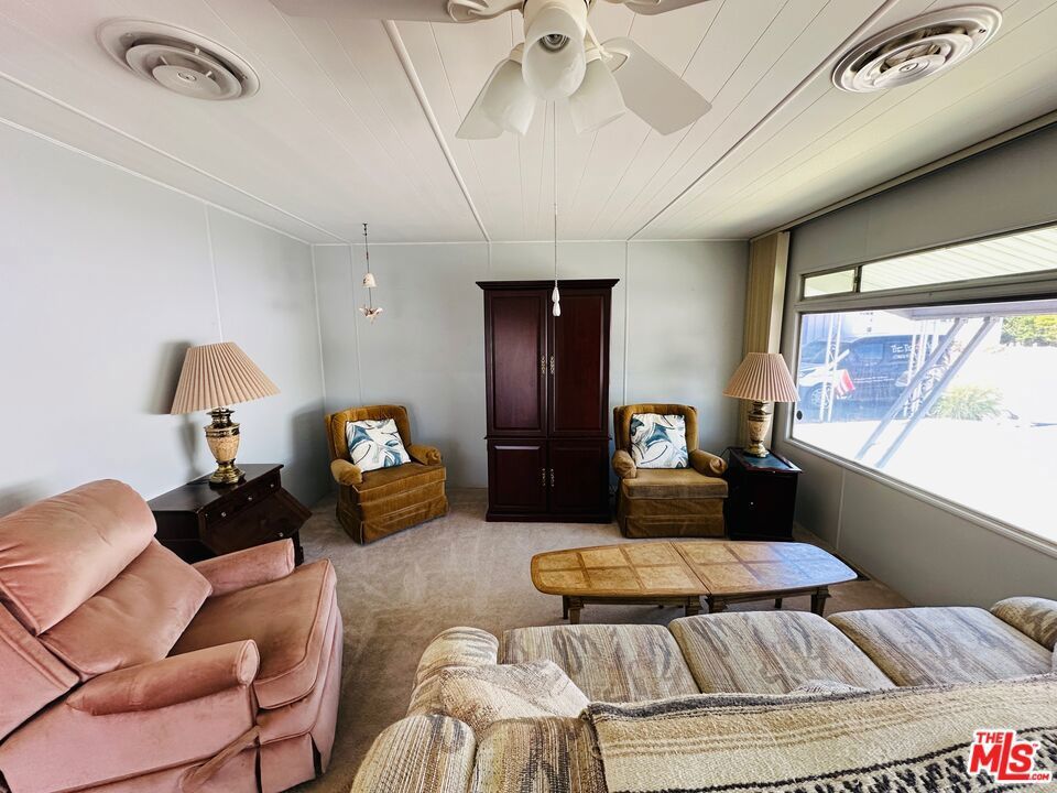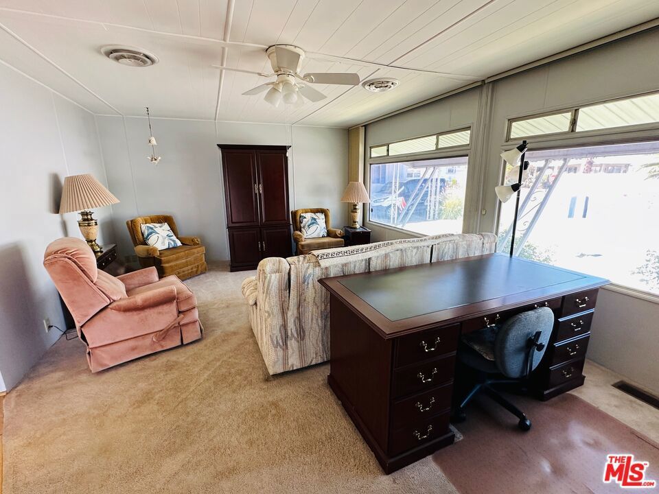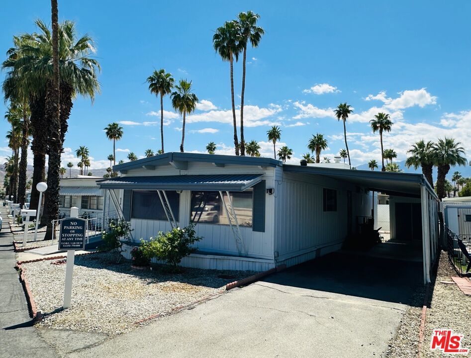 Offered fully furnished & turn-key, this meticulously maintained home is move-in ready! Featuring 1,000 square feet of living space, including 2 bedrooms & 2 bathrooms, this super clean mobile home in pet-friendly Royal Palms is the one you've been waiting for! Upgraded where it counts, yet maintaining just the right amount of original charm, the home features a massive great room with grand picture windows, a dedicated dining area, an adorable kitchen with breakfast bar, indoor laundry, partially upgraded primary bath, a large walk-in closet, clever built-ins, upgraded flooring, central HVAC, a large elevated deck, carport, a storage / garden shed, a special-built work shop (with full power, refrigerator, and room for a golf cart), plenty of yard space, and more... The community has many outstanding amenities, including two shuffle board courts, four pickle ball courts, a clubhouse, community pool & spa, fitness center, putting green, 2 dog parks, and more! This one has it all! With a low monthly lot rent of just $895 that includes sewer and trash, this one won't last! Schedule your tour today! Royal Palms is a 55+ community.