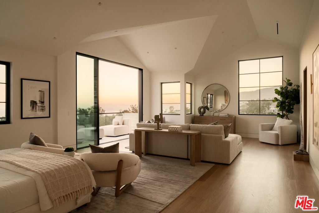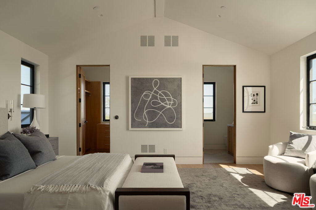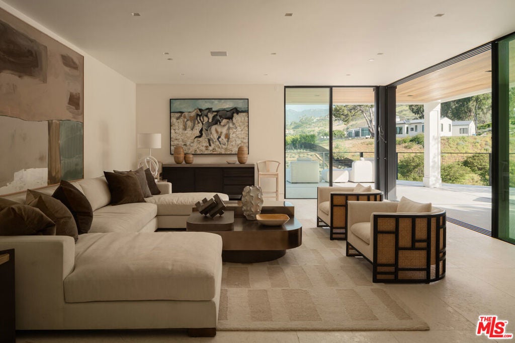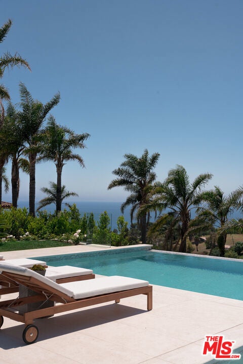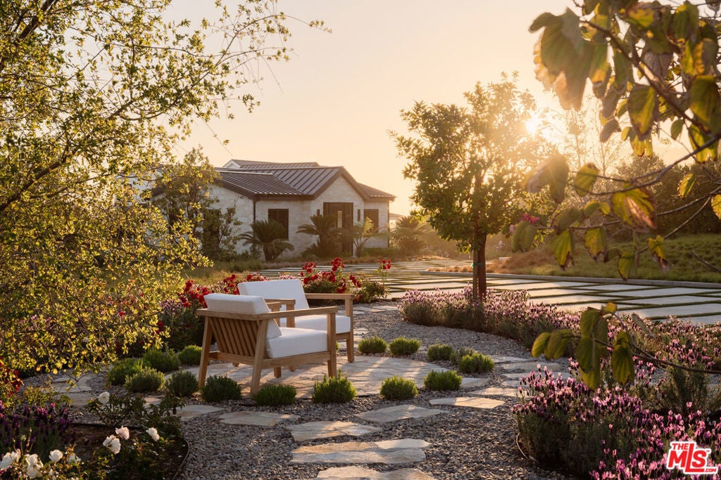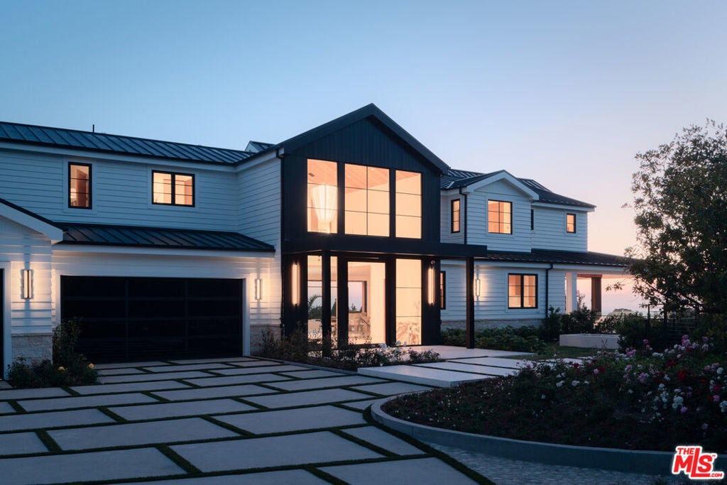 Welcome to this ultra-private, 2025-built Modern Farmhouse, gated and positioned far from the street beyond a long meandering driveway in one of the best sections of Malibu. Complete with a full freestanding guest house/ADU and boundless park-like grounds meticulously designed by renowned landscape architects, the home offers sweeping views of the ocean, hills, and Trancas Canyon, all set above Zuma Beach and Malibu High School. Discover high-quality finishes throughout this open floor plan, optimized for an effortless indoor-outdoor lifestyle. Soft textures of Italian limestone and smooth wood panels complement rich dark steel grays and traditional coastal siding. A serene double-height foyer is open and airy, with huge panes of glass welcoming warm natural light within as wide-plank oak floors flow into the public entertaining spaces. The gourmand's kitchen, central to the open-concept layout, is ideal for catering and serving party guests, fitted with chef-grade appliances including a Wolf range and Miele espresso station, large center island with prep sink, Cararra marble counters and backsplash, and tasteful reeded accents. Nearby, the living room is highlighted by a Brutalist travertine fireplace flanked by custom built-ins that are as beautiful as they are functional. Corner-free pocket Styline doors retreat for optimal transition to the grassy backyard, including an infinity pool, spa, cannonball fire table, outdoor barbecue, dining, and mesmerizing vistas of the Santa Monica Mountains and vibrant blue Pacific. Upstairs, the lavish primary suite includes an owner's living room, dual walk-in changing rooms, and an ocean-facing wraparound balcony connecting the bedroom to the spa-inspired bathroom, complete with soaking tub, makeup desk, and double-size rainwater shower encased in bookmatched stone. Downstairs is a quiet lounge, perfect for use as a media room, gaming room, or billiards room which opens to the outside. The guest house has a full kitchen, dining and living, and one bedroom plus bathroom. There is also an outdoor-facing bathroom with shower and a finished garage that includes a mud room area. Thoughtfully curated drought-tolerant landscaping is peppered throughout the 1.48-acre usable flat grounds, its blooms attracting colorful butterflies and other natural pollinators. Nearby homesteads along the hills offer a delightful showing of various happy farm animals such as pigs, goats, horses, and mules. This is scenic coastal living at its very finest, just moments to popular surf hot spots such as Leo Carrillo and County Line as well as Point Dume, Pepperdine, and the Malibu Colony and Country Mart.