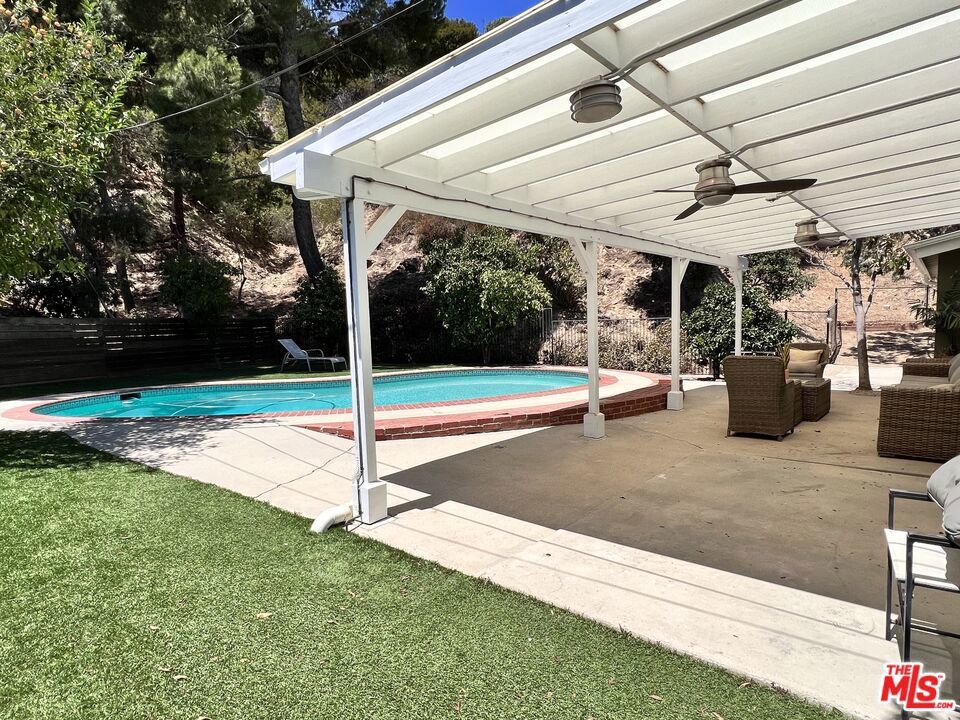 This beautifully updated single-level home is available for lease in the highly acclaimed Lanai School District. Featuring a spacious open floor plan that seamlessly connects the expansive living room, dining area, and contemporary kitchen, the home is perfect for entertaining. The generous primary suite opens directly to the backyard, while three additional bedrooms provide flexibility for guest space, a home office, or more. Outside, enjoy a drought-tolerant backyard with a sparkling pool, covered patio, and plenty of space for outdoor living. Situated atop a hill, the property offers exceptional privacy and convenient access to both the city and the valley.