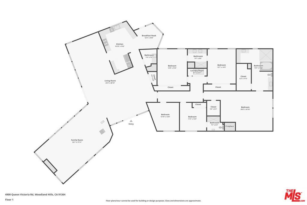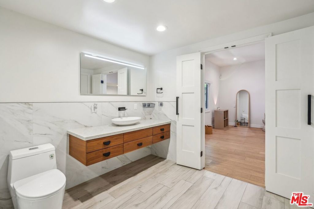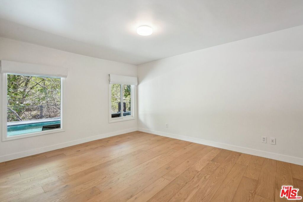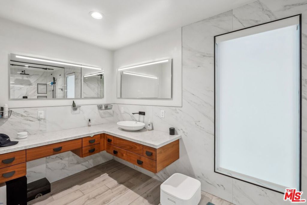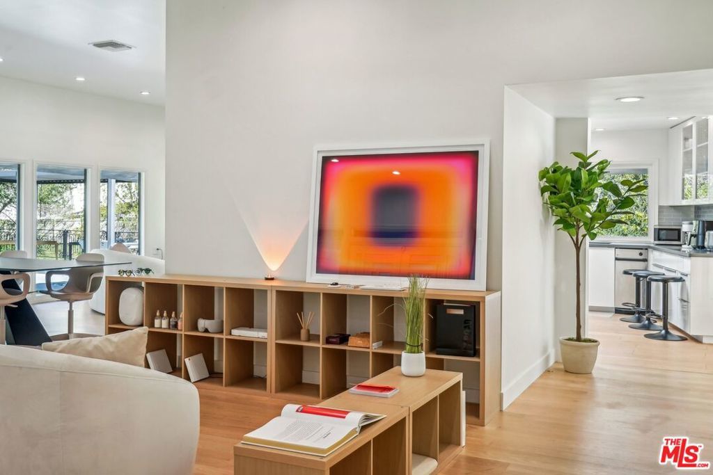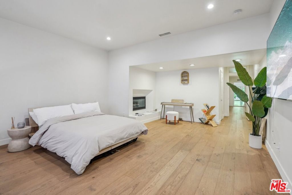 This mid-century modern gem offers the perfect blend of style, comfort, and privacy. A striking circular driveway welcomes you to this beautifully updated single-story home. Step inside to an open, light-filled layout where floor-to-ceiling windows showcase stunning views of the private backyard. Elegant birch wood and white oak flooring flow throughout, enhancing the home's warm and modern aesthetic. A built-in bar area off the living room makes entertaining effortless, while the seamless design allows for easy movement between the kitchen, dining, and lounge spaces. The primary suite is a private retreat, featuring a cozy sitting area, fireplace, dual walk-in closets, and a spa-like en-suite bath. Outside, a true sanctuary awaits. The expansive patio and lush greenery surround a heated pool with a motorized cover, offering year-round relaxation and entertainment. This exceptional home is south of the Boulevard, in the Forest Hills Community, and just minutes from luxury shopping and fine dining at The Commons at Calabasas and Westfield Topanga's Village, and offers the best of Woodland Hills living. Welcome home!.