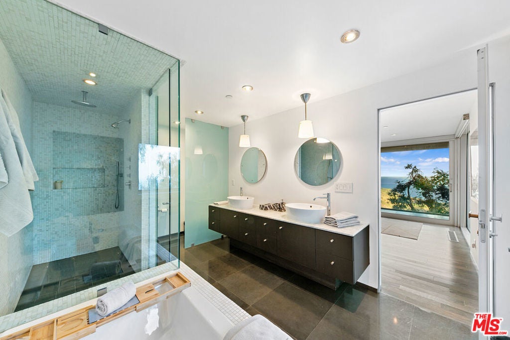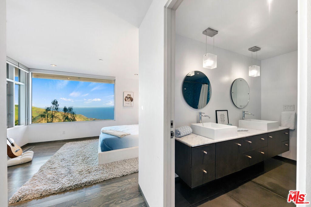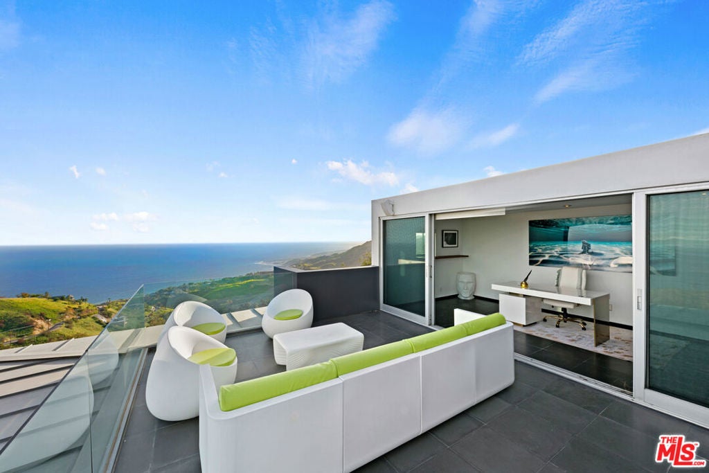 Stunning modern masterpiece designed by award-winning architect Steve Kent, AIA. A true architectural gem, crafted with impeccable quality and extraordinary attention to detail. Walls of custom glass seamlessly open to expansive wraparound decks, revealing jaw-dropping, 180-degree panoramic whitewater views from Santa Monica and Catalina Island to the Malibu Pier to Point Dume and beyond. The main house features 4 bedrooms, 4 bathrooms, a private office, and a state-of-the-art media room. A separate 1-bedroom, 1-bathroom guest house with its own private entrance offers ultimate flexibility perfect for guests, a home office, or a recording studio.The sleek Boffi kitchen is outfitted with top-of-the-line Miele appliances including a cooktop, ovens, and built-in espresso machine, complemented by twin Sub-Zero refrigerator/freezers and a built-in Sub-Zero wine cooler. Modern conveniences include fiber-optic internet, a central vacuum system, and a fully integrated sound system throughout the home and outdoor spaces. The setting is exceptionally private, surrounded by natural beauty, yet just three minutes from PCH. Included are two additional parcels: one adjacent lot for additional privacy, and a third lot that grants coveted membership to the exclusive La Costa Beach and Tennis Club. The home also includes membership to the private, guard-gated section of Rambla Pacifico. An extraordinary opportunity to own a one-of-a-kind coastal retreat blending modern luxury, privacy, and panoramic views. Includes the following APN #'s: 4453-011-005 | 44453-010-005 | 4451-022-032. Can be sold furnished and turnkey.