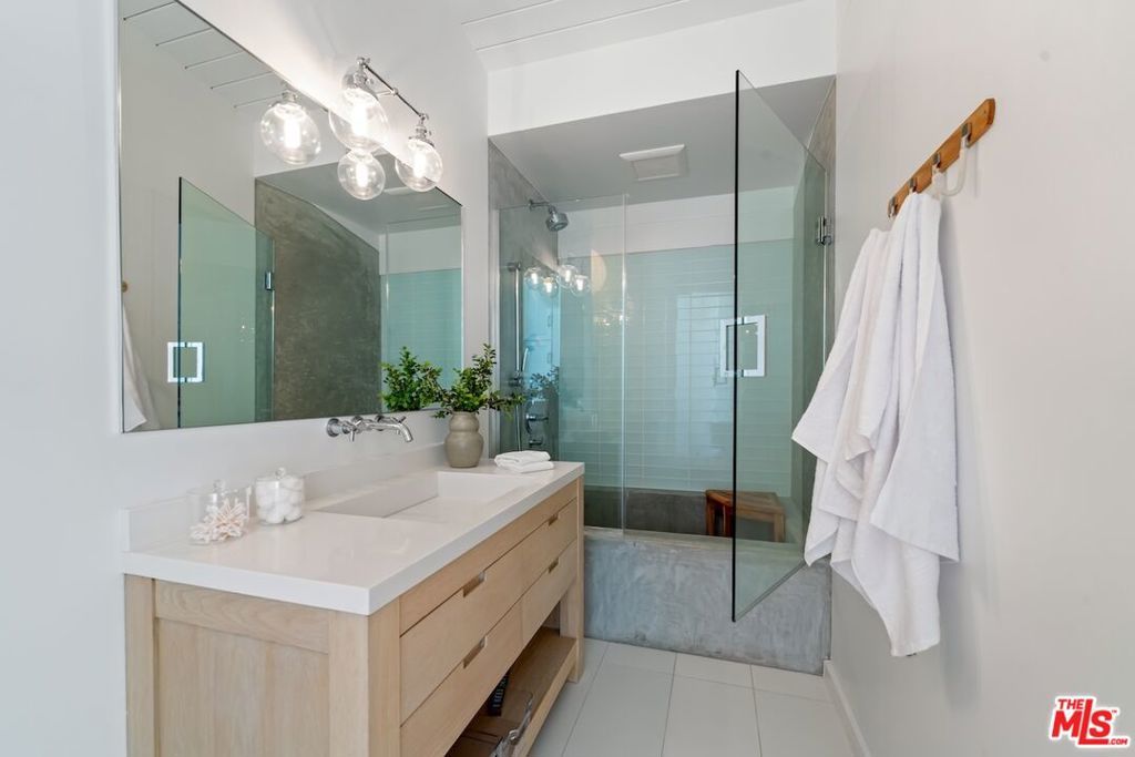Nestled in the heart of Malibu, this architectural post-and-beam residence offers sweeping, unobstructed views of the ocean, city lights, mountains, and nearby islands. Positioned on a quiet cul-de-sac in the highly sought-after Malibu Knolls, this gated retreat exudes style, serenity, and natural elegance. Thoughtfully designed with floor-to-ceiling glass and rich wood beams throughout, the home seamlessly integrates indoor and outdoor living. The main level welcomes you with expansive living spaces, including a sunlit family room anchored by a wood-burning fireplace, a gourmet chef's kitchen with walk-in pantry, and an inviting dining areaall opening to wrap-around decks that frame the breathtaking views.This level also features three en-suite bedrooms, including a spacious junior primary suite, offering comfort and flexibility for guests or family members. The lower level is dedicated to the exceptional primary suite, a private sanctuary featuring a luxurious spa-like bath with oversized steam shower, soaking tub, generous walk-in closet, and direct access to private wrap-around terraces. Adding to the property's appeal is a detached guesthouse with its own entrance, private deck, and stunning ocean vistasperfect for visitors or creative workspaces. The terraced garden below offers room for play, reflection, or personal cultivation, while mature trees surround the property, providing rare privacy without sacrificing natural light or panoramic scenery.A true Malibu escape that effortlessly blends refined architecture with California's coastal beauty.