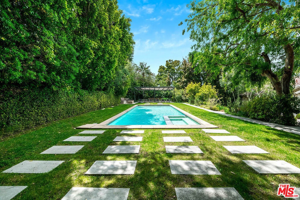 Perched on a private knoll in the heart of coveted Holmby Hills, this extraordinary estate represents the pinnacle of refined living. Masterfully reimagined and completely rebuilt with the utmost attention to quality, craftsmanship, and architectural detail, this approx. 7,025 sq.ft. Traditional estate is a harmonious blend of timeless charm and modern elegance. Beyond dual gates and a circular driveway, a gracious motor court welcomes guests into a world of serenity and sophistication. Enveloped in lush, mature landscaping, the property offers total seclusion on over 31,000 sq.ft. of meticulously manicured grounds. A grand formal foyer sets the tone, opening to light-filled living spaces adorned with gleaming hardwood floors, intricate custom millwork, and expansive wall space ideally suited for fine art. The formal living room, anchored by a stately fireplace, exudes quiet elegance, while the expansive family room opens to a chef's kitchen of exceptional scale, complete with professional-grade appliances, a large center island, breakfast bar, and sunlit breakfast room. The luxurious primary suite is a sanctuary unto itself, featuring soaring ceilings, a tranquil sitting area, and serene garden views. Additional amenities include a grand-scale formal dining room with a walk-in wine room, a large state-of-the-art theater, an office, and a lower level fully equipped gym and game room, designed for sophisticated leisure. Outdoors, the estate reveals its true grandeur. The expansive, flat backyard is an entertainer's dream, offering a harmonious blend of green lawn and curated hardscape, a 45-foot pool with spa, and ample space to host gatherings of any scale in total privacy. With a 3-car attached garage, generous motor court, and an incomparable setting in one of Los Angeles' most prestigious enclaves, this residence stands as a rare offering, where architectural distinction meets elevated living.