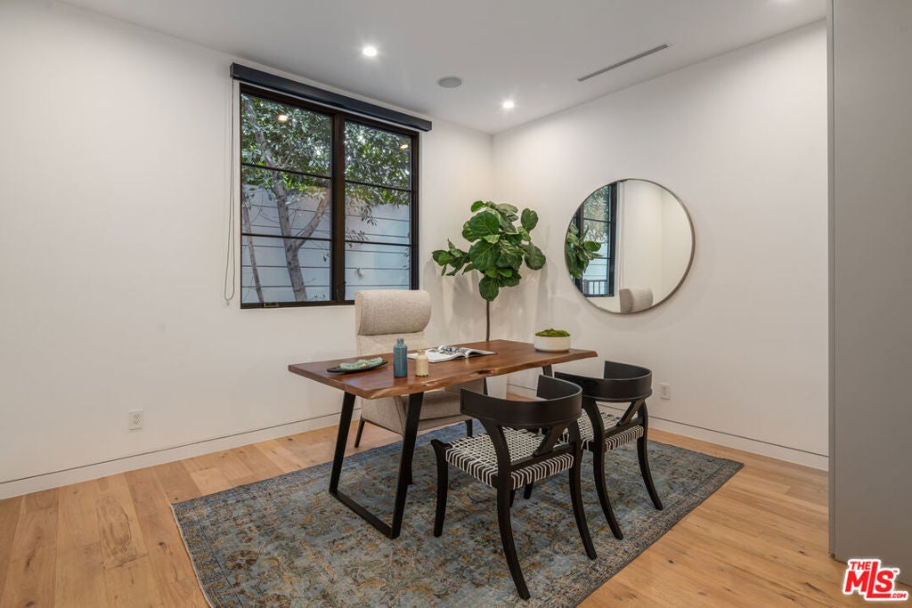 Welcome to 636 Kilkea, a serene retreat nestled on a tranquil street in Beverly Grove. This unique home, steeped in history, boasts features and Scale that cannot be replicated, having been constructed under old zoning codes. Step inside to discover the epitome of luxury living, with motorized shades in the primary bedroom, complemented by 12-foot ceilings and a stunning 25-foot entry ceiling that exudes grandeur. Your security and convenience are paramount, with a fully equipped alarm system and high-speed WiFi seamlessly integrated throughout the house. French doors invite natural light to dance across European appliances in the gourmet kitchen, while a Crestron Smart Home System puts control at your fingertips. Pamper yourself in the primary bedroom en-suite, featuring a Toto smart toilet and window privacy film for added comfort and tranquility. Entertain with ease in the outdoor oasis, complete with a BBQ area and Ring Security Flood cameras ensuring peace of mind. With a 2-car attached garage and French white oak wood flooring adding warmth and elegance, this home offers the perfect blend of sophistication and modern convenience. Welcome to your new sanctuary in the heart of Beverly Grove.