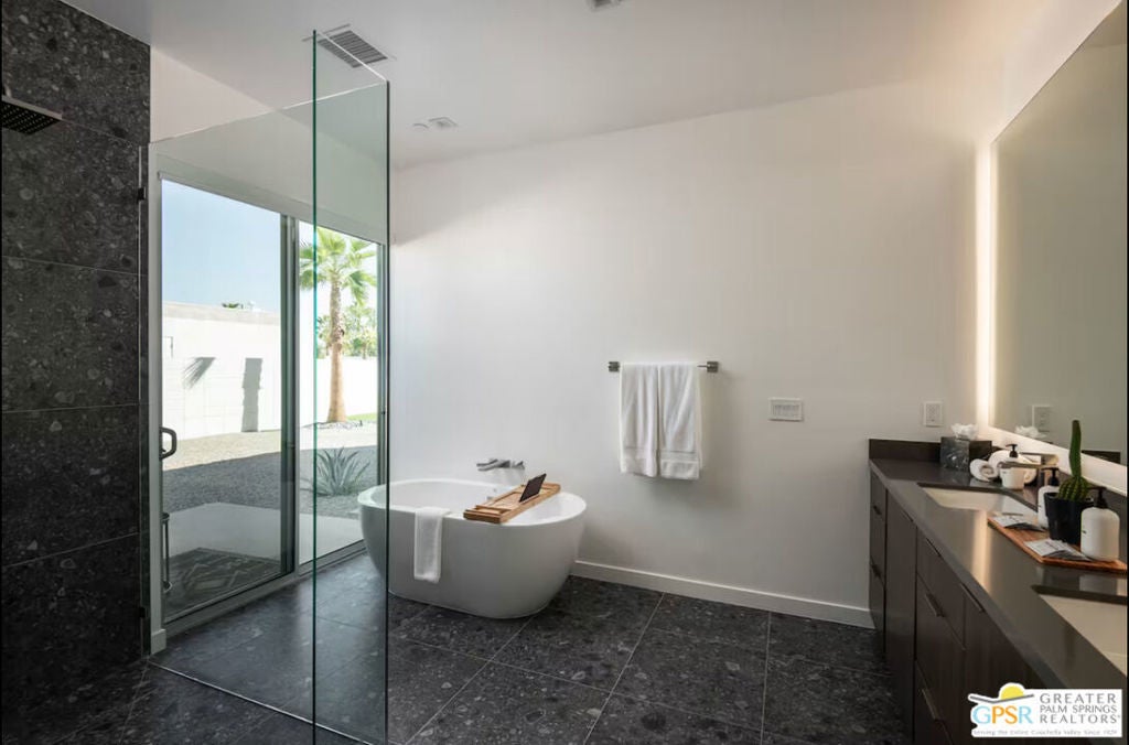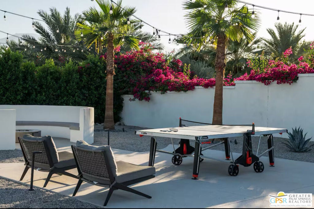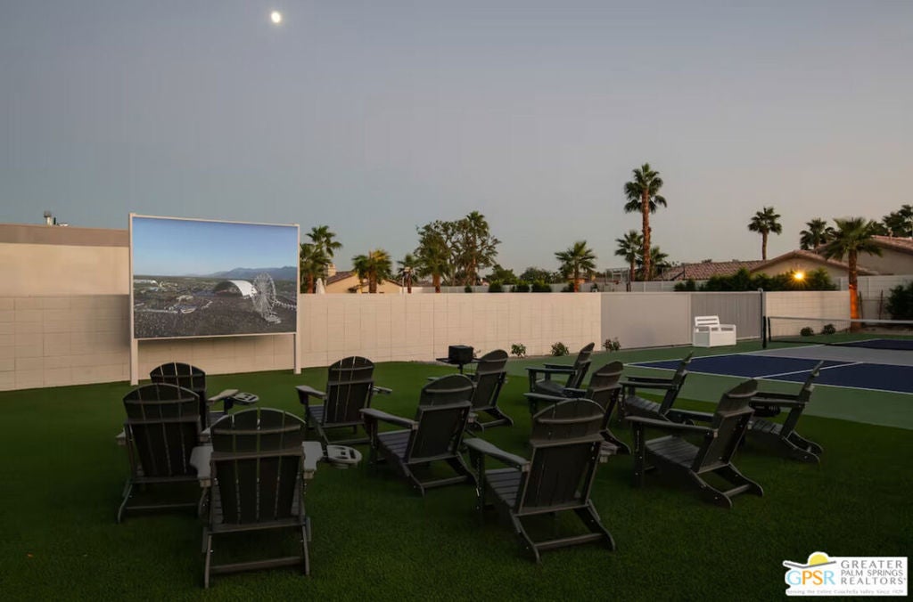 Enjoy luxury living at this mid-century modern estate in Indio. Boasting 7 spacious bedrooms, 7 bathrooms, and 10 comfortable beds, this retreat sleeps up to 18 guests with ease. The home blends indoor-outdoor living with a modern mid-century flare. Enjoy resort-style amenities including a large pool with cabo shelves, outdoor bar and movie theater, pickleball and basketball court, putting green, a ping pong table, and fire pit for entertainment all set against a scenic desert backdrop. Ideal for Special Events Elemento 49 properties are perfect for hosting a range of intimate and sophisticated events. ENTERTAINMENT FACILITIES: Sonos speakers, premium cable, smart TVs in every bedroom. GOURMET KITCHENS: Fully equipped chef's kitchens with modern appliances, including drip coffee and Nespresso machines, make meal preparation a delight. Indoor and outdoor dining tables provide ample space for hosting gourmet dinners. LUXURIOUS EXTRAS: Additional amenities include outdoor showers, washers and dryers, built-in gas BBQs, and desks with monitors and HDMI connections for those needing to work remotely. Pricing is seasonal, please call for details.