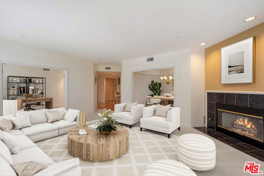 Welcome to a spacious and beautifully designed corner unit in the heart of Toluca Lake. This 2,484 square foot condo offers two bedrooms plus a versatile third room that works perfectly as a den, office, or guest bedroom, along with two and a half bathrooms. The open layout is filled with natural light and features scenic views of treetops and mountains from the living and dining areas. A cozy fireplace anchors the space, making it ideal for relaxing or entertaining guests. The kitchen includes a breakfast bar, a walk-in pantry, with direct access to a large balcony that's perfect for outdoor dining or lounging. The expansive primary suite is a true retreat, complete with its own fireplace, a large walk-in closet, balcony access, and a spacious en suite bathroom with a jetted tub and separate shower. The second bedroom also features an en suite bath for added privacy and convenience. Additional highlights include dual-pane windows, Central AC/Heat, in-unit laundry, plantation shutters, and tasteful upgrades throughout. This well-maintained condo community offers a pool, spa, elevator, secure entry, side-by-side parking, and secure storage space. Located in one of LA's most desirable neighborhoods, this condo is just steps from the best of Toluca Lake. Enjoy top-rated dining at Ca' Del Sole, Verse, The Front Yard, grab a bite at Easy Street Burgers, or golf at Lakeside Country Club. You're just minutes from Universal Studios, the shops and cafes on Ventura Boulevard, and have quick access to the 134, 101, and 170 freeways. Whether you're commuting to the studios or exploring local parks and trails, this is where comfort meets convenience in style.