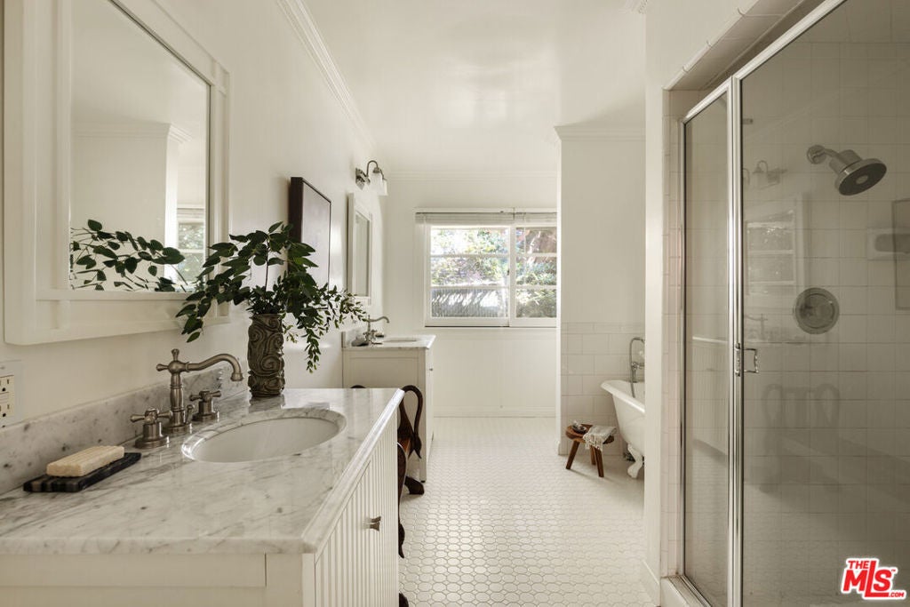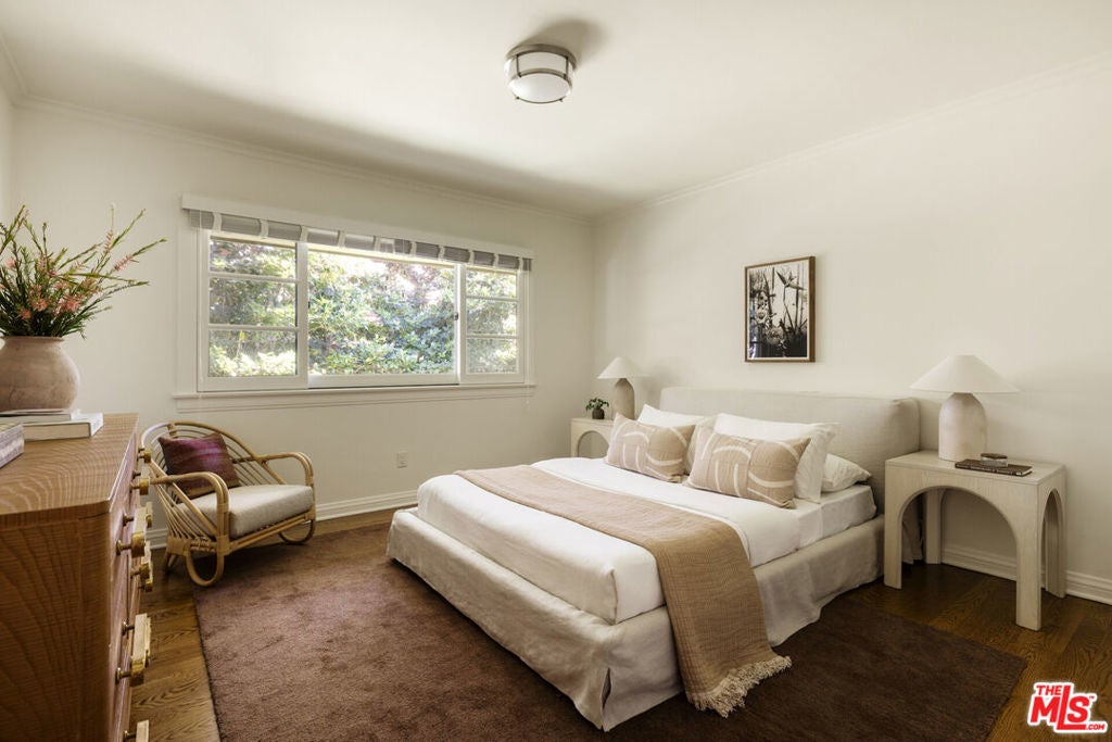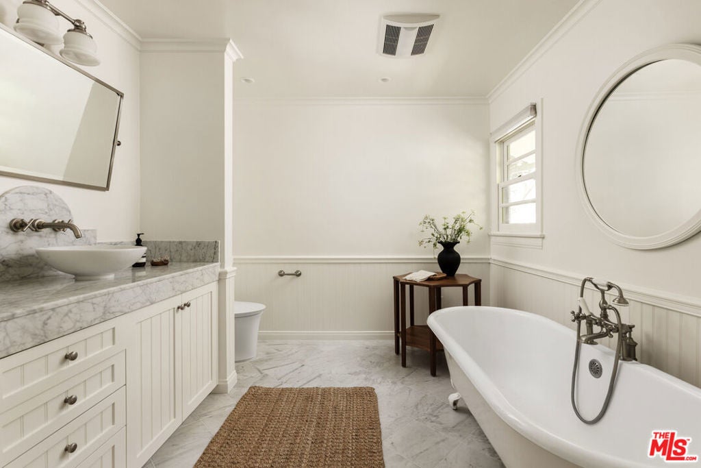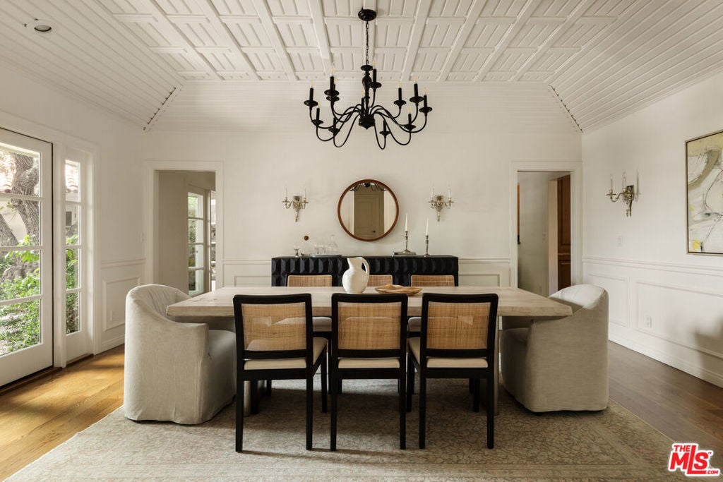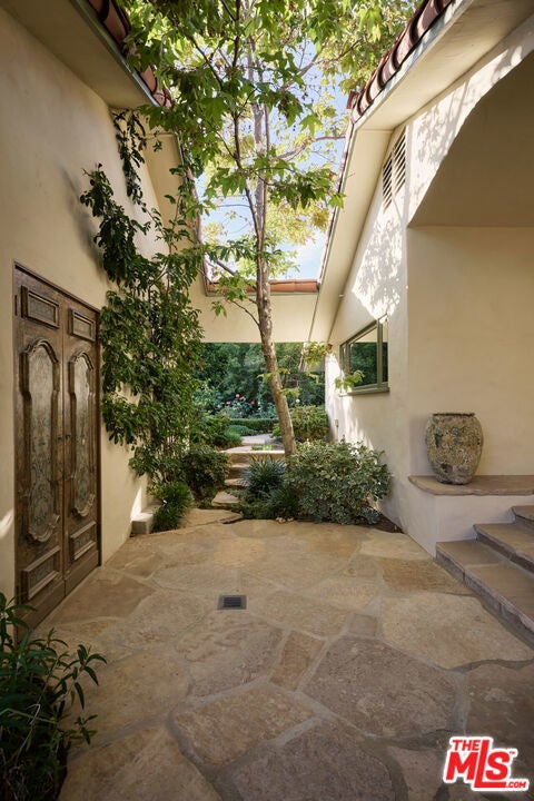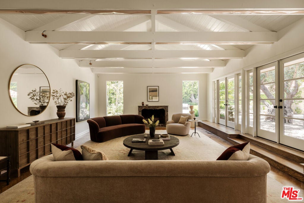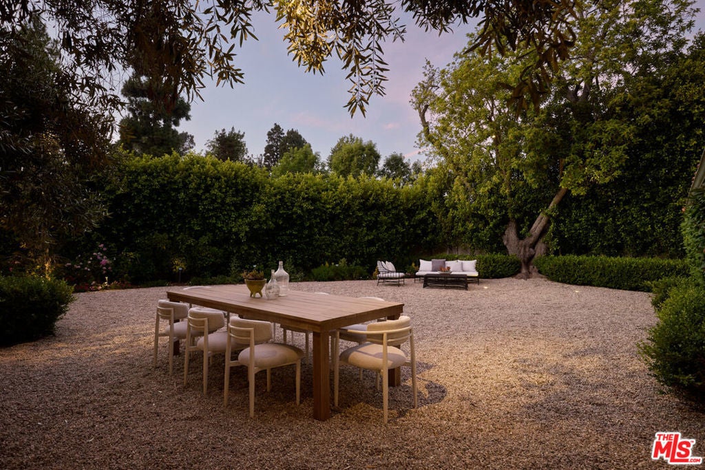 Set on a half-acre lot just moments from the Riviera Country Club, 1296 Capri Drive is a single-story estate that fuses European provenance with a thoughtful, full-scale renovation rooted in craftsmanship, indoor-outdoor flow, and connection to nature. A gated entry opens to a serene front courtyard with an outdoor fireplace, framed by mature plantings. An antique bronze and glass front door opens to expansive interiors where every room connects to the surrounding gardens. Throughout the home, old-world elements include 15th-century Italian doors from Milan, a carved Louis XV marble fireplace, and two antique French stone fountains that define the courtyard and anchor the backyard. The floor plan is organized into two distinct wings. One dedicated to the private living quarters, including the primary suite, which opens to the gardens and features dual bathrooms with a smart toilet, dry sauna, and two walk-in closets. Three additional en-suite bedrooms complete this side of the home. The opposite wing is designed for entertaining, centered around a den with a built-in bar, surround sound, antique terracotta flooring, and a climate-controlled wine wall. The main living room features a carved marble fireplace and vaulted, beamed ceilings that invite natural light throughout the day. A full wall of French doors opens to the gardens, reinforcing the seamless indoor-outdoor connection that defines the property. The kitchen was custom built by Cooper Pacific, centered around Italian feather walnut travertine counters and professional appliances that include a 64-inch Wolf range with French top and grill, two Wolf ovens (one steam), Le Cornue rotisserie, Sub-Zero refrigeration, dual Miele dishwashers, Wolf refrigerator drawers and ice maker, Irinox flash freezer and sous vide, and a built-in Natufia hydroponic grower. A walk-in pantry and separate china closet offer ample utility without compromising design. Outdoors, the landscaping is as functional as it is peaceful. Created by Garett Carlson of Landarc and Stephen Block of Inner Gardens, the grounds include a series of vegetable garden beds with lemon, orange, peach, plum, fig, mulberry, yuzu, Australian finger lime, and avocado trees. The soil and all plantings were organically treated. Additional highlights include a 2,500 bottle refrigerated wine cellar, rose-covered gazebo, built-in outdoor speakers, multiple 100-year-old Olive trees, and an area ideal for a dog run. The home features two new HVAC systems with HEPA filtration, all-new attic ducting and insulation, three water heaters (two of which are tankless), and security cameras.