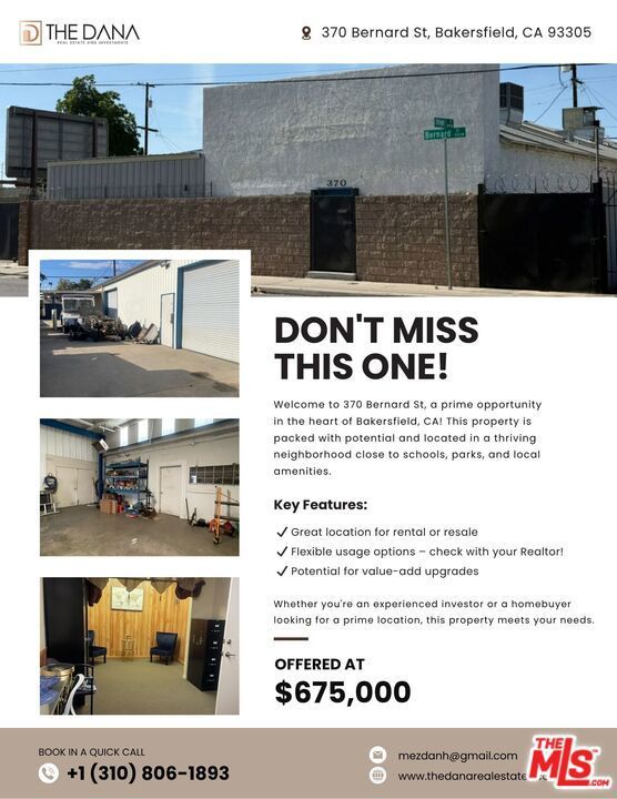 Exceptional Commercial Building in Prime Central Location!Unlock the potential of your business with this impressive commercial property, ideally situated just moments from Downtown Bakersfield and major freeways. This extensively updated 6,360 sqft living area sits on a sprawling 14,000 sqft lot, offering you abundant space and versatility. Whether you're looking for a distribution center, logistics hub, office space, machine shop, tile shop, or warehouse, this property has it all! It can be Multiuses Business center . Key Features:Light Industrial Zoning:Perfect for a variety of business applications; make it your logistic distribution center or industrial office space ready turnkey, bathrooms , kitchen with all amenities for emplyess and visitors .Recent Renovations: Featuring modern updates throughout, ensuring your operations are not only efficient but also impressive.- Generous Storage Space: Extra square footage designed for the storage of goods and materials gives you the flexibility your business needs.Convenient Back Alley Access: Seamlessly receive shipments and maneuver large vehicles with ease.Landing Deck with Pull-Up Access: Ideal for loading and unloading, maximizing your operational efficiency.- Strategic Location: Surrounded by thriving businesses, you're positioned perfectly to attract clients and vendors alike. Ready to Use: This turnkey property means you can move in today and start generating revenue right away!The Property is secured with large metal gate , Security Camera system and Brick walls . This is more than just a building; it's an investment in your business's future. Don't miss out on the opportunity to make this prime location your operational headquarters. Schedule a viewing today and see firsthand why this property stands out as a fantastic opportunity for investors and business owners alike!