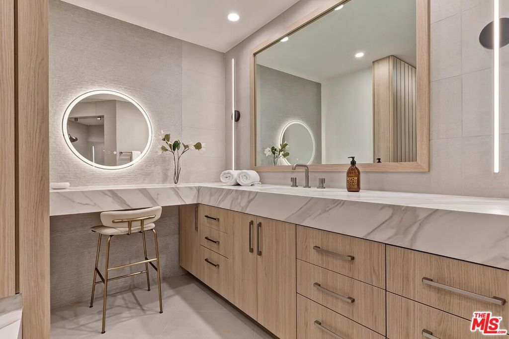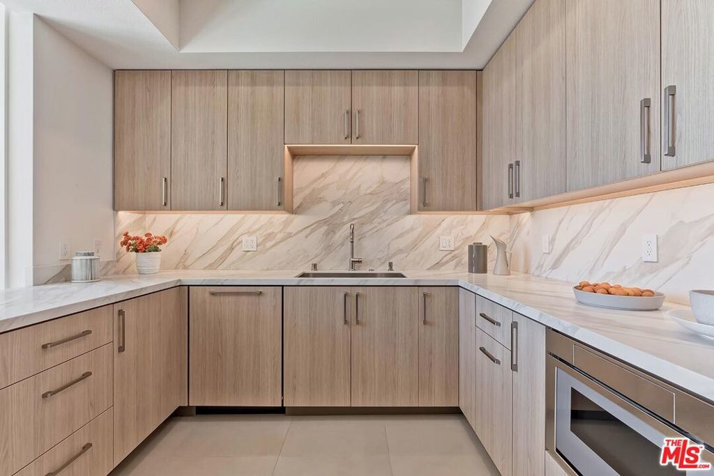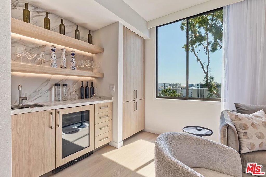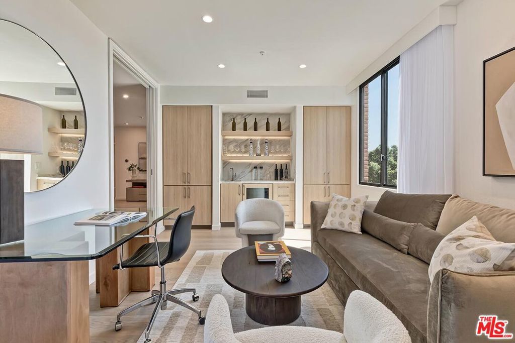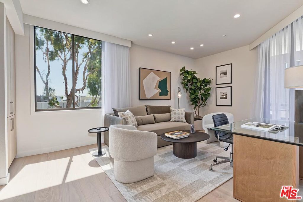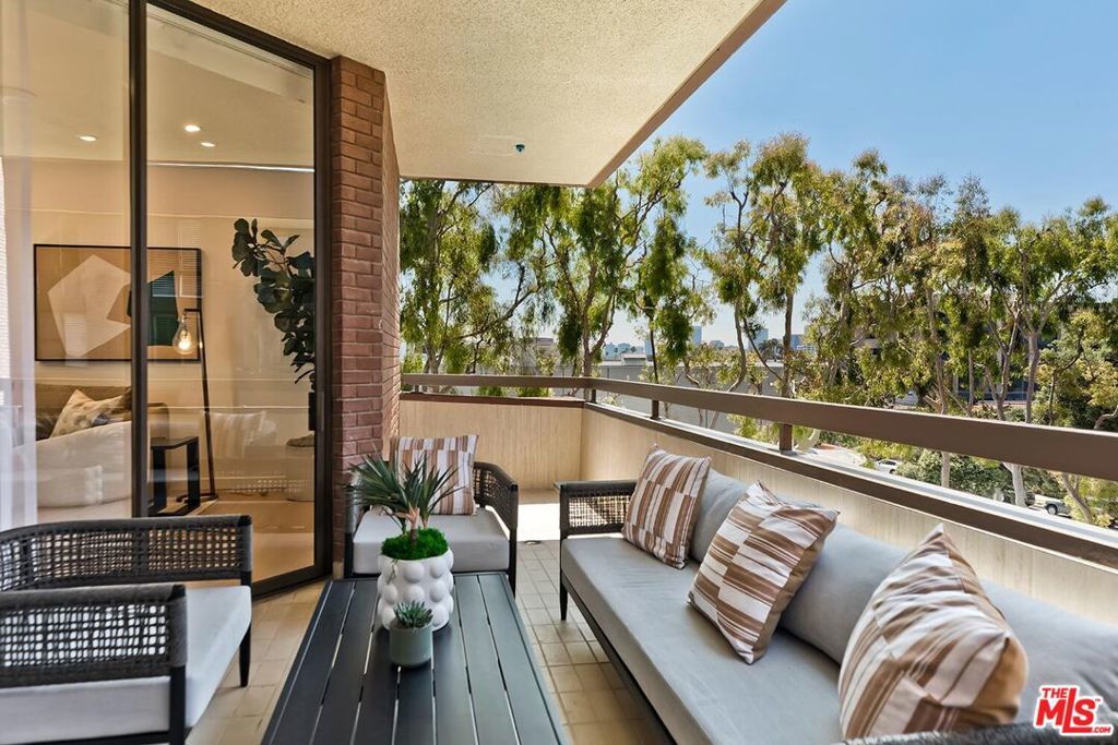 Presenting an exclusive opportunity for discerning buyers: a condominium at the esteemed IV Seasons North Condominiums in Beverly Hills. Reenvisioned by an internationally published and nationally award-winning architect, this residence features a tasteful aesthetic and soft color palette complemented by elegant architectural details. Upon entering through the formal foyer, you'll find a well-appointed living room with a custom fireplace and cabinetry, an adjacent formal dining room, and a gourmet kitchen equipped with top-of-the-line appliances, custom cabinetry, and a breakfast area. The expansive living and breakfast room terraces provide serene tree-top, city, and mountain views, enhancing the seamless indoor-outdoor flow of the residence. The primary suite serves as a private retreat, complete with dual custom walk-in closets and a spa-inspired bath with designer finishes, a soaking tub, a glass-enclosed stall shower, a linen closet, and a private water closet. The spacious secondary guest suite includes 2 closets and a modern en-suite bath. A versatile den offers space for a home office, media room, or additional living area. The redesigned in-unit laundry room adds convenience and houses new HVAC equipment. Residents of IV Seasons North Condominiums enjoy luxury amenities, including 24/ 7 doormen, valet parking, a newly updated pool and spa, a gym, and secure storage. The central Beverly Hills location offers proximity to the vibrant dining, and shopping scenes of Beverly Hills & Century City, West Hollywood's nightlife and dining, the upscale Melrose design and couture shopping district, and the arts and culture of Los Angeles.