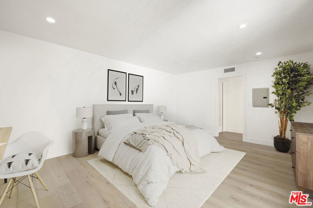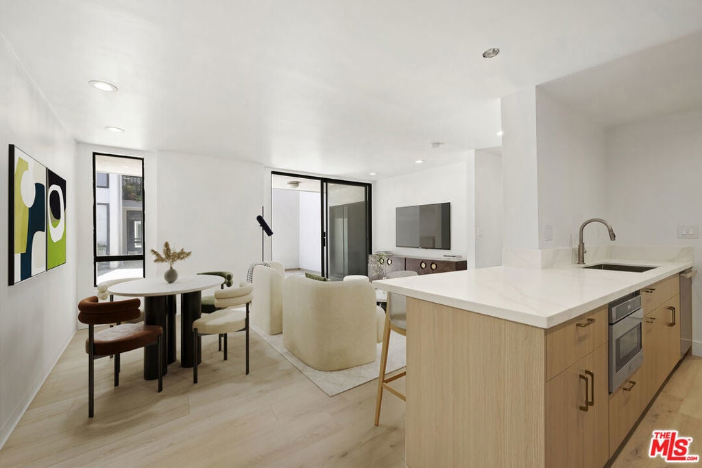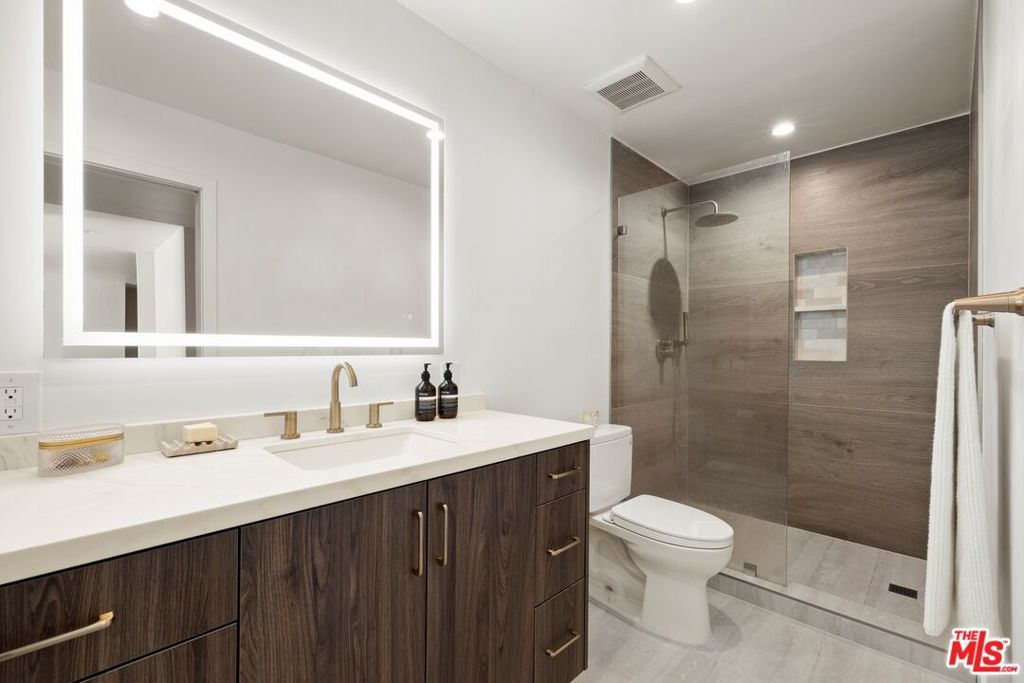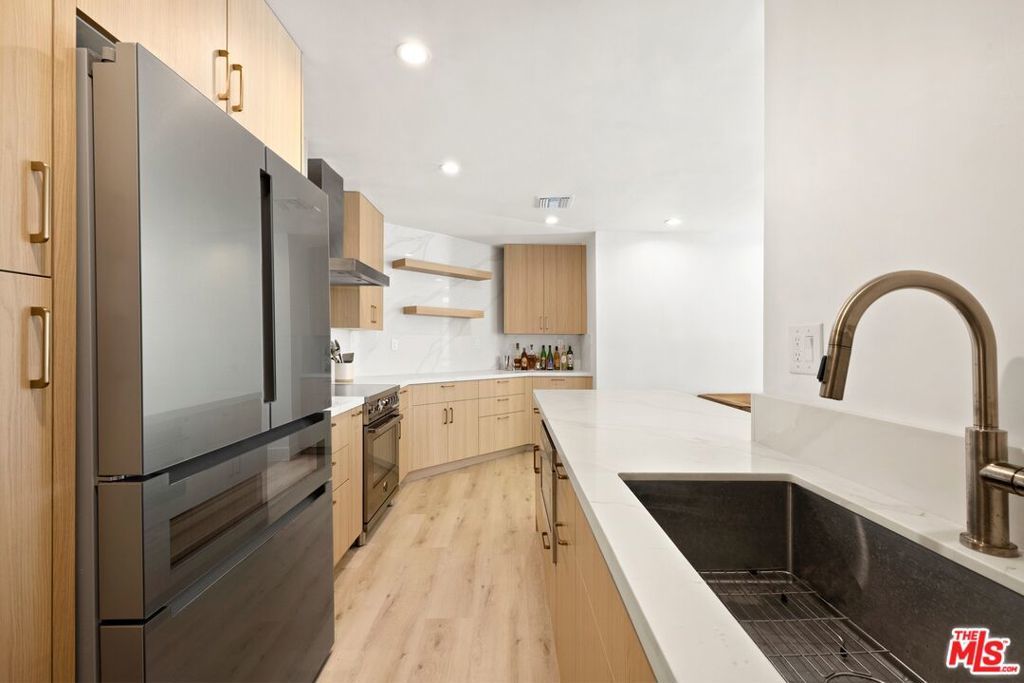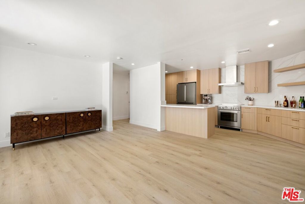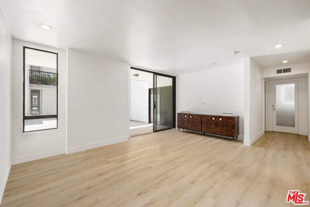 Exceptional West Hollywood Opportunity! Located on iconic N. Doheny Dr. in the heart of the Norma Triangle, Doheny Terrace offers a rare chance to live just moments from Beverly Hills and steps from both Sunset and Santa Monica Blvd. This meticulously renovated and spacious corner unit is tucked away on the quiet side of the building - no street exposure, no noise - offering a serene retreat with incredible natural light and effortless indoor-outdoor flow. Enjoy the best location within the building: no common walls and a large private patio that seamlessly blends into the expansive community sundeck, creating the perfect setting for both private relaxation and social gatherings. The open layout features scratch-resistant, pet-friendly engineered hardwood flooring, recessed lighting, and expansive wall space ideal for showcasing art. The designer kitchen is a true showstopper, featuring Calacatta Aurora quartz countertops, full-height slab backsplash, floating shelves, and custom cabinetry reconfigured to maximize space and storage. Top-of-the-line appliances include a BOSCH French Door Refrigerator with FlexBar, Miele dishwasher, and built-in Bertazzoni microwave and oven. The spa-inspired bathroom boasts a walk-in shower with stone flooring, Delta rain shower/handheld combo, a backlit LED vanity mirror, and a custom walnut-tone vanity that echoes the natural textures throughout for a clean, modern, and tranquil feel. The oversized bedroom is truly unparalleled, with direct patio access, a generous walk-in closet, and no shared walls for added privacy and comfort. Turn-key, stylish, and newly renovated all city inspected - this is a move-in-ready GEM in a highly desirable WeHo location. Gated garage parking included. The secure building features ButterflyMX smart intercom system, security cameras, a formal lobby, pool, gym, sauna, and community sundeck. Just steps to top-tier dining, shopping, and nightlife including Soho House, The Pendry, The Edition Hotel, Sunset Plaza, and nearby parks. A rare offering in one of West Hollywood's most sought-after enclaves - Don't miss out on this exceptional home!