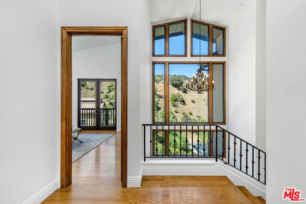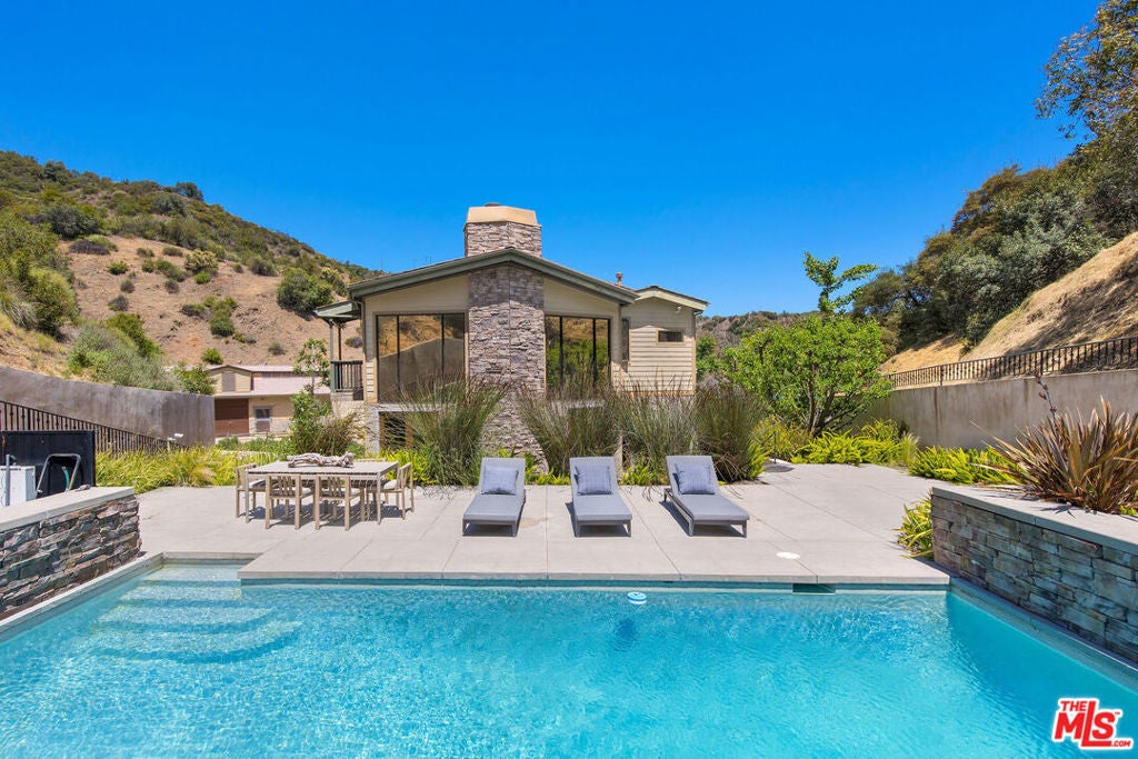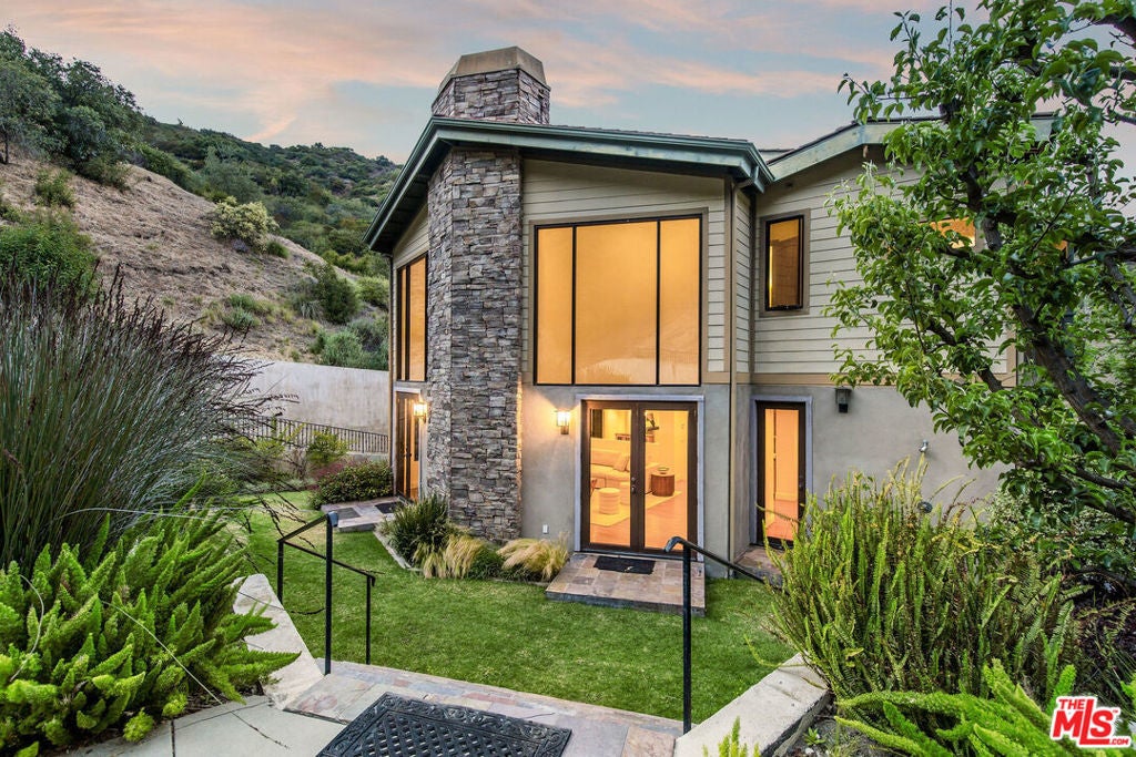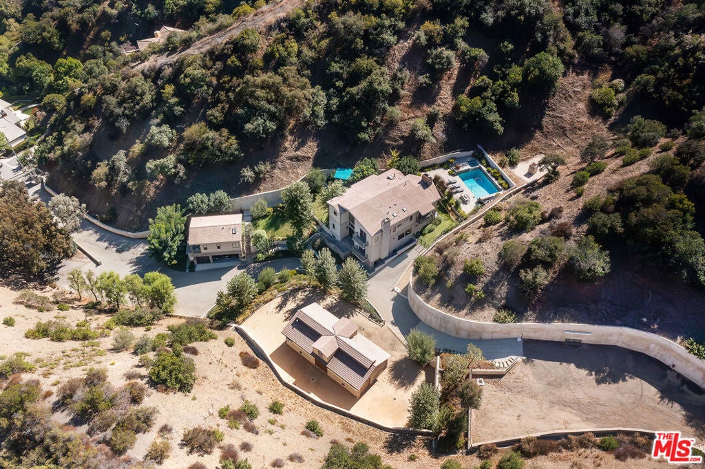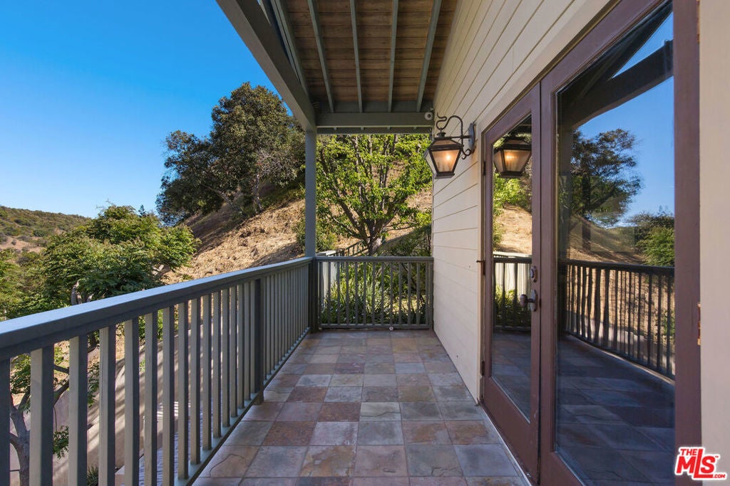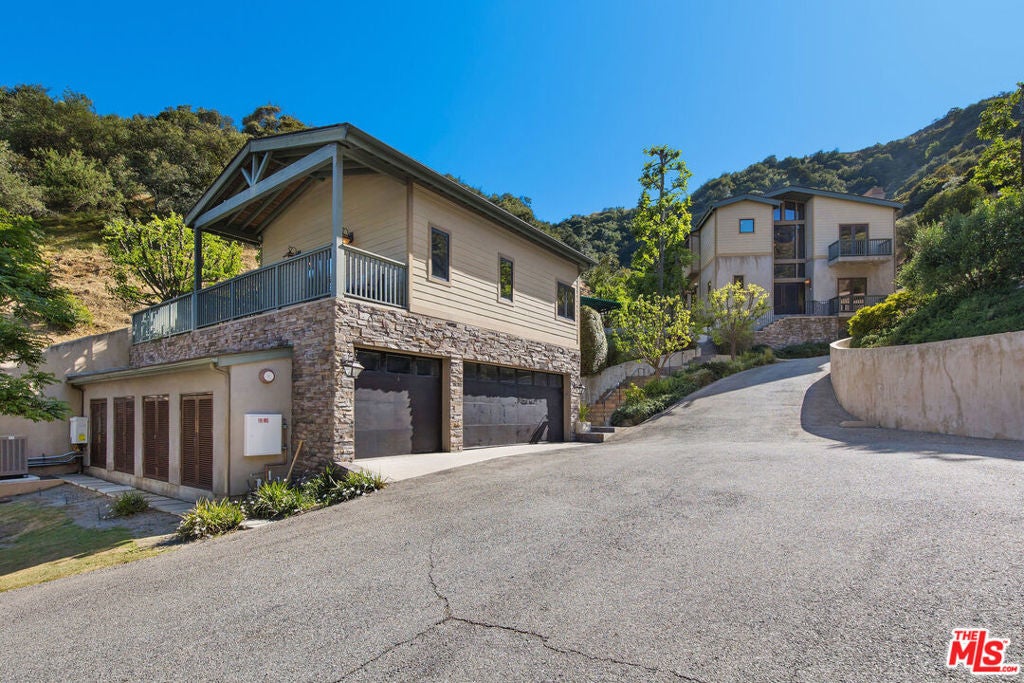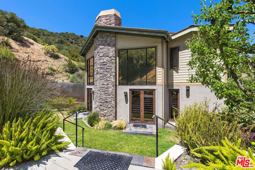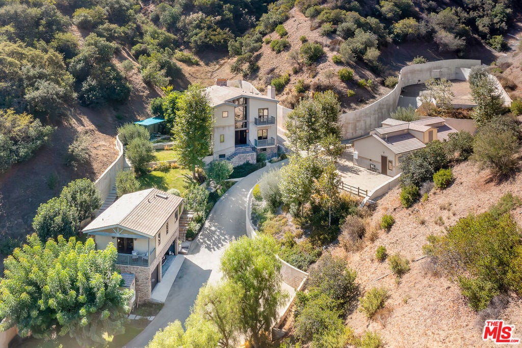 Tucked away at the very end of coveted Mandeville Canyon, Stone Hollow is a breathtaking 7.5-acre estate where timeless rustic charm meets refined California living. Offering total privacy, generous scale, and striking natural beauty, this one-of-a-kind compound features a 5-bedroom, 7-bathroom main residence with over 5,400 sq ft of thoughtfully designed living space plus a detached 1 bed/ 1 bath 700 sq ft guesthouse above a 3-car garage. A secure gated entrance opens to a long, private drive that winds past mature trees and lush landscaping. The main home, built in 2006, radiates warmth and understated sophistication, with natural stone finishes, vaulted wood-beamed ceilings, rich textures, and expansive views of the surrounding canyon. Walls of glass and open, airy living spaces create seamless indoor-outdoor flow throughout. The layout is ideal for entertaining and everyday living, with a chef's kitchen, formal and informal dining areas, and a dramatic living room anchored by a statement fireplace and large picture windows. Outside, expansive flat lawns, stone patios, a tucked-away spa, fire pit lounge, multiple seating areas invite relaxing outdoor living year-round. Meandering pathways and manicured gardens further enhance the sense of retreat. Just beyond the residence is a professional-grade equestrian facility, complete with a 4-stall barn, tack room, wash area, gym, and a riding arena. While no longer an active ranch, the infrastructure remains intact offering endless possibilities for horse lovers, creative reimagining, or simply enjoying the space and flexibility it provides. Minutes from the heart of Brentwood, yet a world away, Stone Hollow is a true legacy property rarely available and impossible to replicate. For those seeking nature, serenity, and luxurious space without leaving Los Angeles, there is nothing else like it.