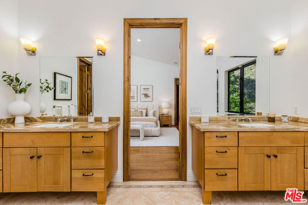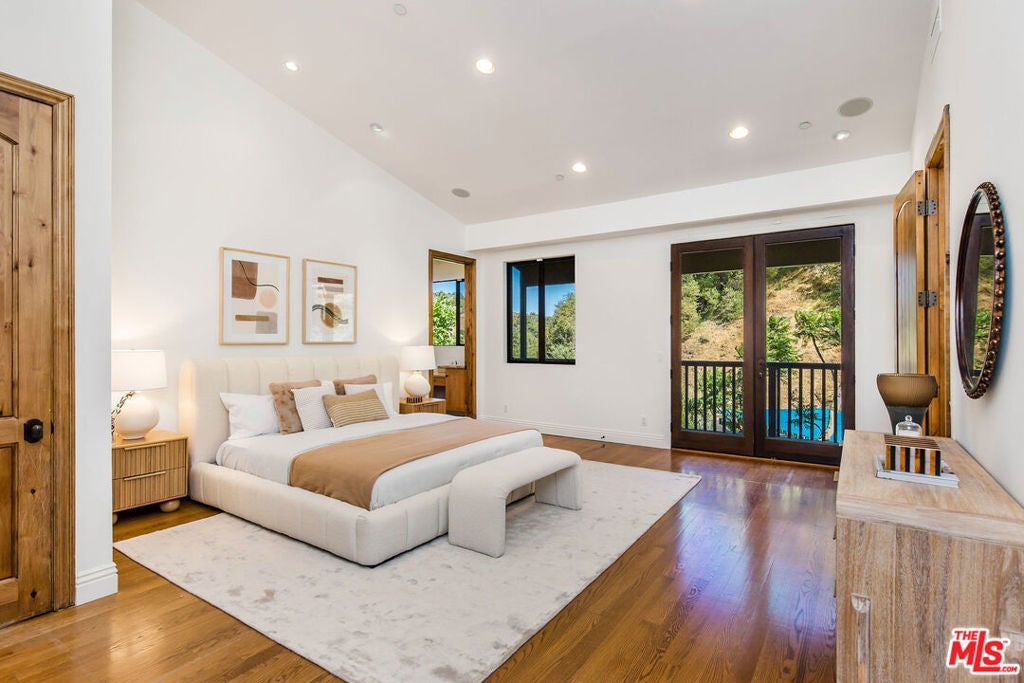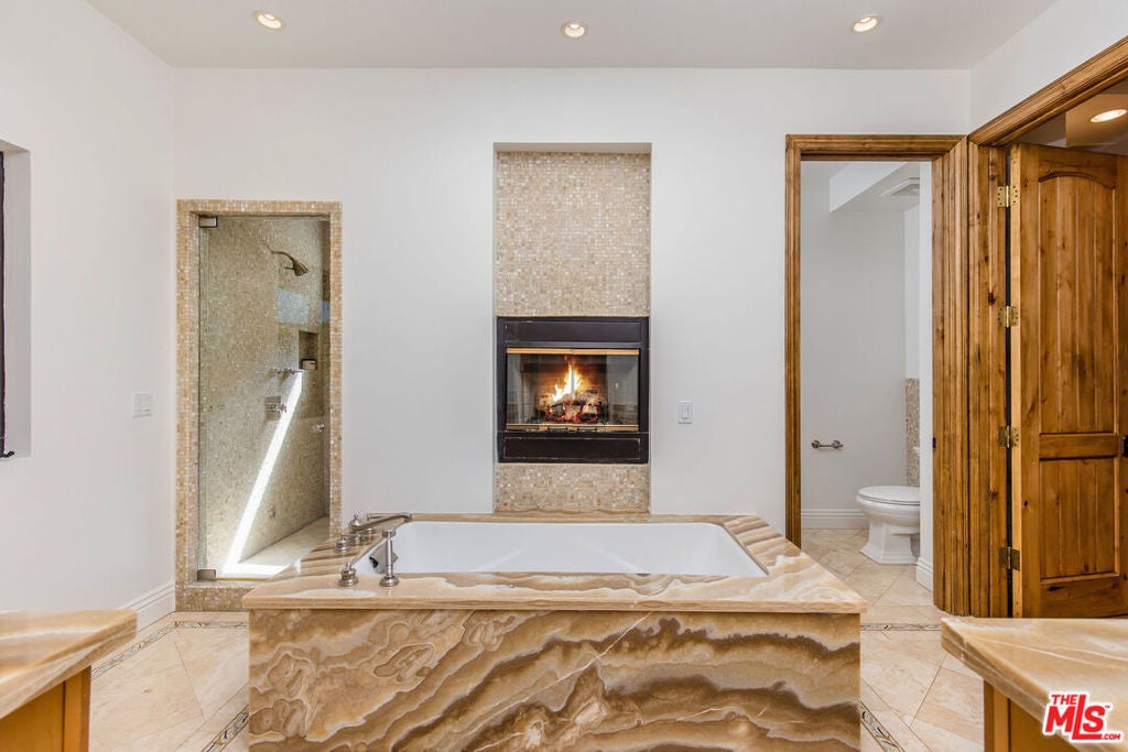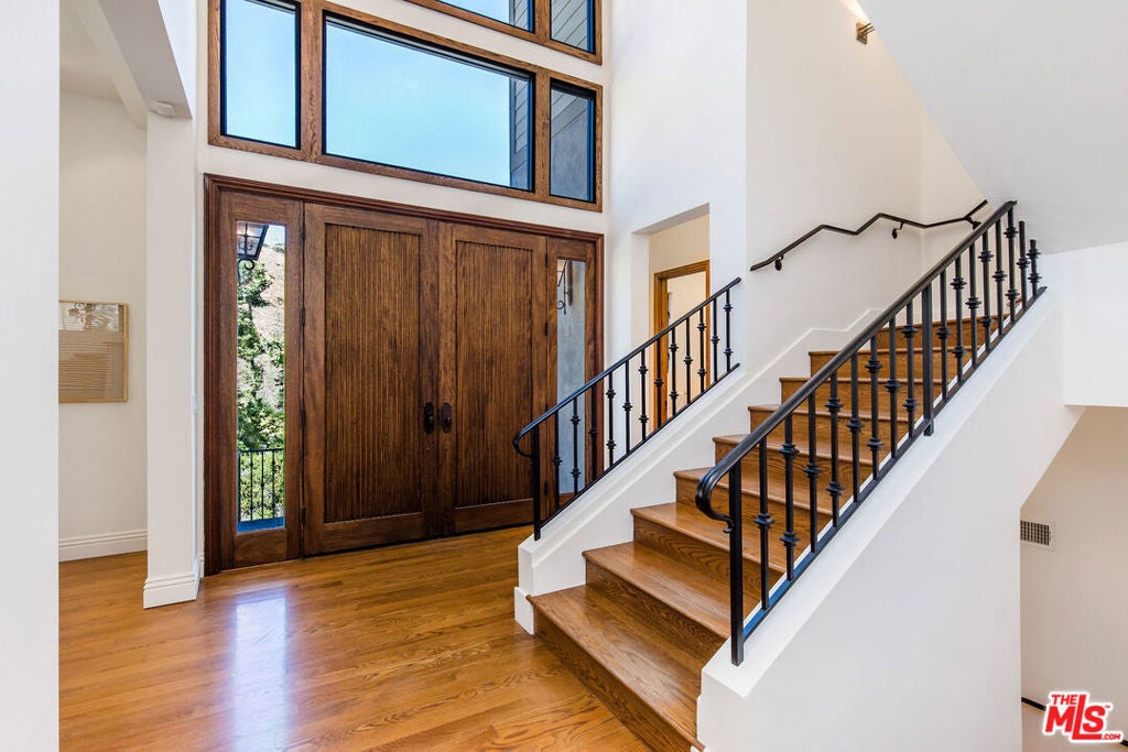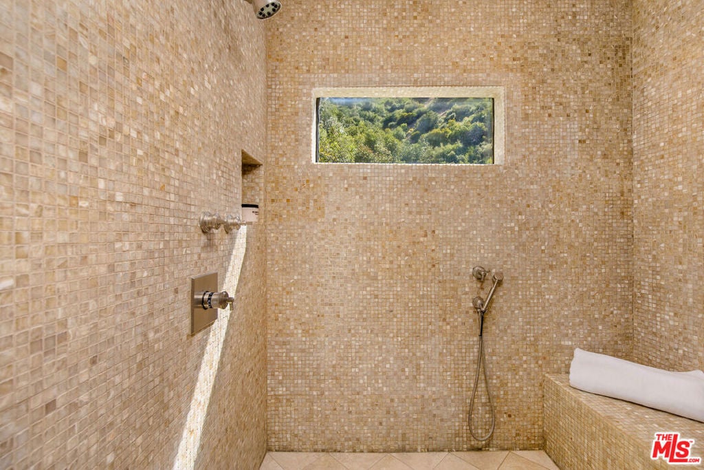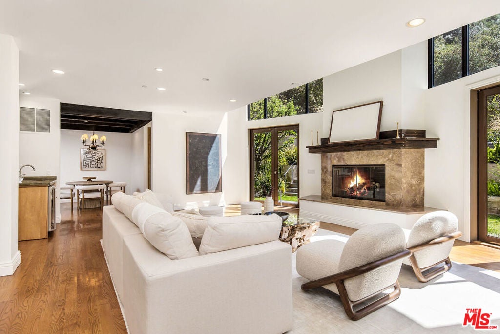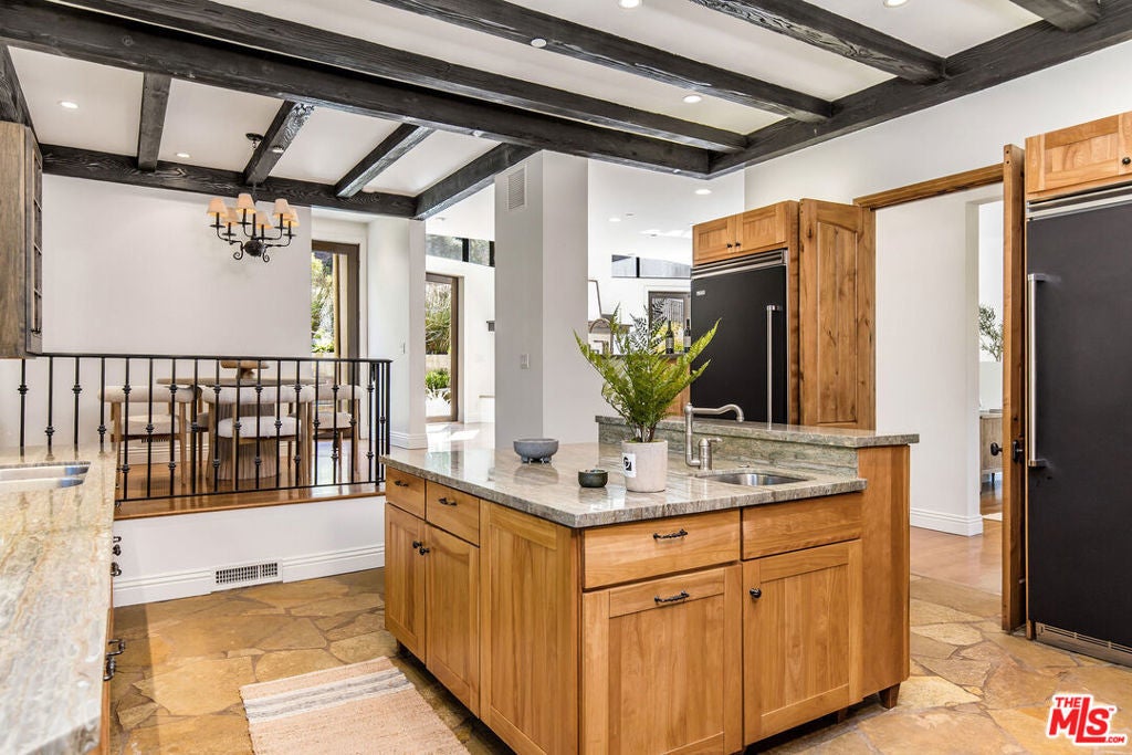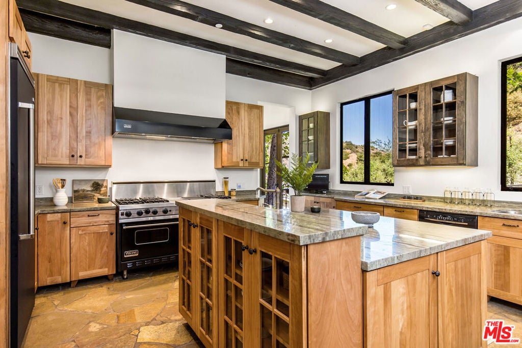 Tucked away at the very end of coveted Mandeville Canyon, Stone Hollow is a breathtaking 7.5-acre estate where timeless rustic charm meets refined California living. Offering total privacy, generous scale, and striking natural beauty, this one-of-a-kind compound features a 5-bedroom, 7-bathroom main residence with over 5,400 sq ft of thoughtfully designed living space plus a detached 1 bed/ 1 bath 700 sq ft guesthouse above a 3-car garage. A secure gated entrance opens to a long, private drive that winds past mature trees and lush landscaping. The main home, built in 2006, radiates warmth and understated sophistication, with natural stone finishes, vaulted wood-beamed ceilings, rich textures, and expansive views of the surrounding canyon. Walls of glass and open, airy living spaces create seamless indoor-outdoor flow throughout. The layout is ideal for entertaining and everyday living, with a chef's kitchen, formal and informal dining areas, and a dramatic living room anchored by a statement fireplace and large picture windows. Outside, expansive flat lawns, stone patios, a tucked-away spa, fire pit lounge, multiple seating areas invite relaxing outdoor living year-round. Meandering pathways and manicured gardens further enhance the sense of retreat. Just beyond the residence is a professional-grade equestrian facility, complete with a 4-stall barn, tack room, wash area, gym, and a riding arena. While no longer an active ranch, the infrastructure remains intact offering endless possibilities for horse lovers, creative reimagining, or simply enjoying the space and flexibility it provides. Minutes from the heart of Brentwood, yet a world away, Stone Hollow is a true legacy property rarely available and impossible to replicate. For those seeking nature, serenity, and luxurious space without leaving Los Angeles, there is nothing else like it.