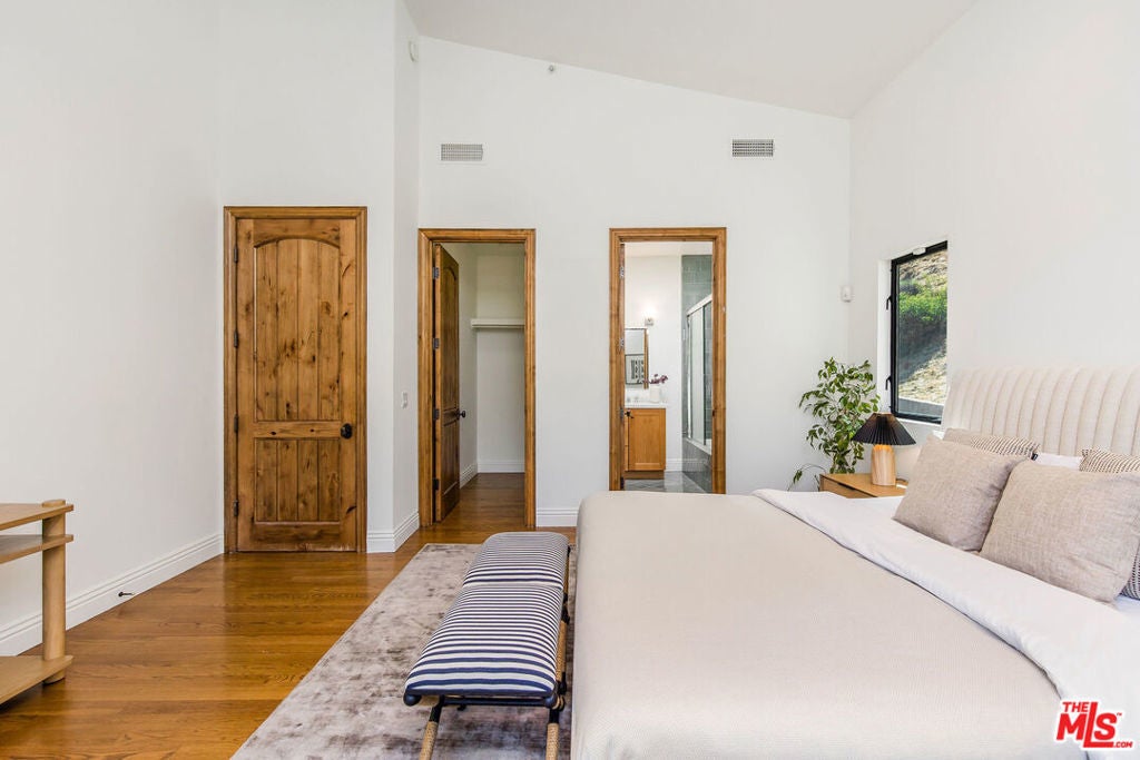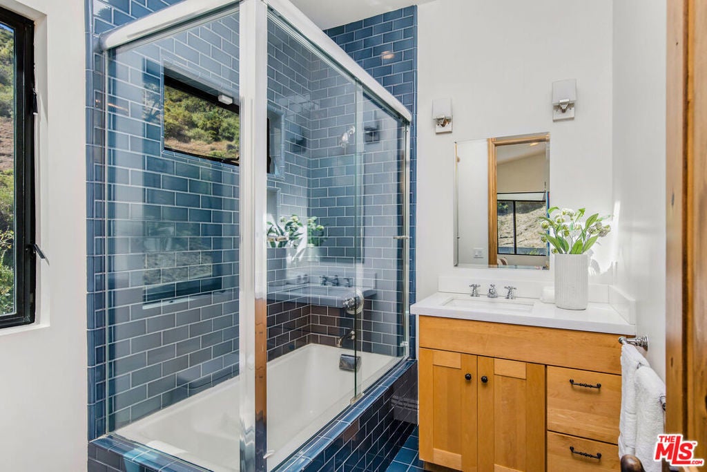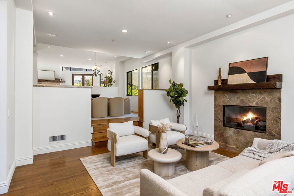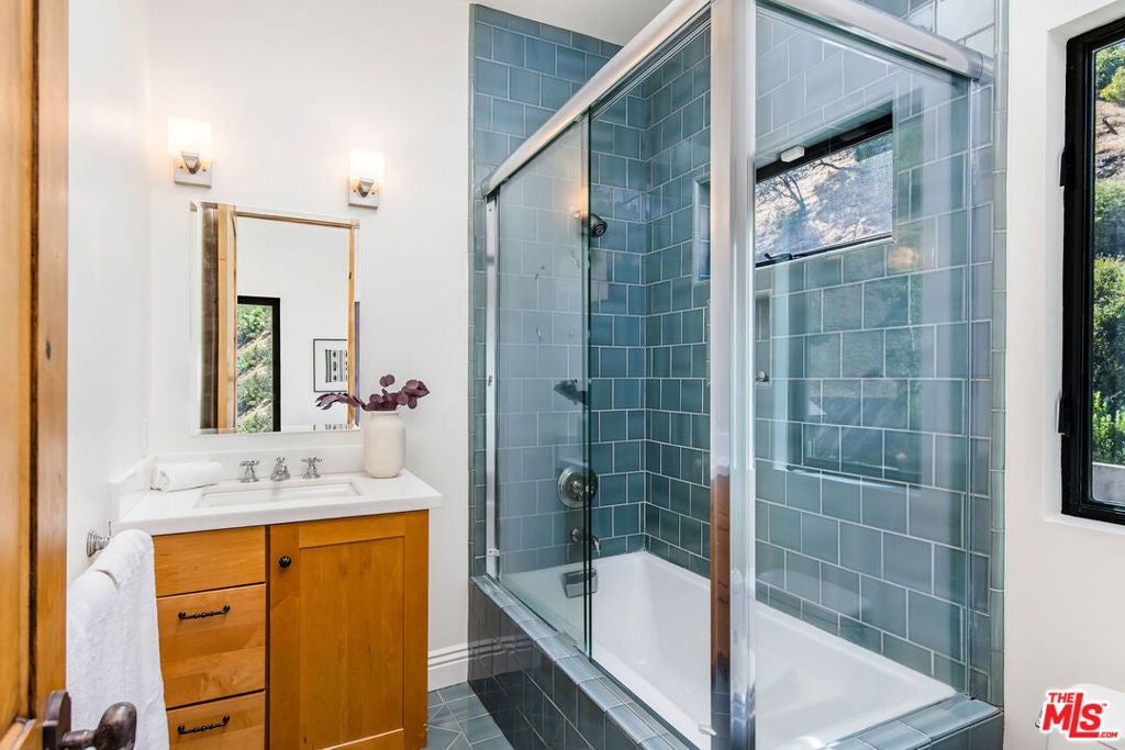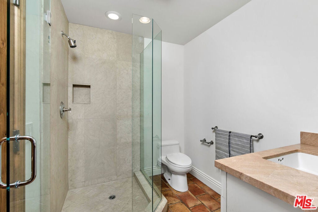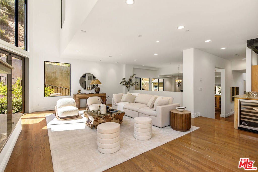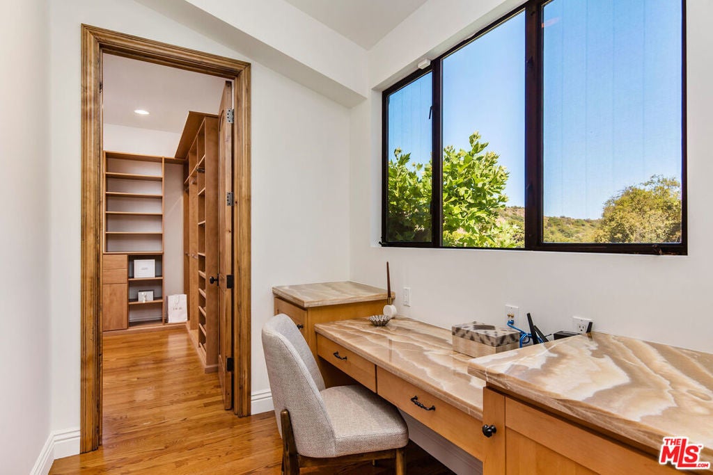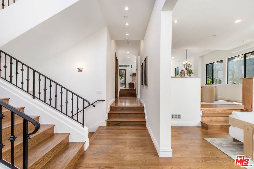 Tucked away at the very end of coveted Mandeville Canyon, Stone Hollow is a breathtaking 7.5-acre estate where timeless rustic charm meets refined California living. Offering total privacy, generous scale, and striking natural beauty, this one-of-a-kind compound features a 5-bedroom, 7-bathroom main residence with over 5,400 sq ft of thoughtfully designed living space plus a detached 1 bed/ 1 bath 700 sq ft guesthouse above a 3-car garage. A secure gated entrance opens to a long, private drive that winds past mature trees and lush landscaping. The main home, built in 2006, radiates warmth and understated sophistication, with natural stone finishes, vaulted wood-beamed ceilings, rich textures, and expansive views of the surrounding canyon. Walls of glass and open, airy living spaces create seamless indoor-outdoor flow throughout. The layout is ideal for entertaining and everyday living, with a chef's kitchen, formal and informal dining areas, and a dramatic living room anchored by a statement fireplace and large picture windows. Outside, expansive flat lawns, stone patios, a tucked-away spa, fire pit lounge, multiple seating areas invite relaxing outdoor living year-round. Meandering pathways and manicured gardens further enhance the sense of retreat. Just beyond the residence is a professional-grade equestrian facility, complete with a 4-stall barn, tack room, wash area, gym, and a riding arena. While no longer an active ranch, the infrastructure remains intact offering endless possibilities for horse lovers, creative reimagining, or simply enjoying the space and flexibility it provides. Minutes from the heart of Brentwood, yet a world away, Stone Hollow is a true legacy property rarely available and impossible to replicate. For those seeking nature, serenity, and luxurious space without leaving Los Angeles, there is nothing else like it.