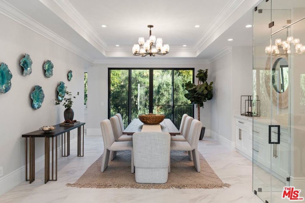 Brand-New Custom Estate | Tarzana's Crown Jewel Experience the pinnacle of luxury living in this newly constructed custom estate, perfectly situated in one of Tarzana's most coveted enclaves. Privately set behind a gated driveway off Vanalden Ave, this 5-bedroom, 8-bath architectural masterpiece seamlessly blends timeless elegance with cutting-edge design. Step inside to soaring coffered ceilings, natural light streaming through oversized windows, and a fluid floor plan designed for both grand entertaining and intimate moments. At the heart of the home lies a stunning glass-enclosed wine cellar, anchoring the formal dining and living rooms with dramatic flair. The living room's stately fireplace opens to a tranquil courtyard, while the expansive family room connects to a breakfast nook and chef's dream kitchen outfitted with Sub-Zero and Wolf appliances, a statement quartz island, and panoramic views of the resort-style backyard. Disappearing walls of glass create effortless indoor/outdoor flow, leading to a backyard paradise with a sparkling pool, cascading waterfalls, spa, fire pit, and a fully equipped BBQ station with its own dedicated bathroom. A spacious guest suite, powder room, and laundry room complete the main level. Upstairs, four additional en-suite bedrooms await, including a show-stopping primary suite with vaulted ceilings, fireplace, and tree-framed views. The spa-like primary bath features a soaking tub with peaceful vistas, a generous walk-in closet, and dual balconies overlooking the valley. A light-filled library/study area adds a touch of functionality to the upper floor. Downstairs, indulge in a private media theater, gym/game room, and an additional bath perfect for work-from-home or guest privacy. The property includes a 3-car garage along with ample outdoor space for up to 12 additional vehicles, offering parking for 15+ cars and potential RV accessideal for entertaining on a grand scale. Currently nearing completion, this estate represents the finest in Southern California luxury detail, meticulously curated for comfort, beauty, and lifestyle.