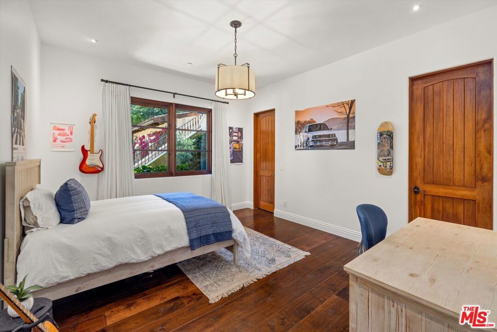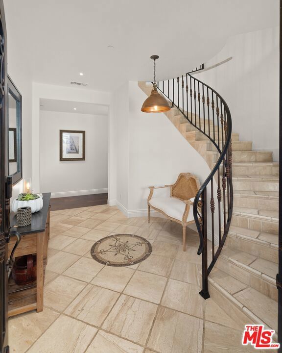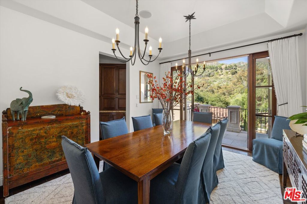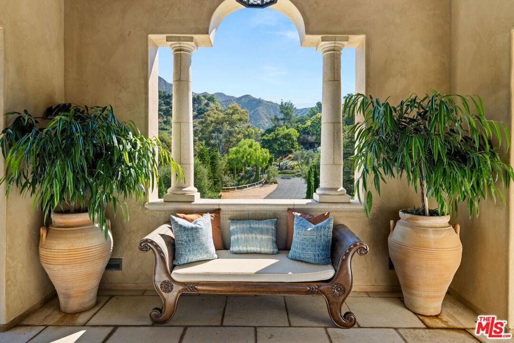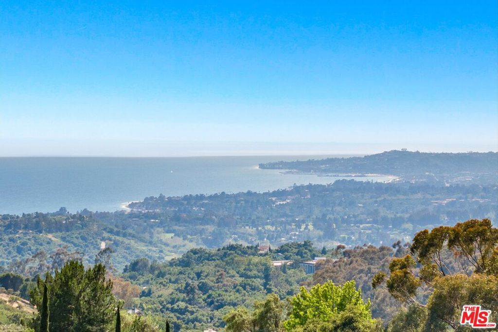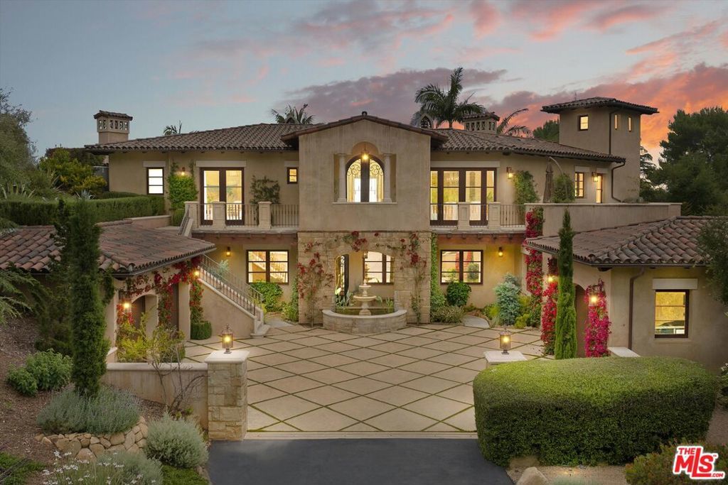 This magnificent 4-bedroom property, built in 2010, embodies serene elegance and luxurious living, offering breathtaking ocean and mountain views that provide a tranquil escape. Each bedroom features an en-suite bathroom, and there are three additional powder rooms. Situated on 2.25 acres, this gated Tuscan-style estate offers ample space and privacy. Upon entering, a wrap-around staircase and exposed beams throughout the home create a warm and inviting atmosphere. The rustic wood flooring adds to the charm, while the French doors seamlessly blend indoor and outdoor living. The exquisite layout with two levels ensures both comfort and sophistication.The grand living spaces feature four fireplaces located in the primary bedroom, primary bathroom, living room, and family room, perfect for cozy gatherings and elegant entertaining. The gourmet kitchen and adjacent breakfast room open to expansive terraces, ideal for al fresco dining and enjoying the stunning vistas. Outside, discover the covered loggia, large terraces, and a sparkling pool and spa, all surrounded by meticulously manicured grounds designed by Robert E. Truskowski. The sprawling vistas provide a picturesque backdrop. The flex space is currently being utilized as a gym, wine cellar, and media room. The three-car garage facilities, with an adjoining workshop, ensure ample space for vehicles and storage. A separate two-bedroom residence offers additional privacy and comfort for visitors.