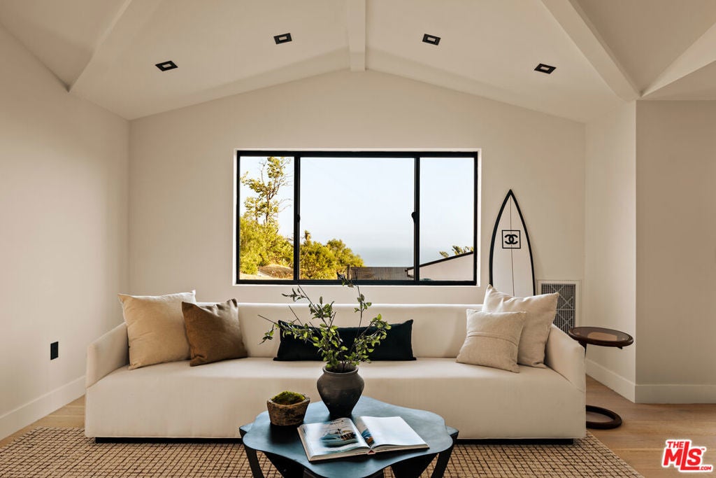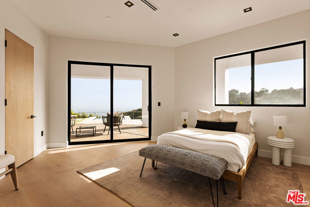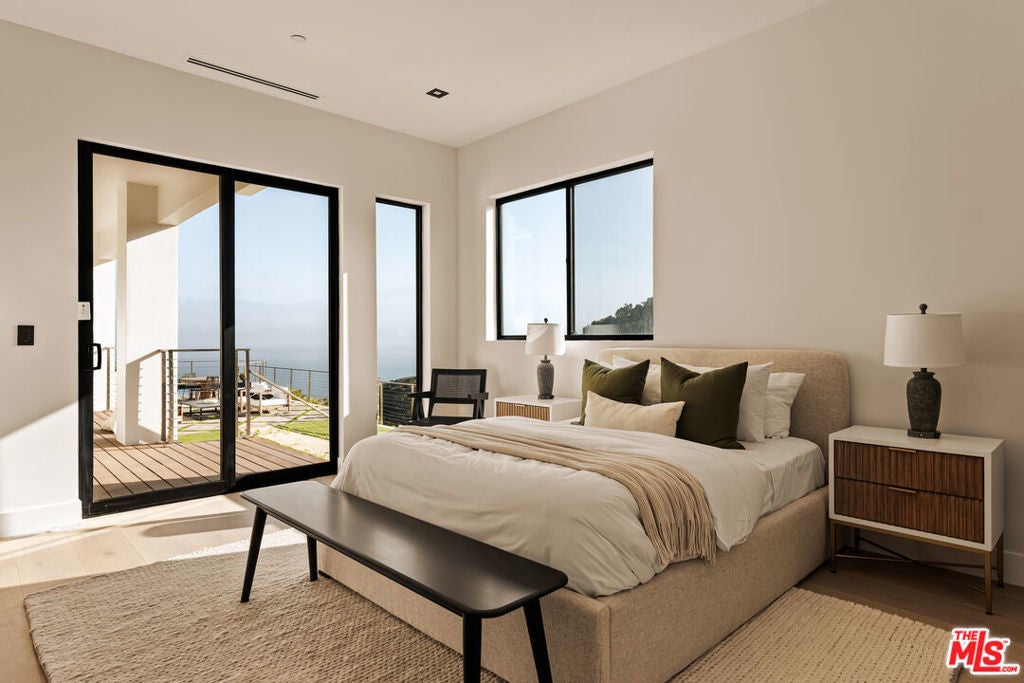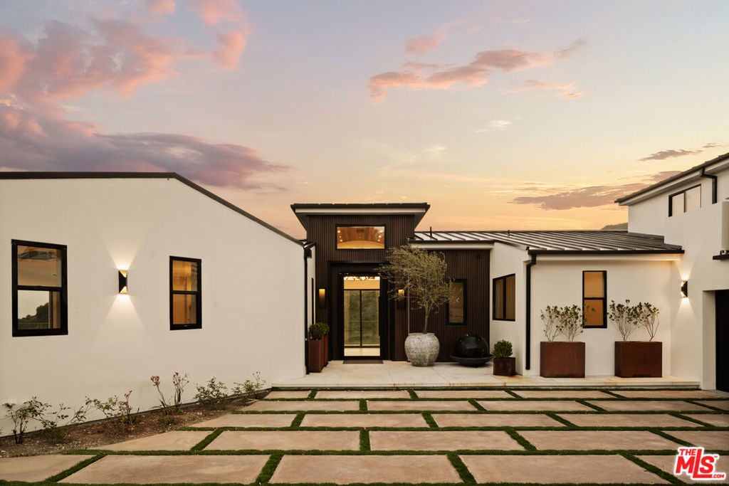 Perched atop a pristine acre in the heart of Malibu, this modern estate with whitewater views redefines coastal luxury. Upon arrival, you are greeted by a long, gated driveway leading to a grand entrance, where one is greeted with an IPAE Brazilian wood entry. Opening to an expansive open floor plan that artfully connects the kitchen, dining, and family room area. Framed by floor-to-ceiling glass walls, this space offers captivating ocean vistas that serve as the perfect backdrop for sunset gatherings. Boasting two state-of-the-art Bauformat kitchens adorned with high-end Dektone countertops, and fitted with a plum wine dispenser, catering to both everyday living and gourmet culinary experiences. The luxurious primary suite offers sweeping ocean views, a spa-like primary bathroom complete with rainfall shower head and dual closets. The adjoining one-bedroom, one-bathroom guest house offers privacy and modern amenities. Outdoor living is an experience unto itself, with a large swimming pool and spa offering endless relaxation and landscaping. Every detail has been meticulously designed to elevate your living experience. Offering the perfect blend of privacy, security, and stunning natural beauty, this Malibu masterpiece invites you to step into a world where every moment is framed by breathtaking views and extraordinary design. This sanctuary masterfully combines sophistication and tranquility, inviting you to experience a lifestyle of unmatched elegance and comfort.