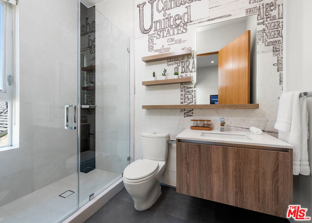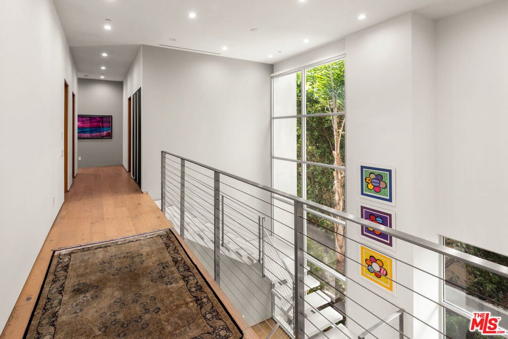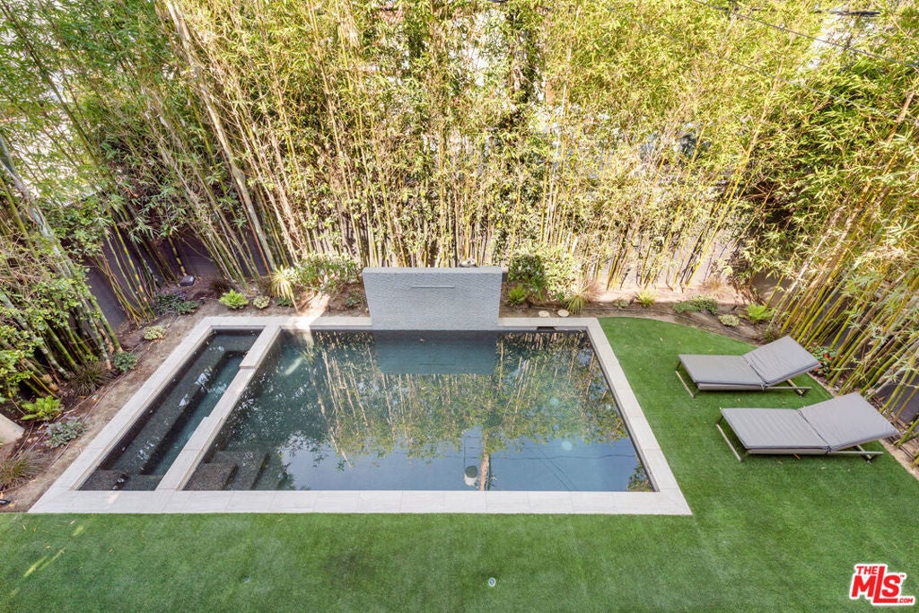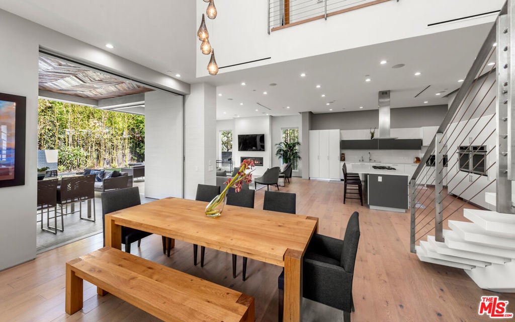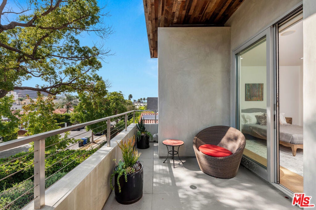 Fully furnished & gated modern home near Beverly Center, 3rd Street & Beverly Blvd shops. This lovely & hip modern home boasts 5 bedrooms all with their own en-suite baths plus a powder room (5.5 baths). High ceilings, hardwood floors, floating staircase & sliding pocket glass doors makes this an incredible home ideal for tenants looking to impress. The open floor plan includes a fully equipped kitchen with a built-in coffeemaker. A tranquil backyard awaits with an impressive pool, spa & fireplace. One bedroom downstairs with four bedrooms upstairs, each with their own balcony, along with a laundry room. Large & spacious master bedroom with a great walk-in closet & a master bath made for a king. 2 car garage + 2 car gated driveway.