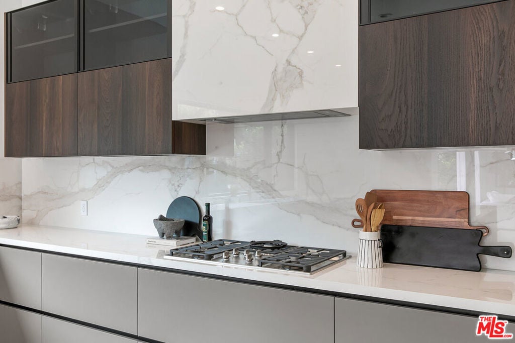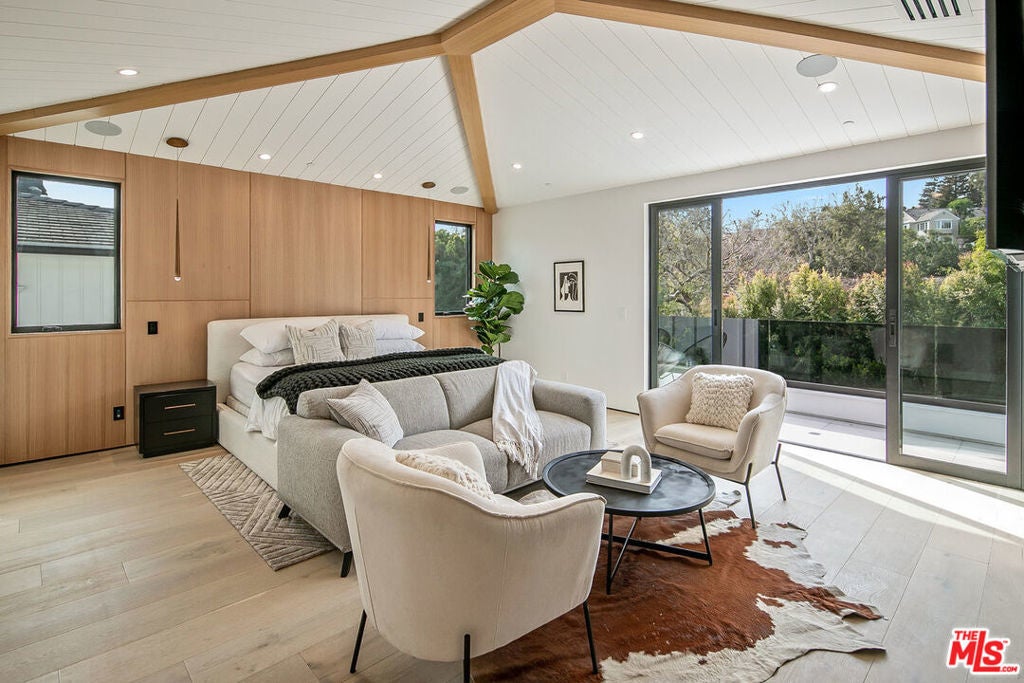 Experience the pinnacle of luxury living in this new construction modern farmhouse located in highly sought-after Westwood just off of renowned Sunset Boulevard. Entering through the grand pivot door you will find an open floor plan set on French oak wood floors boasting an expansive living room, fire sided family room, an executive office, wine cellar, a custom Italian kitchen claiming imported stone counter tops, Miele appliances and Graff water fixtures all beneath lofty 11-foot ceilings - nothing but quality craftsmanship and timeless design throughout. The chandelier illuminated staircase leads to the primary suite possessing custom vaulted ceilings, fireplace, a terrace overlooking the backyard, a walk-in closet and a deluxe opulent bathroom. Neighboring the primary suite lay 3 large en-suites and laundry room. Making your way outside through the sliding glass pocket doors introduces you to the resort-like backyard with a fire pit, outdoor kitchen, a Pebble Tec pool and spa and a guest house with a full bathroom - all surrounded by towering Ficus plants offering the upmost privacy. This smart home also features an advanced control4 home automation, multi-zone climate control, security systems and a 2-car direct access garage. Truly an exceptional property!