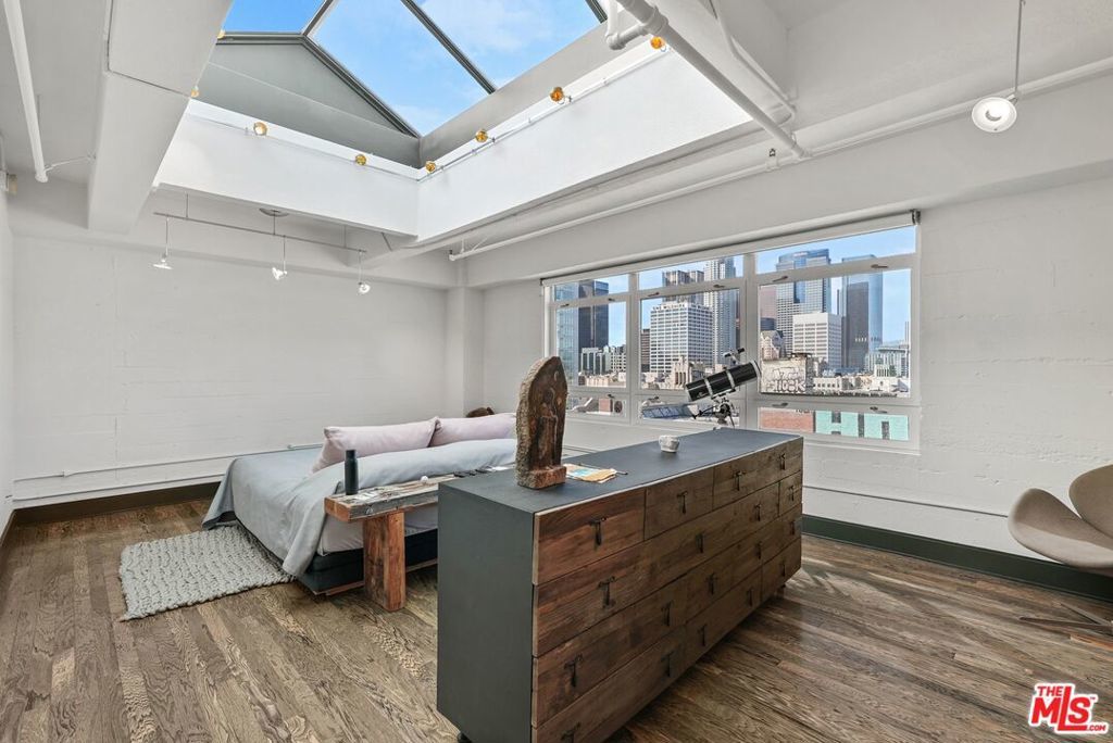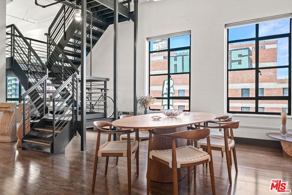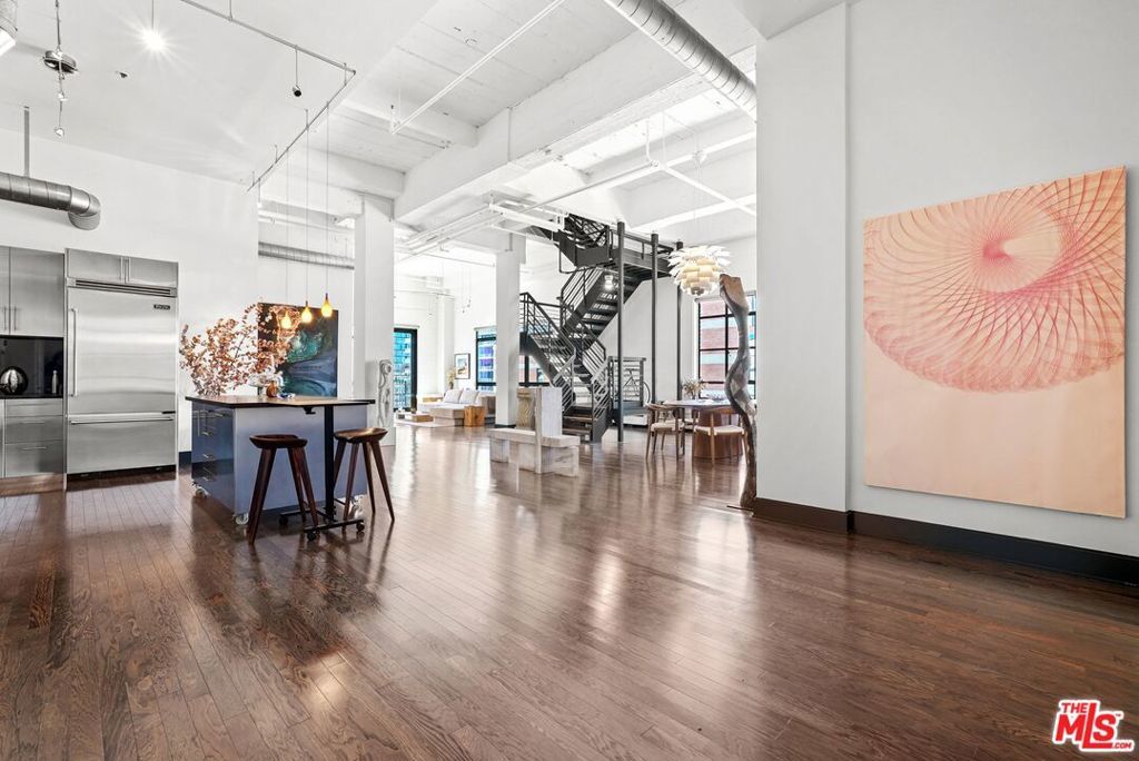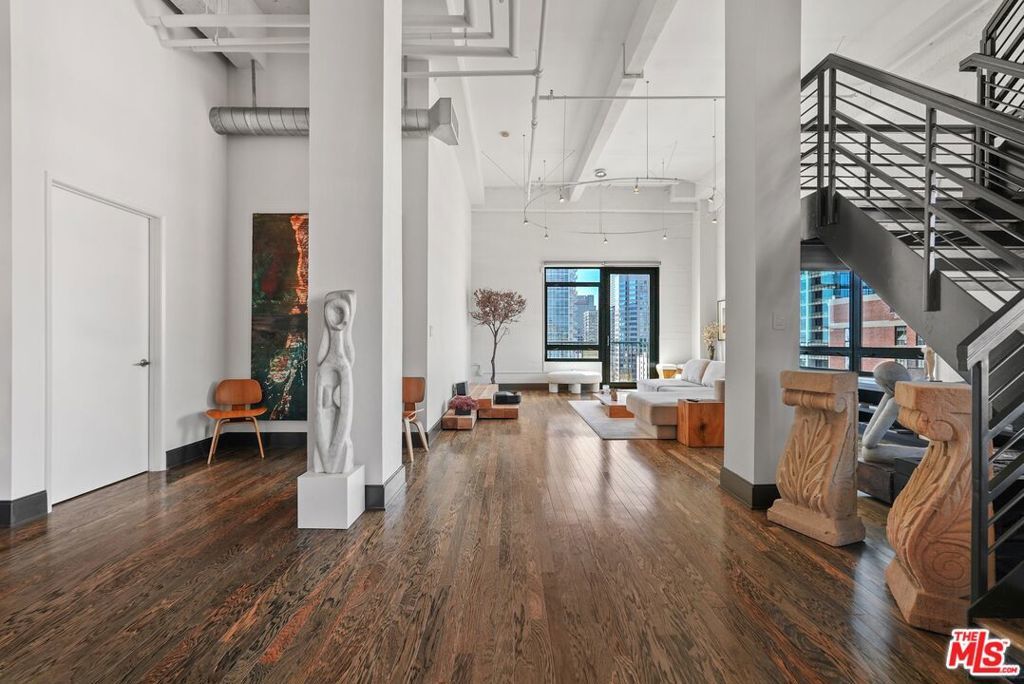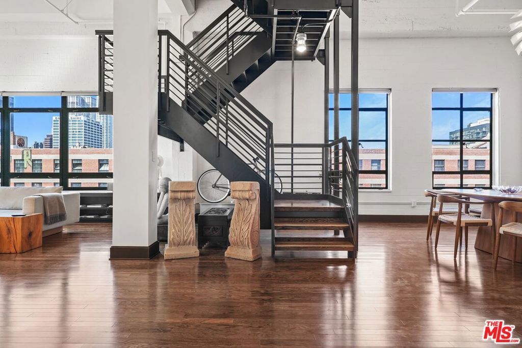 Located in the historic Eastern Columbia, one of the nation's finest examples of Art Deco architecture, is the largest penthouse constructed in the building. The multi-level loft's first floor presents a dramatic open floor plan with soaring high ceilings that span across a large kitchen, expansive dining room, and spacious living area. A wall of windows provides plentiful light during the day, while the evening brings skyline city lights and views. The views don't stop here as every room in the loft boasts beautiful downtown vistas. The designer decorated finishes are finely appointed from top to bottom with premium appliances and stainless steel cabinets in the kitchen, custom designed marble bathrooms, and hardwood floors throughout. Electronic shades, walk-in closets, custom lighting, and historical accents add character and comfort to this entertainer's loft. The primary suite is a true statement, with a unique vaulted skylight ceiling and views all the way to the San Gabriel mountains. The Eastern Columbia is certified under the Mills Act, affording each owner a considerable yearly property tax savings. This is not to mention the unparalleled amenities that the building has to offer - 24-hour concierge/security, onsite manager, rooftop gym, and one of the most iconic rooftop pool & pleasure decks in DTLA. With some of LA's most exciting dining and shopping all right outside your front door, this is an opportunity not to be passed up.