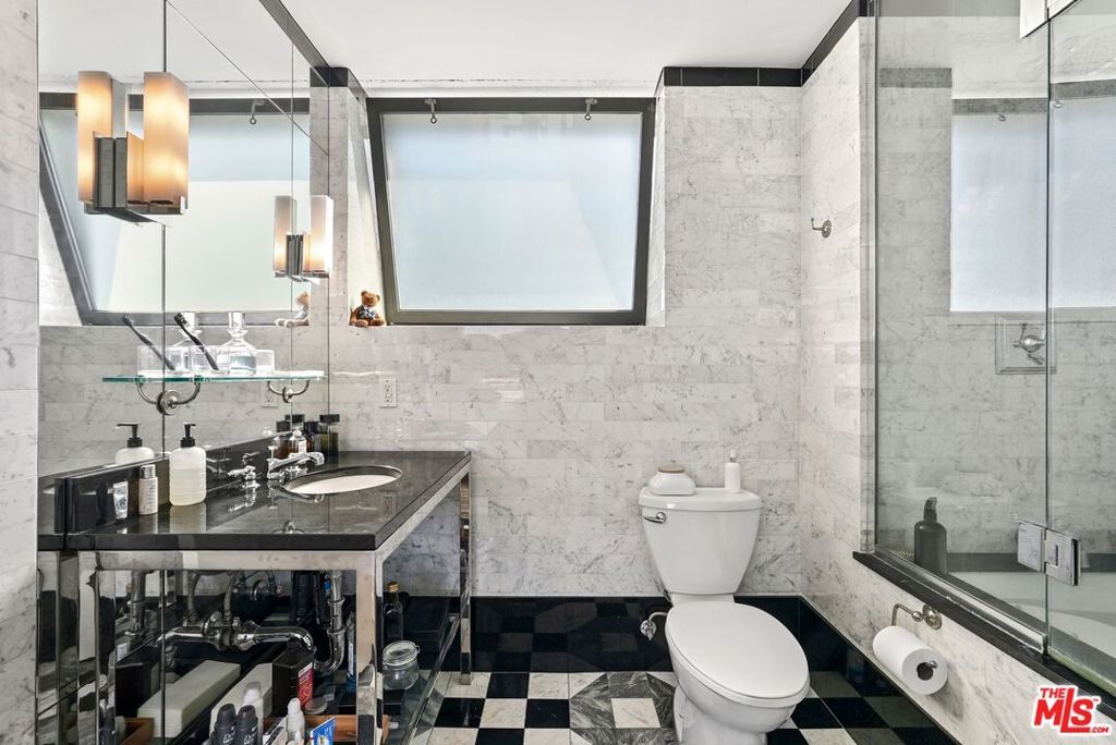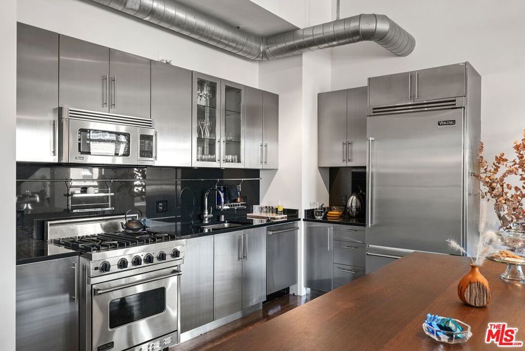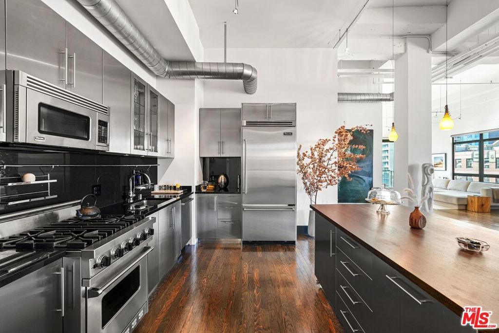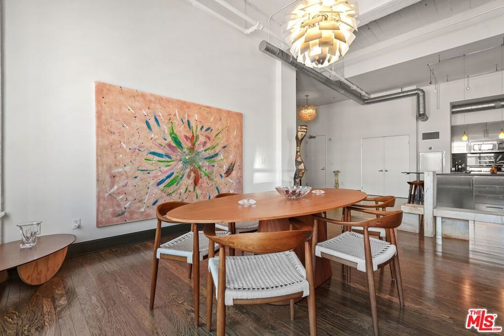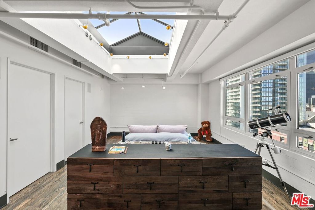 Located in the historic Eastern Columbia, one of the nation's finest examples of Art Deco architecture, is the largest penthouse constructed in the building. The multi-level loft's first floor presents a dramatic open floor plan with soaring high ceilings that span across a large kitchen, expansive dining room, and spacious living area. A wall of windows provides plentiful light during the day, while the evening brings skyline city lights and views. The views don't stop here as every room in the loft boasts beautiful downtown vistas. The designer decorated finishes are finely appointed from top to bottom with premium appliances and stainless steel cabinets in the kitchen, custom designed marble bathrooms, and hardwood floors throughout. Electronic shades, walk-in closets, custom lighting, and historical accents add character and comfort to this entertainer's loft. The primary suite is a true statement, with a unique vaulted skylight ceiling and views all the way to the San Gabriel mountains. The Eastern Columbia is certified under the Mills Act, affording each owner a considerable yearly property tax savings. This is not to mention the unparalleled amenities that the building has to offer - 24-hour concierge/security, onsite manager, rooftop gym, and one of the most iconic rooftop pool & pleasure decks in DTLA. With some of LA's most exciting dining and shopping all right outside your front door, this is an opportunity not to be passed up.