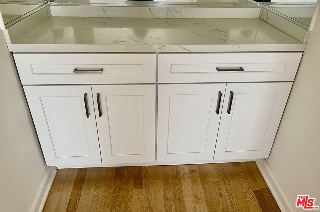 Vacant! Move into this spacious Bright and Sunny 1 bedroom, 1.5 Bath apartment located on a charming and quiet residential tree-lined street! Secured Building Entrance and an Automatic Gated Garage off Alleyway with tandem Parking Space, private Storage Area, and a community Laundry Room in addition to your own stackable Washer and Dryer "inside the unit." This quiet Apartment Community consists of only 12 units with an onsite Resident Manager. Enjoy meandering walks on the sidewalks of this lovely, peaceful neighborhood. Fabulous location....Only a few blocks from S. Beverly Drive with its popular restaurants and boutiques and then, onto the famous Rodeo Drive and Wilshire Blvd. Enjoy afternoon tea at the nearby Peninsula Hotel. Shop at Century City, and you won't carry your packages up the stairs, because this well-maintained building has an elevator! A block away, enjoy sports, activities or an afternoon of leisure at Roxbury Park and play games, attend classes or events at the adjoining, popular Roxbury Community Center. At the end of the day, leave the hustle and bustle of Beverly Hills behind, as you step into your serene home all on one level with Hardwood, Tile, and honed Creme Marfil floors. Spacious Living Room adjoins Dining Area. Step out on the Balcony off Dining Area that overlooks tree-top views in the daytime and city lights at night. Enjoy those same views from your sunny Kitchen window in updated galley Kitchen with Stainless Stove, Microwave, Refrigerator and Dishwasher. Kitchen features Quartzite countertops with splash backs of geometric decorator tiles. Off Entry Hall is a Powder Room for your guests with decorator vanity. Linen and Storage unit located in hallway leading to spacious Bedroom that adjoins doubled mirrored closets leading to Bathroom with Separate Soaking Tub and Shower and Decorator Vanity. As a resident, you will enjoy the charm, solitude, security and convenience of this lovely building!