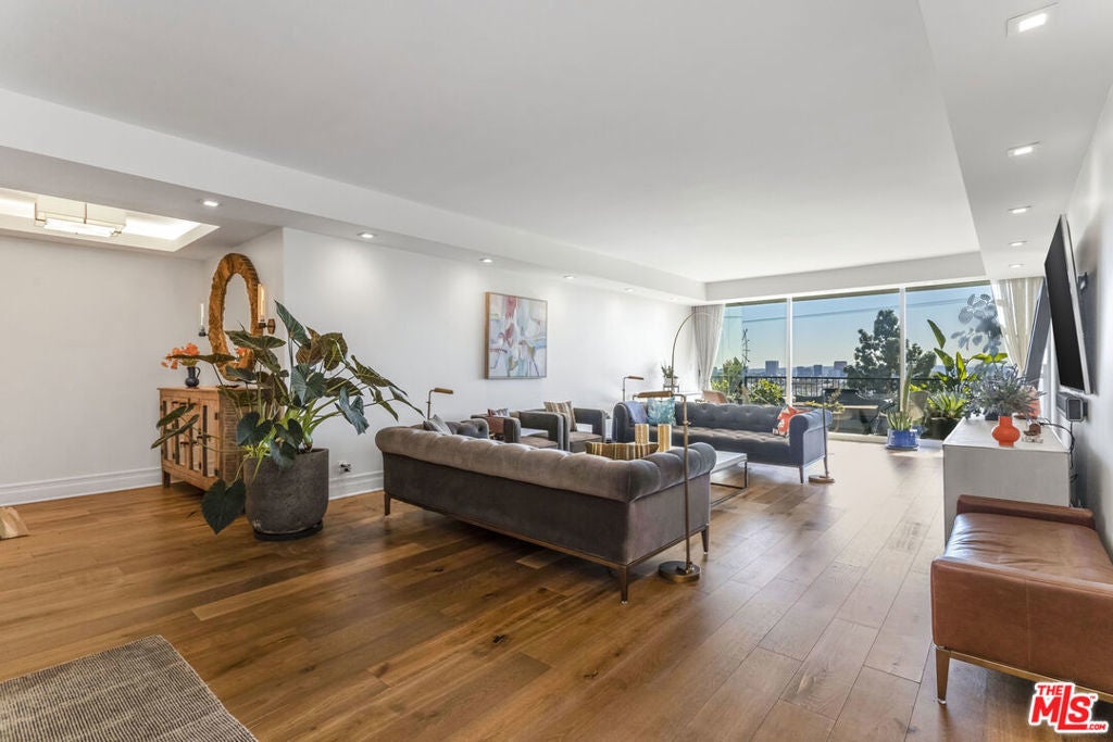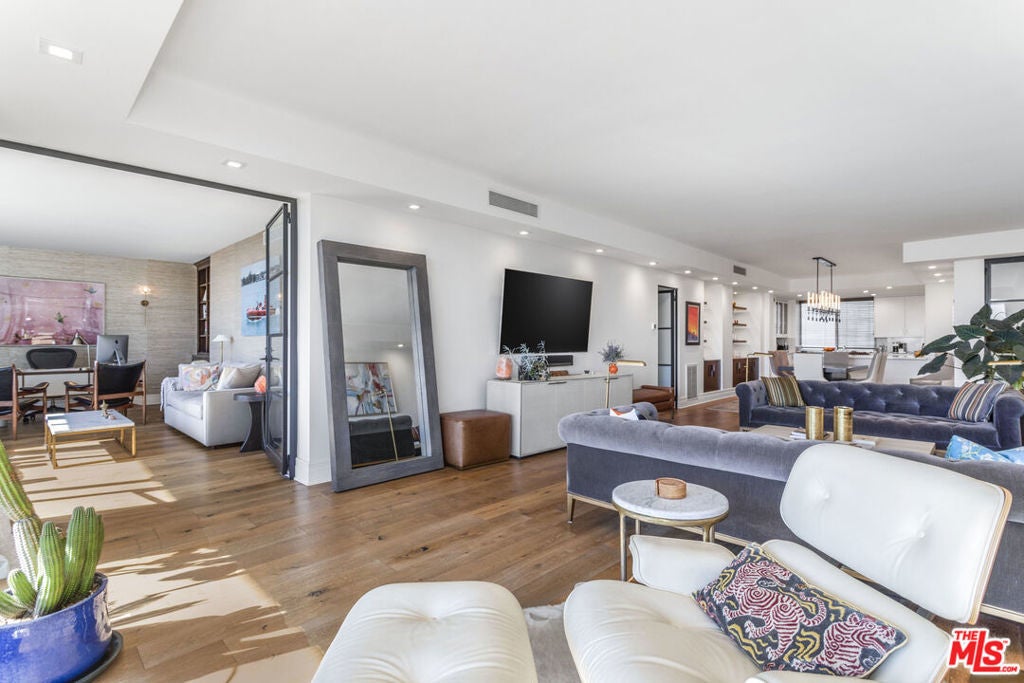 In a city built on what people believe they see, this 2BR/2.5BA residence at Empire West leans into the view. Nearly 2,300 square feet of considered space in the heart of West Hollywood - close enough to feel the pulse of Little Soho House, the clang of weights at Equinox, the flicker of sunset off glass along the Boulevards. The great room opens to a private balcony where downtown unfolds in silhouette. There's a designer kitchen, meant more for conversation than cooking, and a second living space - currently an office, possibly a den, maybe even a third bedroom if the night runs long. Two ensuite bedrooms, both with balconies and closets built to hold not just clothes but a life curated. The primary bath has a soaking tub, a glass shower, and a double vanity - because some mornings are shared and some are not. Iron and glass doors, custom-lit ceilings, a wide entry hall with a powder room that doesn't pretend to be more. Laundry where it should be. Hardwood where it counts. Empire West is full-service, which is to say it has a doorman, rooftop pool, tennis, gym, and earthquake insurance (yes, really). Two parking spaces wired for what comes next. HOA: $3,096.54/month. And yes, this is the center of the Strip's strange, glittering gravity.