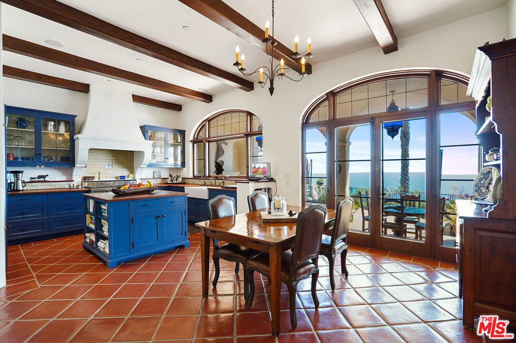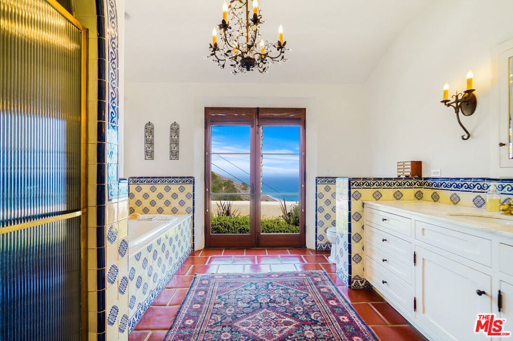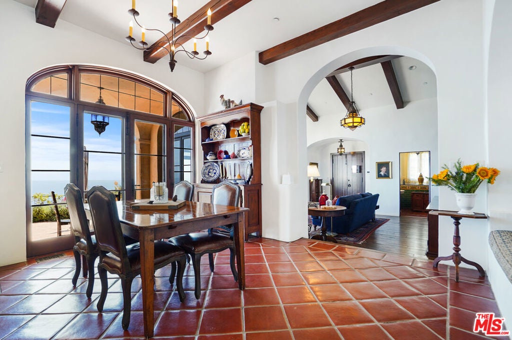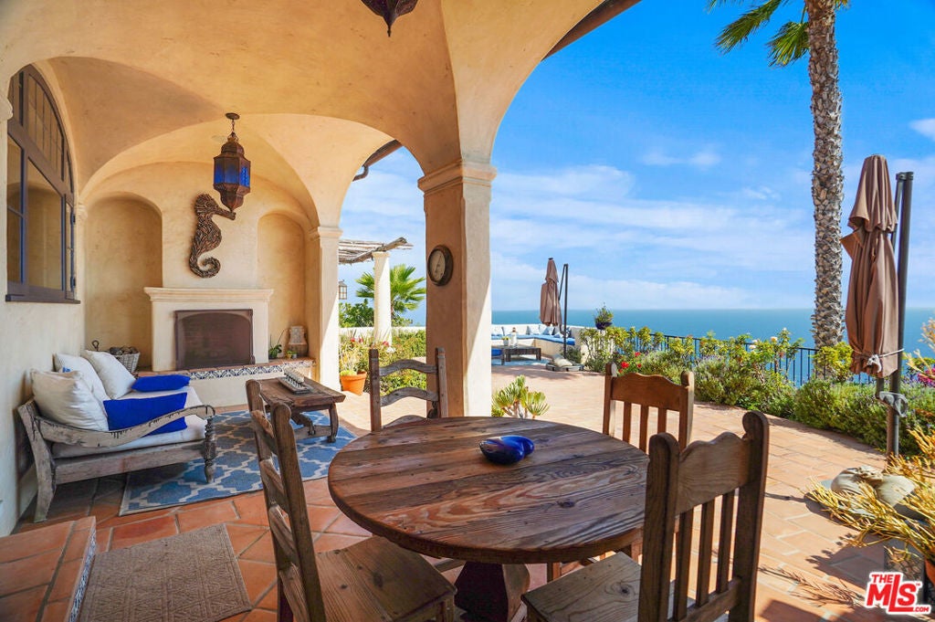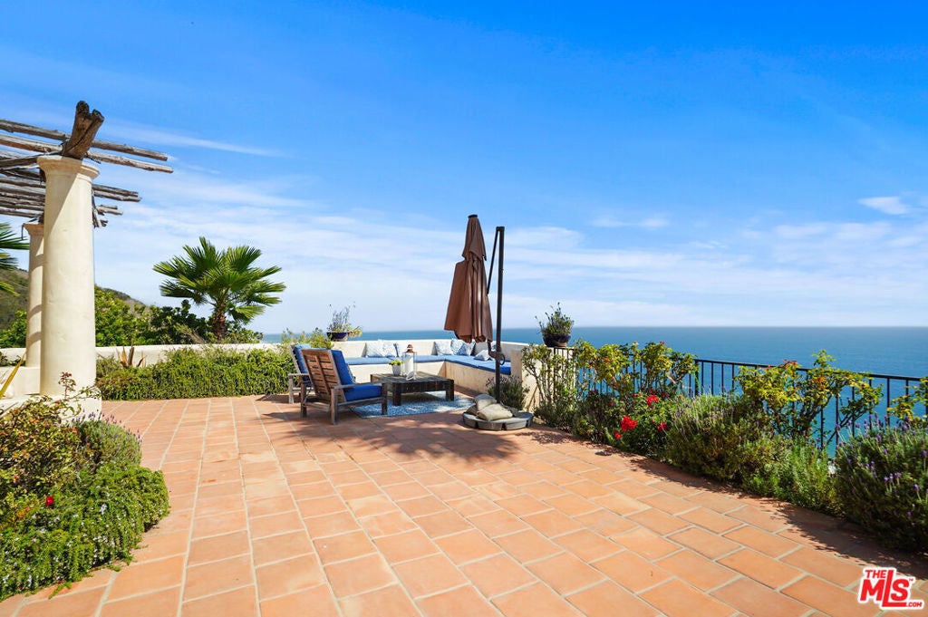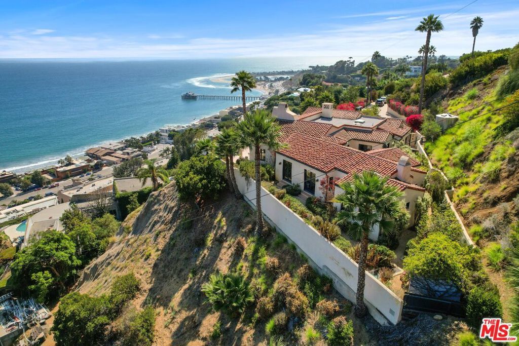 Enjoy total privacy and breathtaking sunrises and sunsets over the ocean in this one-of-a-kind central Malibu home overlooking Nobu, Billionaires Beach, and the Malibu Pier. Every inch of this stunning Mediterranean masterpiece is carefully designed and customized to provide sweeping ocean views from Palos Verdes to Surfrider Beach. Three Bedrooms, all en-suite, have an abundance of natural light, large custom walk-in closets, and magnificently appointed bathrooms with heated floors. Highlighting the interior are spacious living areas with gorgeous vaulted wood beamed ceilings, plaster walls, expansive custom windows which fully capture the coastline-views, three fireplaces, custom cabinetry, magnificent Malibu Tile, beautiful fixtures, library/office lined with books overlooking the interior courtyard, and culinary kitchen with antique Portuguese tile. The lush landscaped patio extends the length of the house and punctuates the unobstructed expansive coastline views. Other amenities include an outdoor shower, fruit trees, and plenty of guest parking. The property is on a picturesque private road just 300 feet from PCH and the beach. Close to Cross Creek and all the shops and restaurants, this meticulously maintained, distinguished residence combines privacy, exceptional quality, natural beauty, and an unbeatable location. This is the Malibu sanctuary you've been looking for.