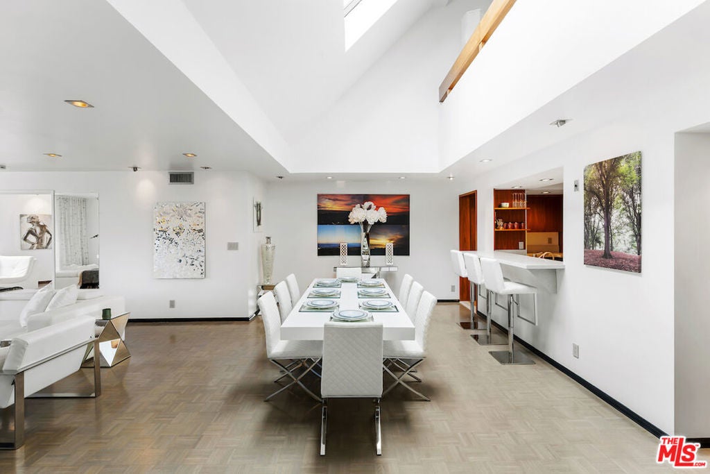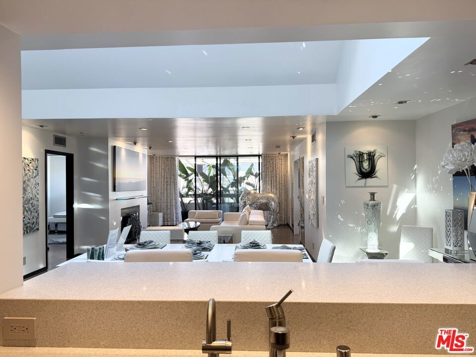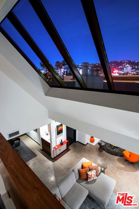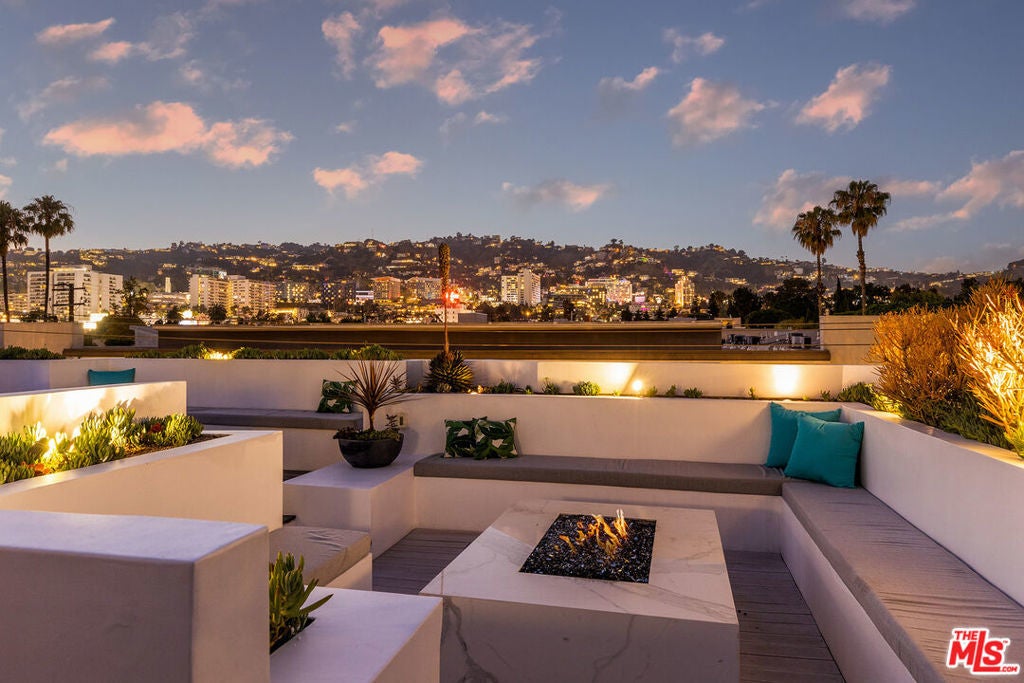 This expansive and luxurious 4 bedroom, 5 bath, 2,475 sq. ft. PENTHOUSE unit with 1,310 sq ft PRIVATE ROOFTOP DECK has been meticulously remodeled with the highest quality finishes. Located in prime, central West Hollywood, close to Melrose Place and numerous high end restaurants and boutique shopping. This unit is the largest floor plan in the building and the private rooftop lounge enjoys sweeping, unobstructed views of the Hollywood Hills and includes a sunken fire pit with abundant seating, outdoor kitchen with barbecue and bar seating, wine fridge, pet area with turf, space for a dining table, built-in planters with drought tolerant plants, uplighting and a drip line. The interior space features Fleetwood double-paned windows and sliding doors plus a vaulted ceiling with large skylight which fills the unit with light throughout the day. High-end Chef's kitchen with eat-in bar, Bosch and Thermador appliances, Heath Ceramics backsplash, Caesarstone countertops and ergonomic cork flooring. The primary bedroom suite has custom walnut closet with concealed laundry leading to gorgeously tiled primary bath featuring Ann Sacks tilework, soaking tub, shower and dual vanity. Additional fixtures include Grohe faucets, George Nelson lighting, 50+ dimmable recessed lighting. Upper bedroom loft features spectacular Hollywood Hills views. The building has wide and updated air conditioned hallways, large hot tub, gym, and 2 side-by-side parking spaces for this unit plus guest parking.