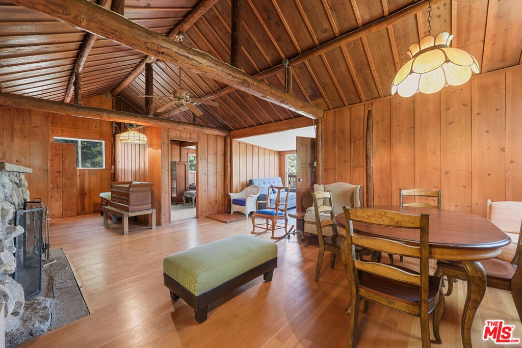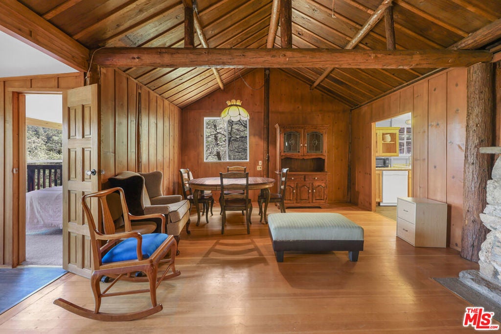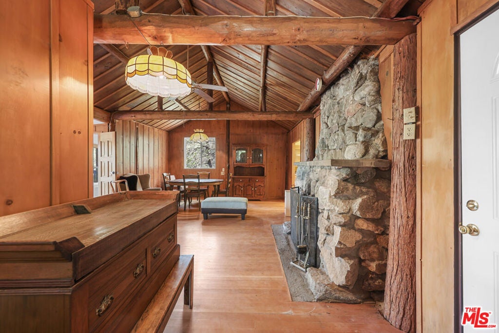 Mountain cabin on corner lot in Cedarpines Park! Large deck on two sides with a great views of the forest, canyon and great skyline. Plenty of parking, including RVs and large trailers or 5th wheels. Fully fenced area to right of the driveway. Rare level entry with no steps. Beam ceilings and plenty of wood inside with a wonderful rock fireplace. Original hardwood flooring in living room. Mountain wood cabin with modern comforts. Claw-foot tub in bathroom. Lots of original building materials in this unique cabin. Come, bring your personal touch and make this a special place in the mountains.