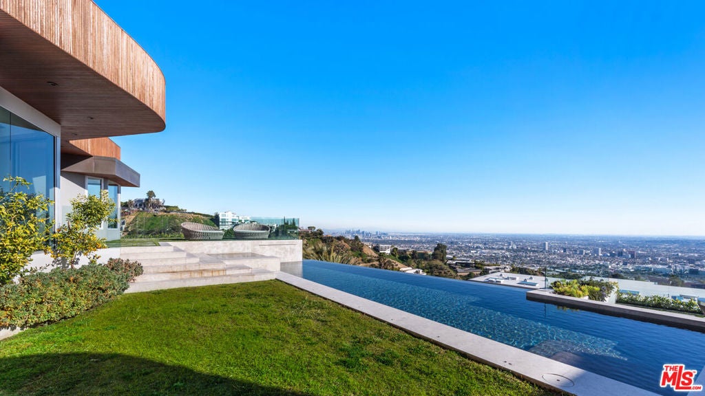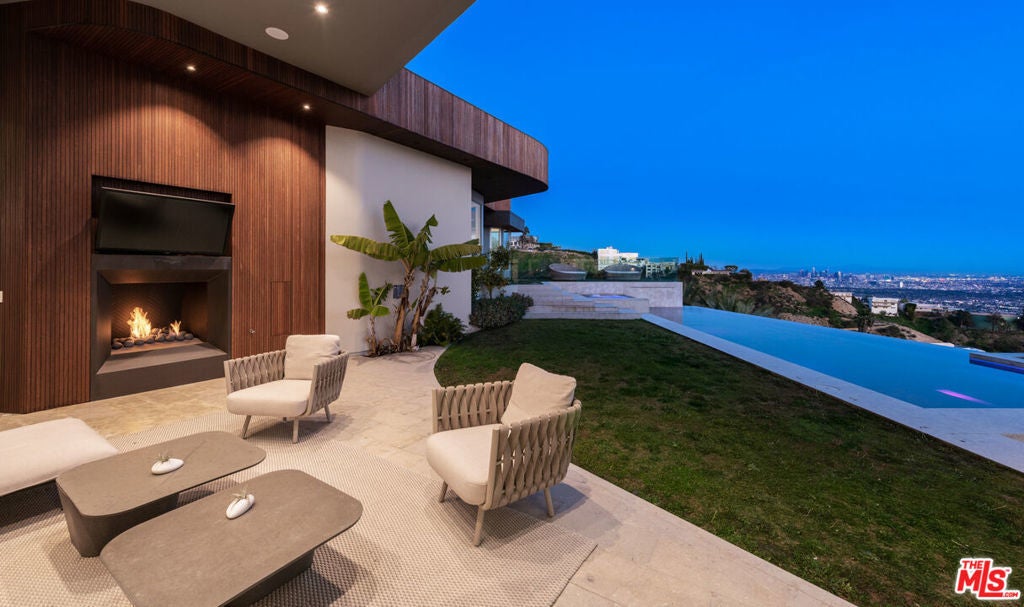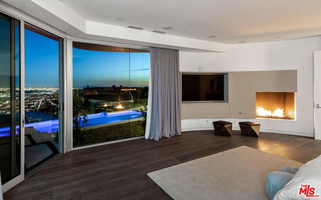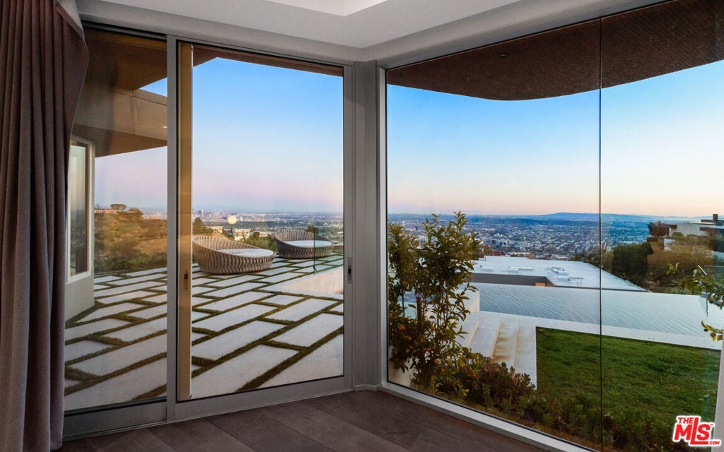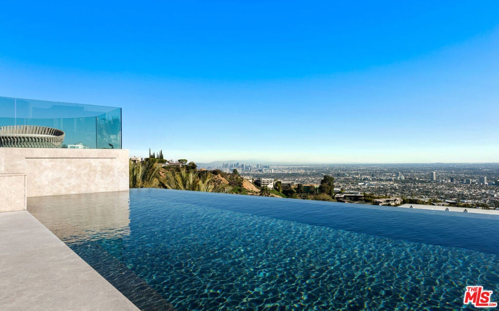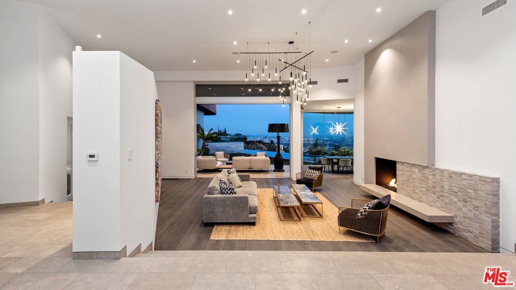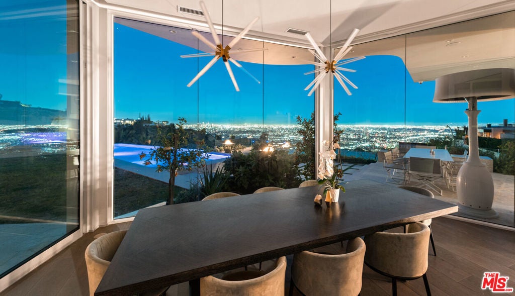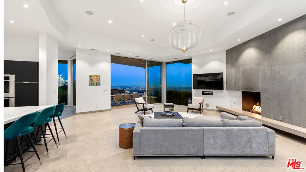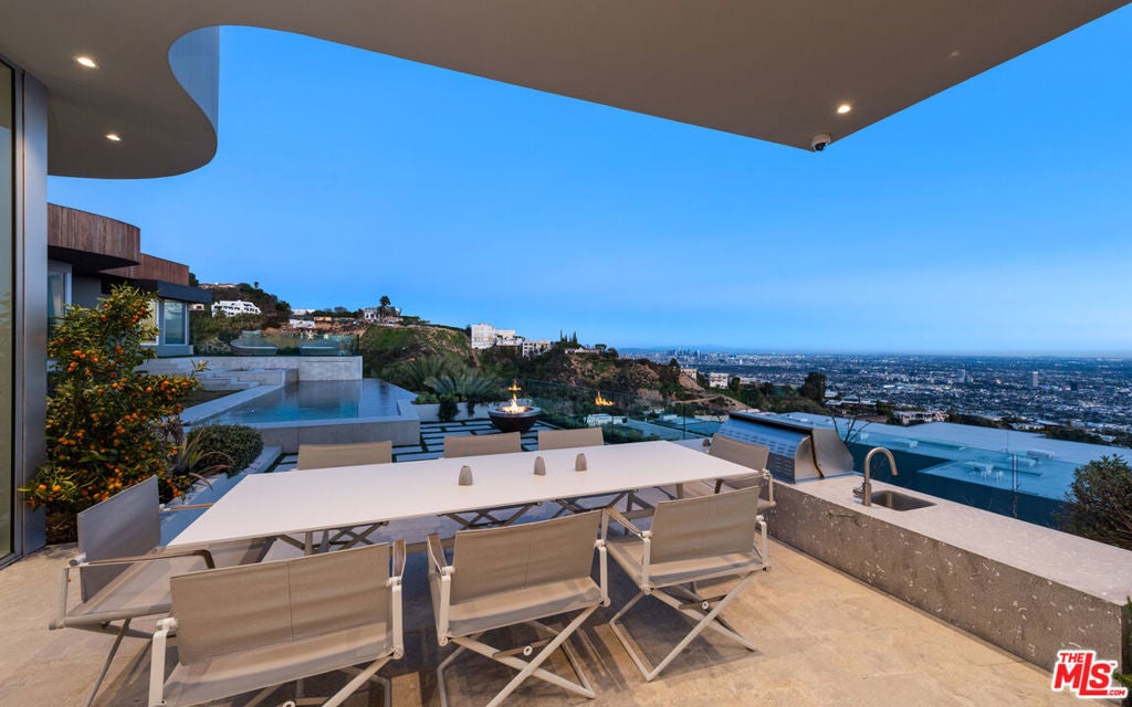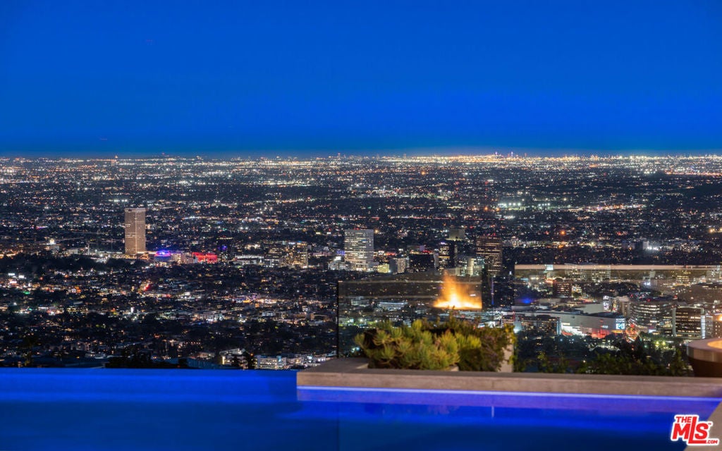Panoramic jetliner views are the stunning backdrop to every moment you spend atop the Bird Street neighborhood in this magnificent modern estate. A grand front door is your entre into the expansive open-plan living areas with high ceilings, floor to ceiling windows, and retractable glass doors that provide you unparalleled indoor-outdoor for entertaining or unwinding, alone or with family and friends. A spacious chef's kitchen features top of the line appliances and shares the gorgeous city views. The spectacular outdoor deck includes a covered seating area with fireplace, a covered dining area adjacent to indoor dining, multiple sun-washed lounges, an infinity pool with spa, a fire pit, BBQ, and wet bar. The expansive primary suite is a perfect retreat for your intimate moments, relaxation and recuperation with fireplace, large walk-in closet, shower, and soaking tub with a view. Sumptuous guest rooms are available for your family and friends private use. A screening room and office complete the luxurious appointments of this smartly decorated 5,700 sq ft stunner located minutes from the Sunset Strip.