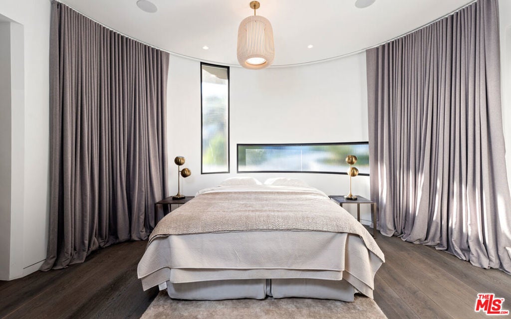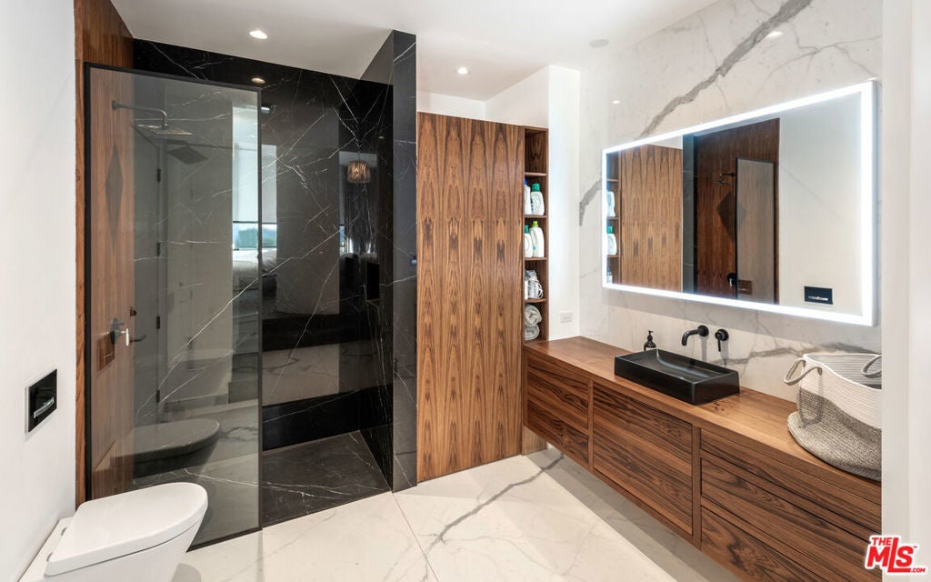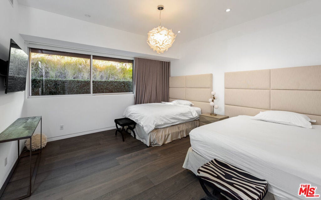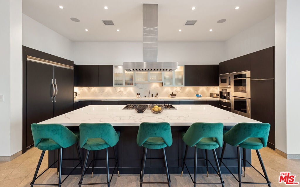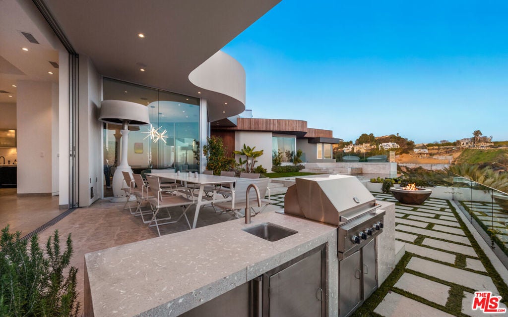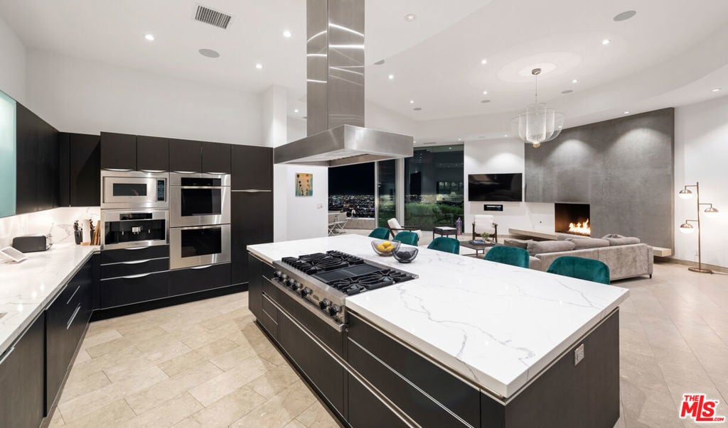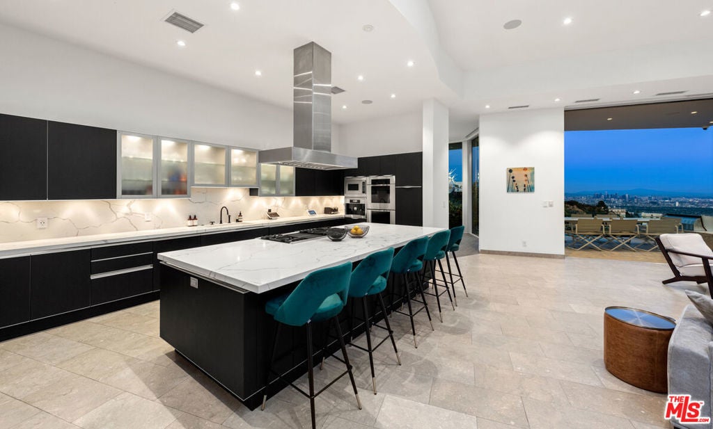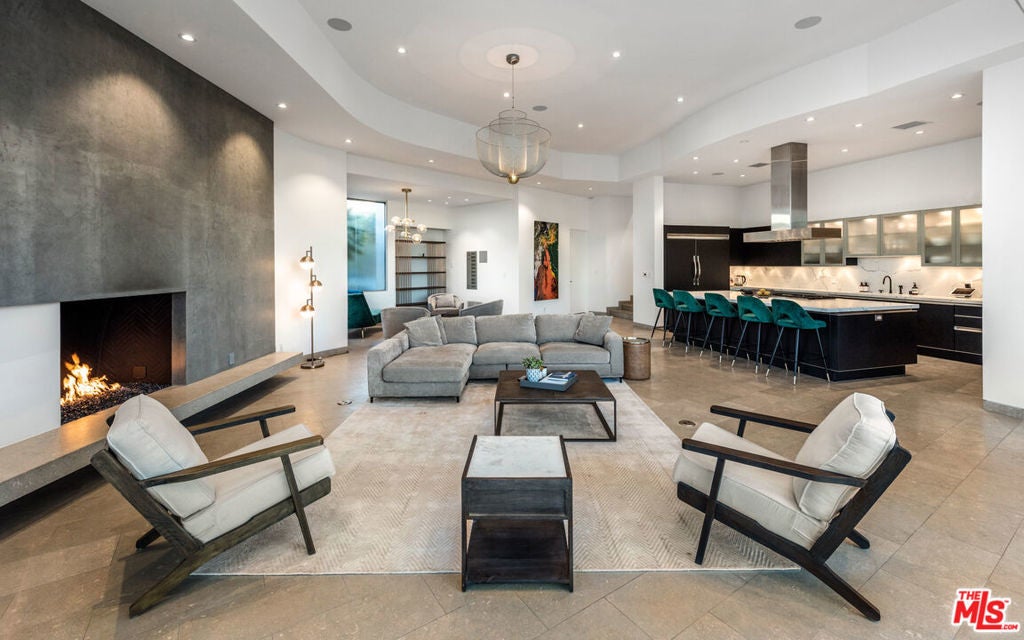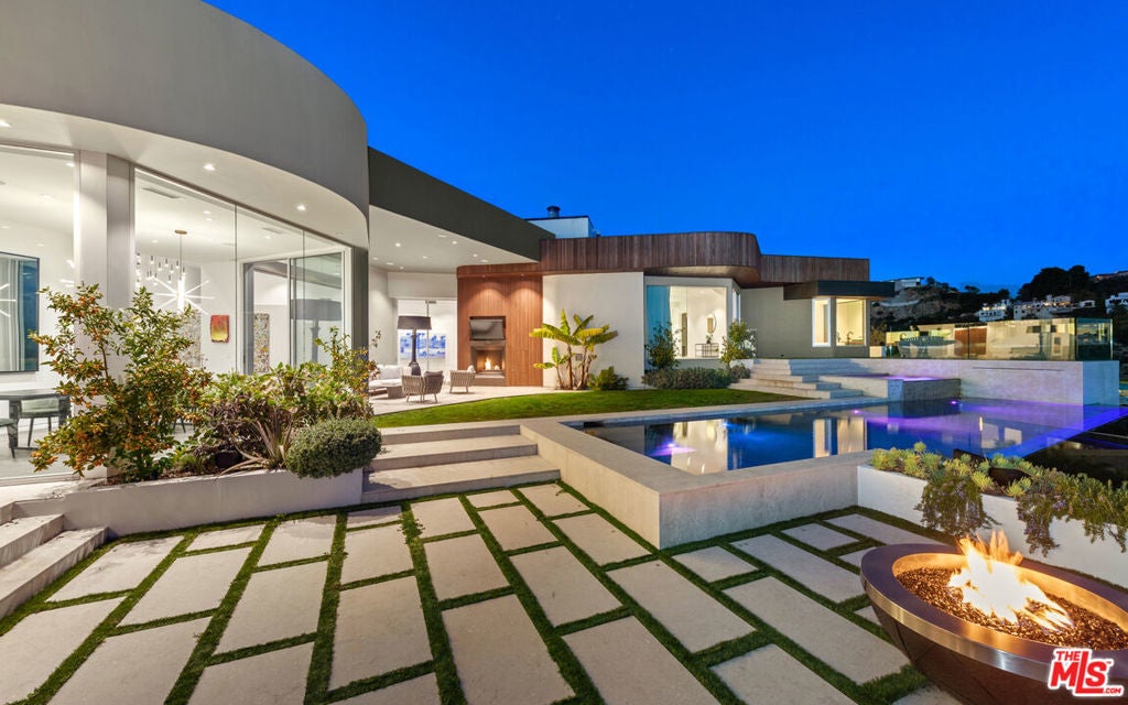 Panoramic jetliner views are the stunning backdrop to every moment you spend atop the Bird Street neighborhood in this magnificent modern estate. A grand front door is your entre into the expansive open-plan living areas with high ceilings, floor to ceiling windows, and retractable glass doors that provide you unparalleled indoor-outdoor for entertaining or unwinding, alone or with family and friends. A spacious chef's kitchen features top of the line appliances and shares the gorgeous city views. The spectacular outdoor deck includes a covered seating area with fireplace, a covered dining area adjacent to indoor dining, multiple sun-washed lounges, an infinity pool with spa, a fire pit, BBQ, and wet bar. The expansive primary suite is a perfect retreat for your intimate moments, relaxation and recuperation with fireplace, large walk-in closet, shower, and soaking tub with a view. Sumptuous guest rooms are available for your family and friends private use. A screening room and office complete the luxurious appointments of this smartly decorated 5,700 sq ft stunner located minutes from the Sunset Strip.