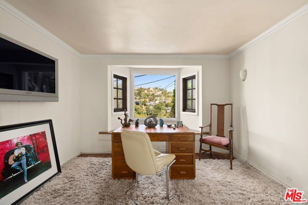 Tucked into the whimsical hills of Beachwood Canyon, 2464 Hollyridge Drive is more than a home -- it's a muse. This 1,830-square-foot (recently measured and verified) bohemian sanctuary invites artists, musicians, and free spirits to live among the legends in one of LA's most storied and cinematic enclaves. Bathed in golden California light, the interiors offer a blend of vintage charm and curated modern touches perfectly suited for quiet creation, late-night jam sessions, or spontaneous salon-style gatherings. Original architectural details add character and warmth, while the open flow invites inspiration to move freely from one space to the next. Two enormous bedrooms -- with canyon views -- and a media room/music studio/office that can serve as a guest room, as well as three thoughtfully updated bathrooms feel like pages from a European novella, each with its own story to tell. The open kitchen, framed by serene canyon vistas and featuring a generous walk-in pantry, invites connection and conversation. Step outside and step into poetry. Multi-level decksincluding a stunning rooftop unfold to reveal sweeping views of untamed canyons, iconic hillsides, and the glittering DTLA skyline. It's an exquisite, peaceful panorama that feels like your own private escape. Sip your coffee with the sunrise, paint with the sunset, or simply breathe in the beauty that surrounds you. Just steps from Griffith Park's winding trails and a short walk to the beloved Beachwood Cafe, Franklin Village, and the Hollywood Farmers Market, this is a location that feeds the soul as much as the senses. 2464 Hollyridge Drive isn't just a residence -- it's a refuge for the imaginative. A place where muses dwell, stories begin, and the spirit of old Hollywood hums quietly in the air. Come home to where inspiration lives.