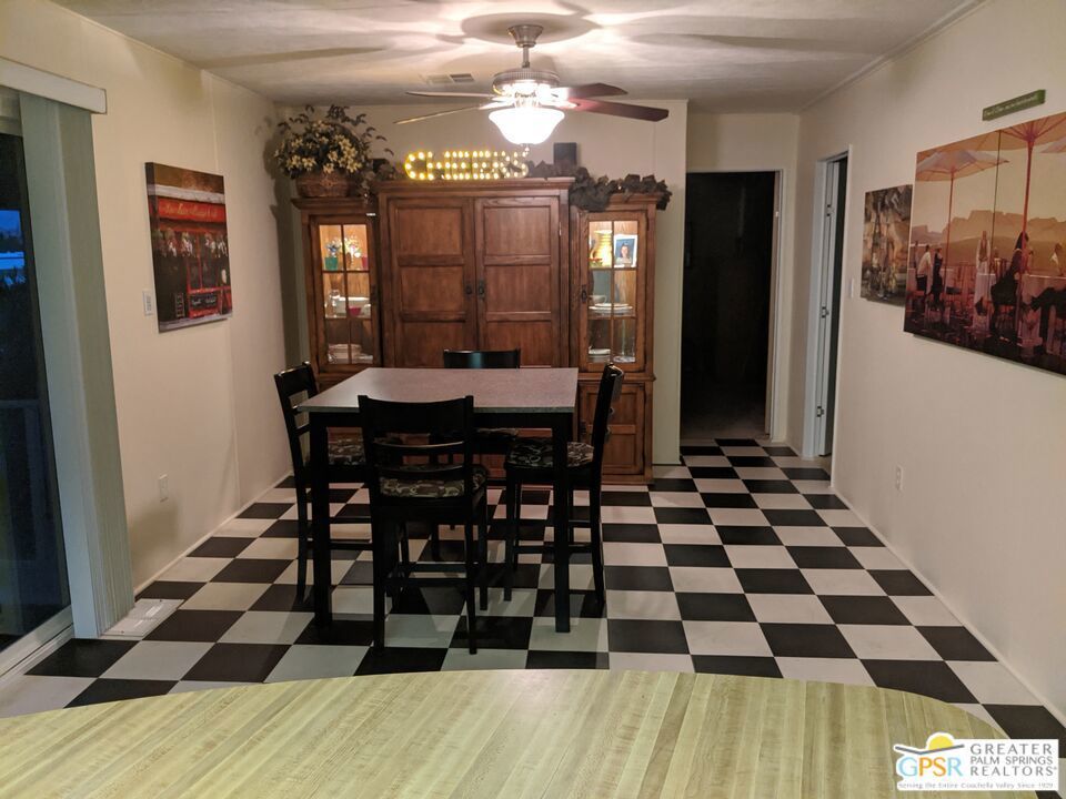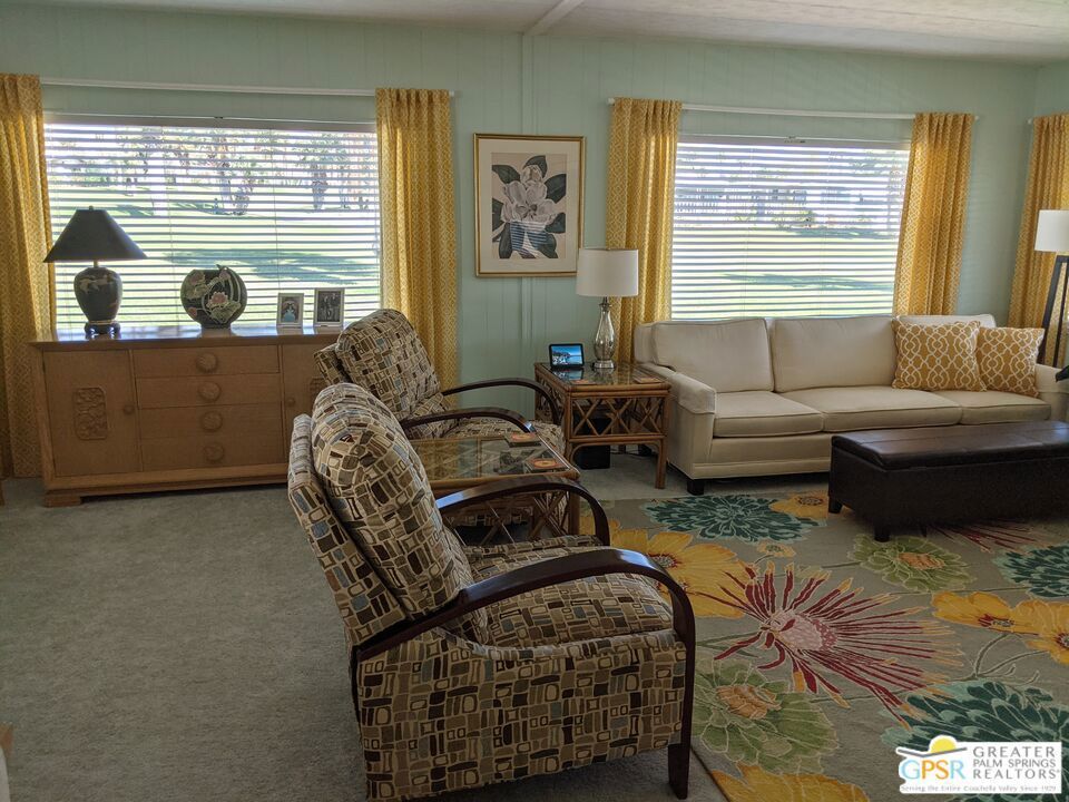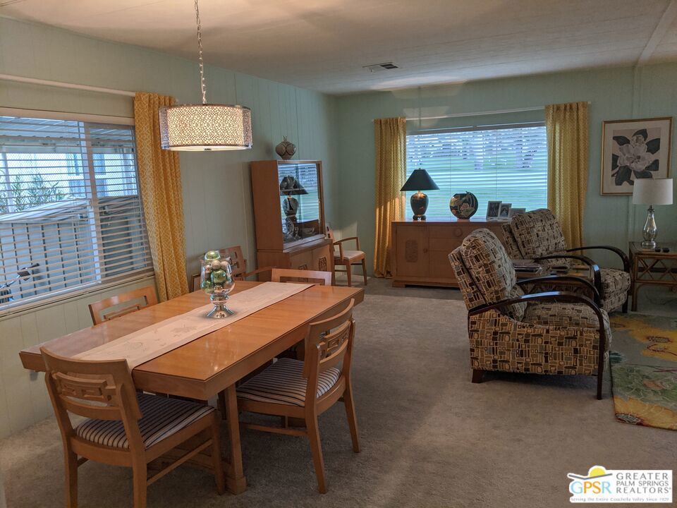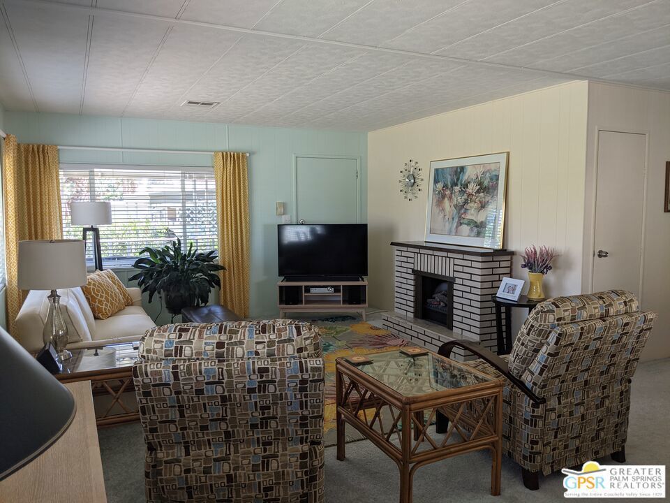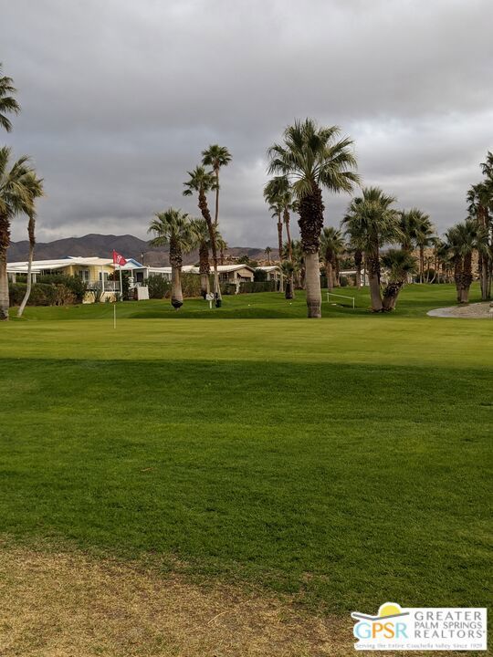 Welcome to Hidden Springs Country Club, an active 55+ community in Desert Hot Springs. This stylish 2 bed/2 bath home is situated on the 8th hole of the well maintained executive golf course, and boasts picturesque views of the course and surrounding hills. Enjoy the scenery from the patio fire pit or from your comfy living room which includes a fireplace for cooler desert nights. Off the living room is a spacious dining area with built in hutch. The well appointed kitchen has a pantry, newer refrigerator, and a breakfast bar for casual dining or prep space. An additional family room from the kitchen has sliding doors that access the large updated Trex deck, perfect for entertaining friends and family. There's yet an additional covered patio that is perfect for curling up with a good book, or enjoying your morning coffee. The primary bedroom has awesome views of Mt. San Jacinto and Mt. Gorgonio, and the attached bath has an updated shower, duel vanities, flooring, and plumbing. Other updates throughout the home include; AC and furnace system, Jeld-Wen duel pane windows, and water heater. Outside, beautiful updated vinyl siding and skirting, as well as newer gravel complete the picture. Community amenities include a pool and 2 spas, tennis and pickleball courts, large clubhouse and banquet room, gym, sauna, and shuffle board courts. There is even a dog park for your four-legged family members. This community, and especially this house, has everything you need for resort living at it's finest.