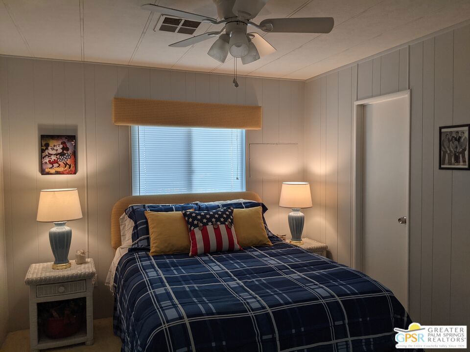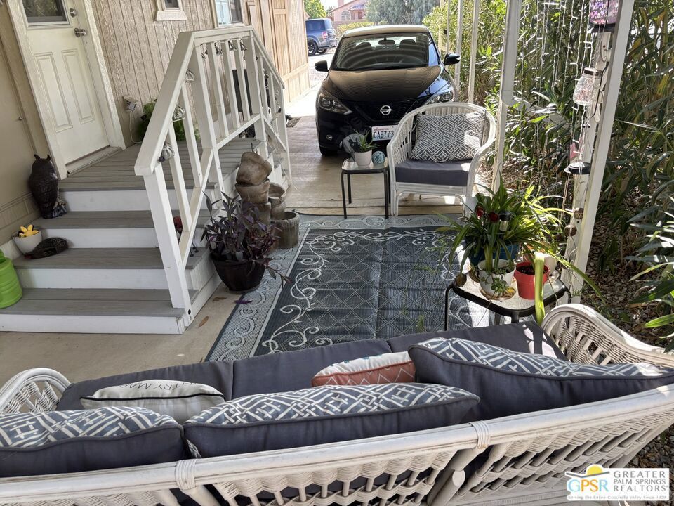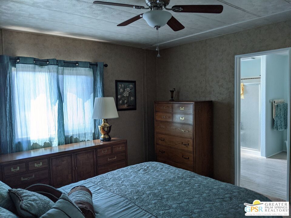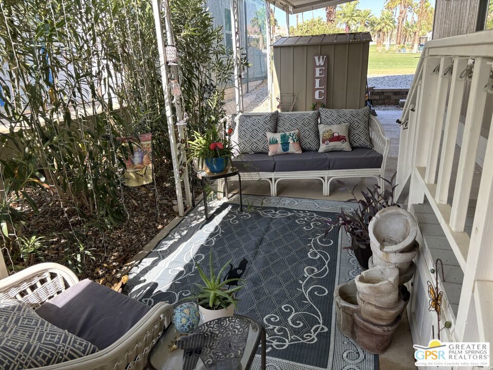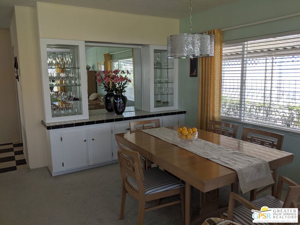 Welcome to Hidden Springs Country Club, an active 55+ community in Desert Hot Springs. This stylish 2 bed/2 bath home is situated on the 8th hole of the well maintained executive golf course, and boasts picturesque views of the course and surrounding hills. Enjoy the scenery from the patio fire pit or from your comfy living room which includes a fireplace for cooler desert nights. Off the living room is a spacious dining area with built in hutch. The well appointed kitchen has a pantry, newer refrigerator, and a breakfast bar for casual dining or prep space. An additional family room from the kitchen has sliding doors that access the large updated Trex deck, perfect for entertaining friends and family. There's yet an additional covered patio that is perfect for curling up with a good book, or enjoying your morning coffee. The primary bedroom has awesome views of Mt. San Jacinto and Mt. Gorgonio, and the attached bath has an updated shower, duel vanities, flooring, and plumbing. Other updates throughout the home include; AC and furnace system, Jeld-Wen duel pane windows, and water heater. Outside, beautiful updated vinyl siding and skirting, as well as newer gravel complete the picture. Community amenities include a pool and 2 spas, tennis and pickleball courts, large clubhouse and banquet room, gym, sauna, and shuffle board courts. There is even a dog park for your four-legged family members. This community, and especially this house, has everything you need for resort living at it's finest.