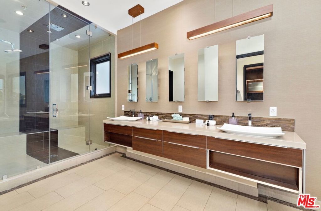 Sophisticated Bel Air modern villa with stunning endless views from every room. Tech savvy smart home system by Control 4 automates this awe inspiring property. Pocketing walls of glass reveal an endless saltwater infinity pool with extraordinary view verandas, dining loggia and entertaining deck. Massive living room with art gallery converts into a home theater upon command. Dining room features wraparound wine racks. Eat-in Chef's Kitchen features Miele and Wolfe appliances, Ceasar- stone counters, huge walk-in pantry and a TV lounging area with breakfast nook. A sweeping staircase leads to a five star master with a massive walk-in closet, spa-like master bath and private outdoor lounge with fire-pit. Three other en-suite bedrooms are also upstairs