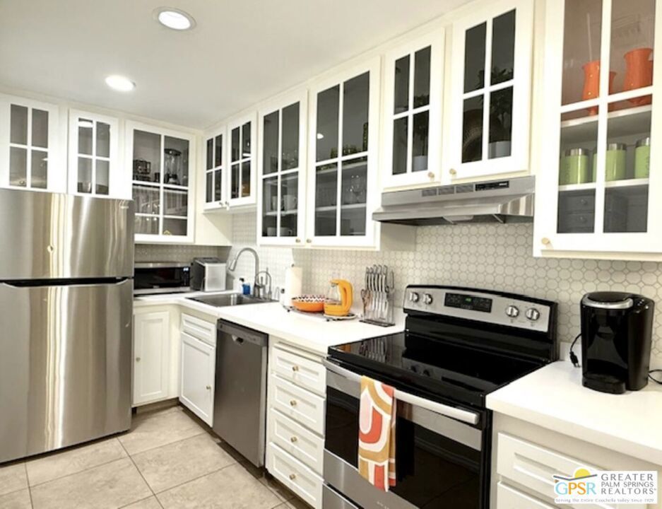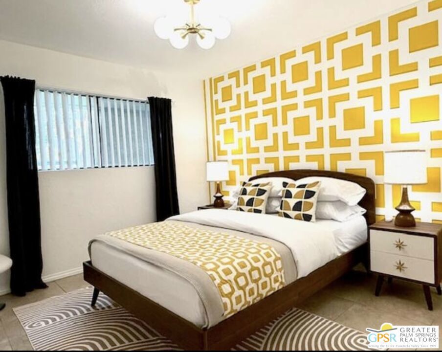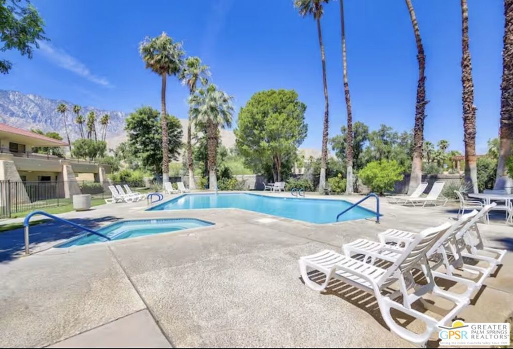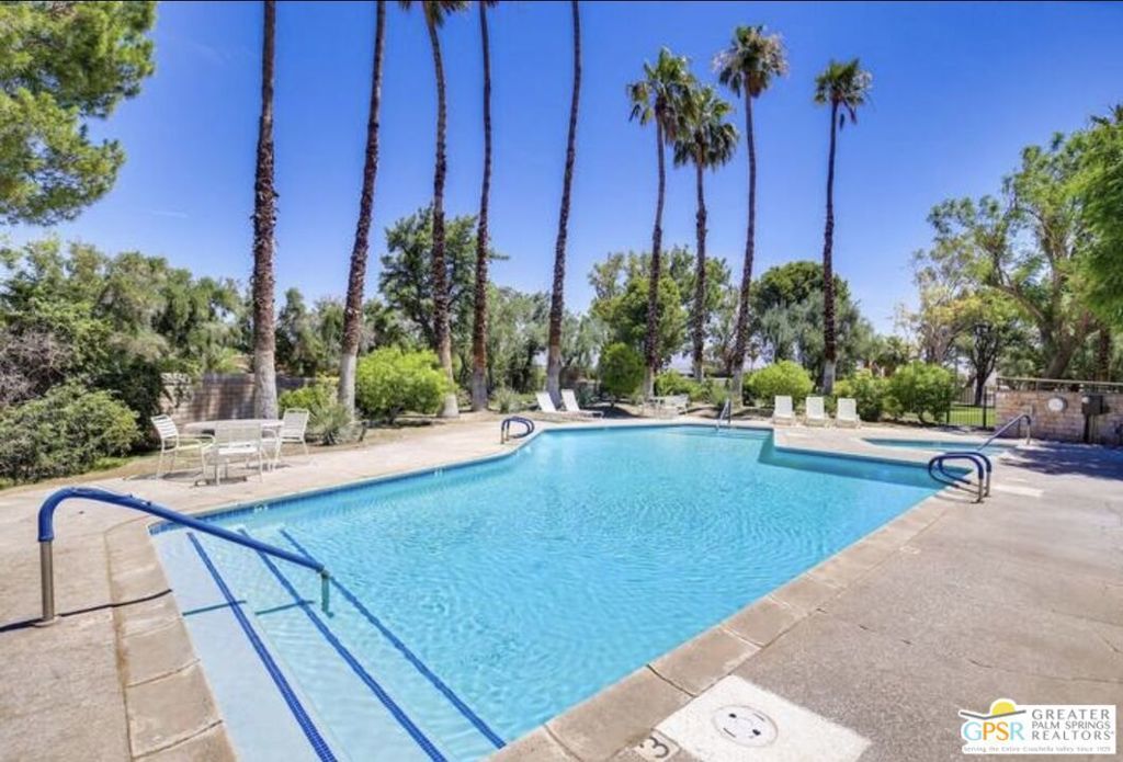 Stylish and sophisticated remodeled first floor unit at Palm Springs Villas 2. This gorgeous unit has been a very successful seasonal rental and is being offered turnkey furnished. Newer kitchen and bath. This unit is super clean and move-in ready! Located in the very back of the complex near the pool. Palm Springs Villas is gated community that offers many amenities including pools, spas, tennis courts, picnic and BBQ areas and acres of manicured grounds. This one is not to be missed!