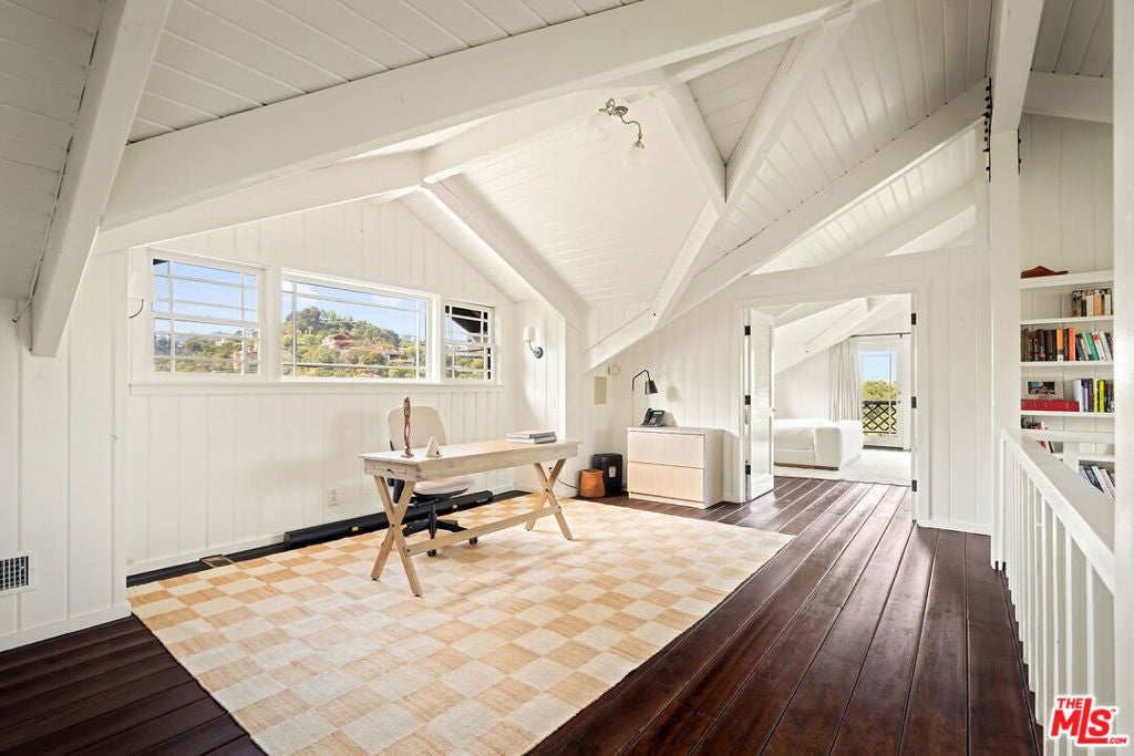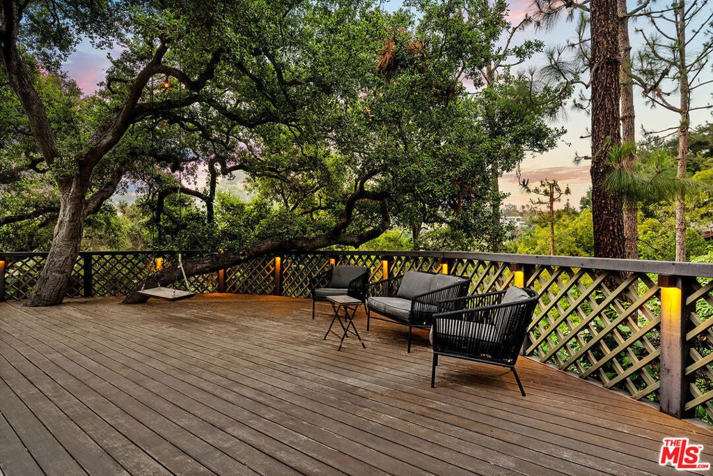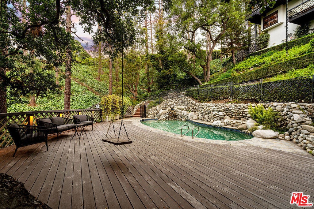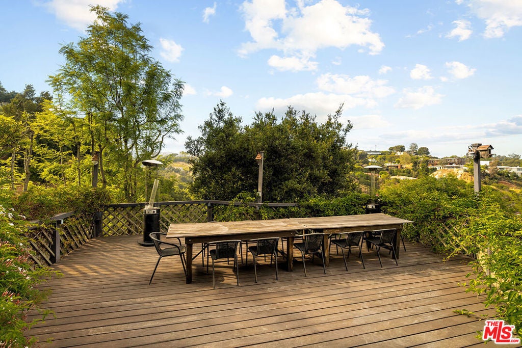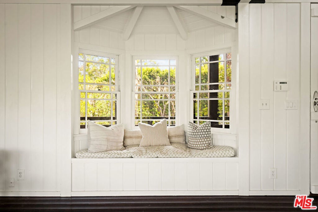 Set on an 18,300 square foot lot between the Riviera and Sullivan Canyon, this 5,345 square foot post-and-beam farmhouse offers privacy, character, and timeless California charm. Tucked behind private gates and surrounded by mature oak trees, the property exudes tranquility with grassy meadows, meandering nature paths, and sweeping canyon views. Inside, five bedrooms and six bathrooms are thoughtfully arranged across a floor plan that blends classic farmhouse design with modern functionality. The gourmet kitchen features a center island and walk-in pantry, flowing into a cozy breakfast nook with a fireplace. Relaxed living areas and the dining room are framed by multiple sets of French doors that open to verandas and patios, creating a seamless indoor-outdoor connection. The primary suite spans an entire level and includes a spacious walk-in closet, spa-like bath with dry sauna, study, and private balcony. Additional highlights include a secondary family room with kitchenette, a dedicated laundry room, and a large storage or archive room with separate access. In the backyard, a pool and spa are nestled among oak trees and lush landscaping, while a swing set, sun deck, and multiple lounge areas offer ample space for entertaining or unwinding. Blending natural beauty with thoughtful design, this private retreat embodies the best of California living in one of Los Angeles' most coveted neighborhoods.