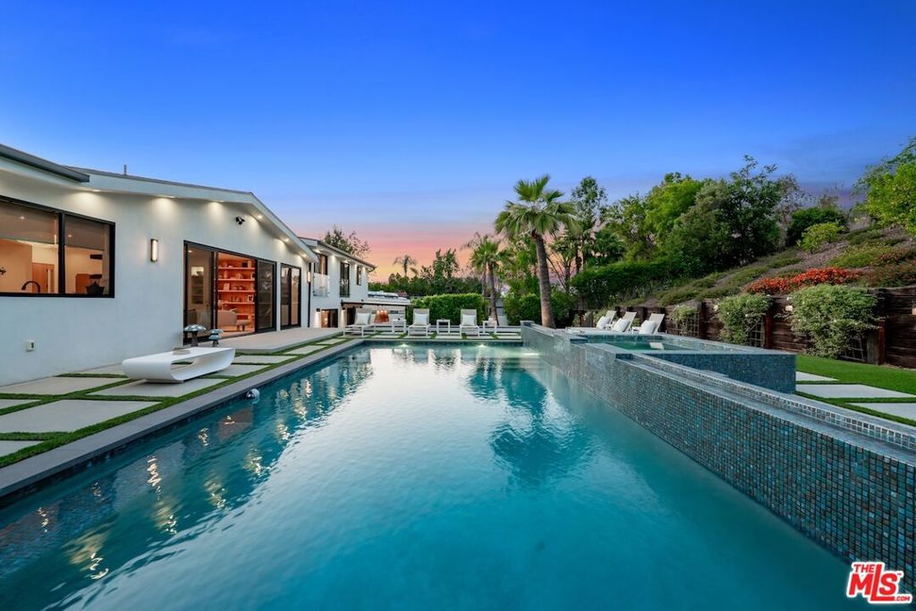 Welcome to 20226 Lorenzana Drive, a privately gated estate in the coveted Vista De Oro neighborhood of Woodland Hills. This 5-bedroom, 5-bathroom residence spans over 4,300 square feet of elevated living space on a lush 17,800+ square foot lot, offering privacy, sophistication, and seamless indoor-outdoor flow. Step through the dramatic steel and glass pivot door into a light-filled interior marked by soaring beamed ceilings, wide-plank wood floors, and custom finishes throughout. The open-concept floor plan connects spacious living and dining areas to a gourmet chef's kitchen featuring a large center island, sleek cabinetry, and top-tier appliancesperfect for both daily living and upscale entertaining. The expansive primary suite is a serene retreat, complete with a spa-style bath, oversized shower, soaking tub, and custom walk-in closet. All additional bedrooms are generously sized with en-suite access . Outdoors, enjoy a true resort-style backyard with a sparkling pool and spa, surrounded by mature landscaping and multiple areas for lounging and dining. Located south of Ventura Boulevard, this exceptional home is moments from top-rated schools, high-end shopping, and fine dining. 20226 Lorenzana Drive is the ultimate blend of comfort, style, and California luxury living
