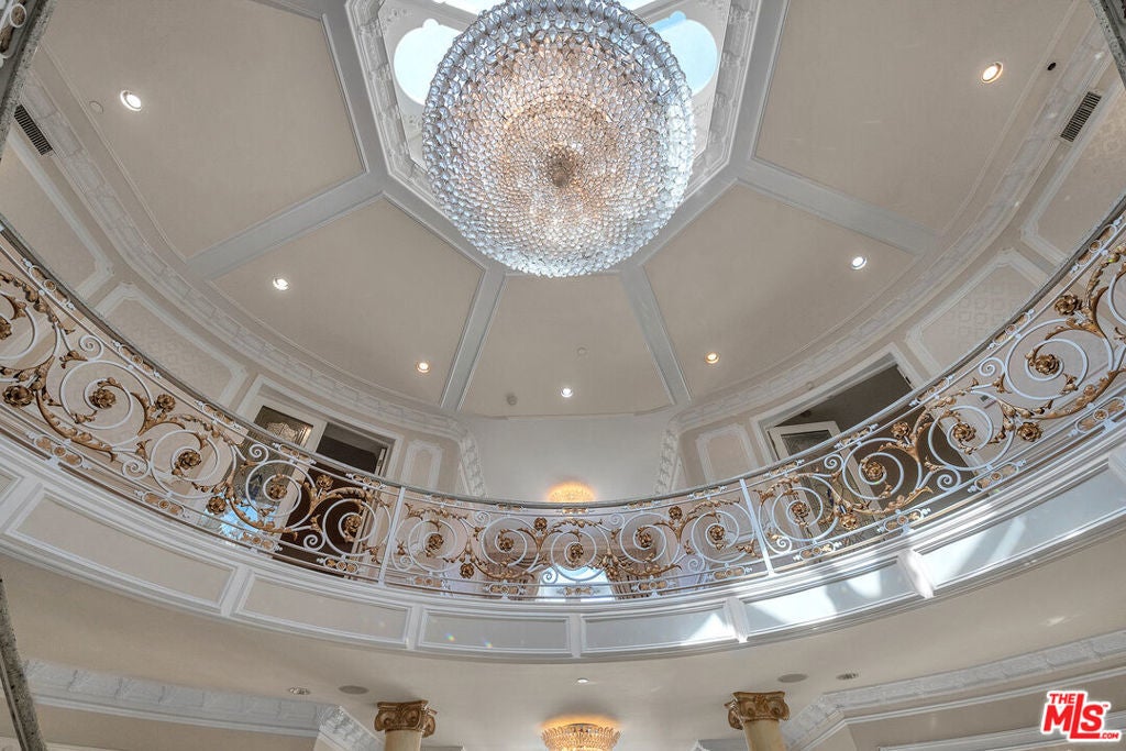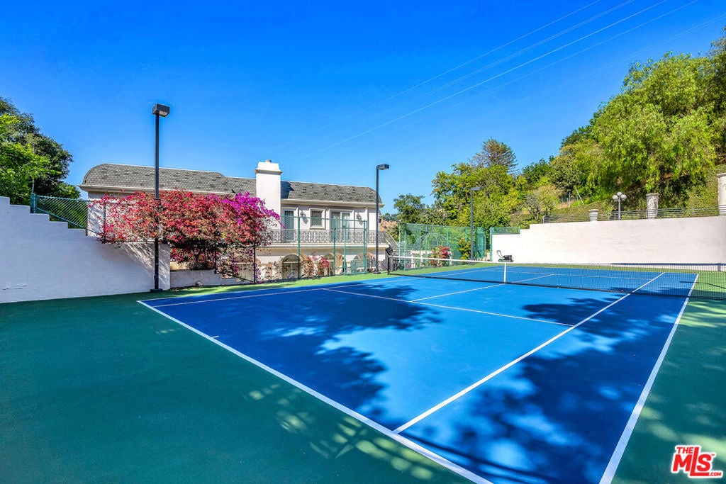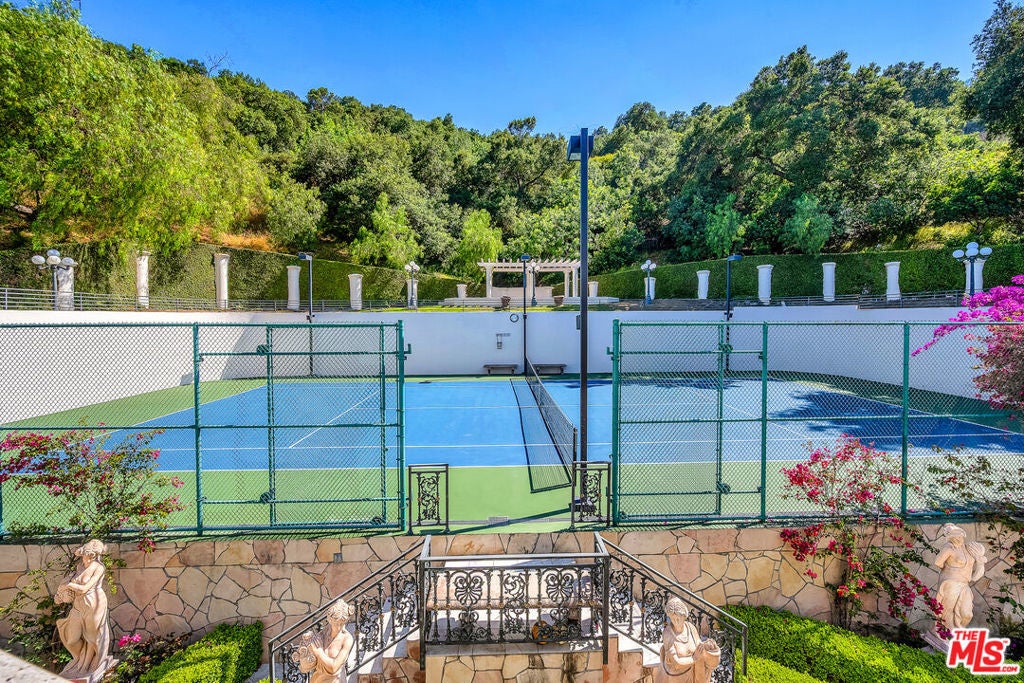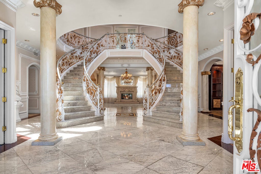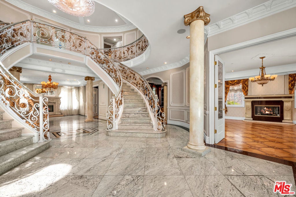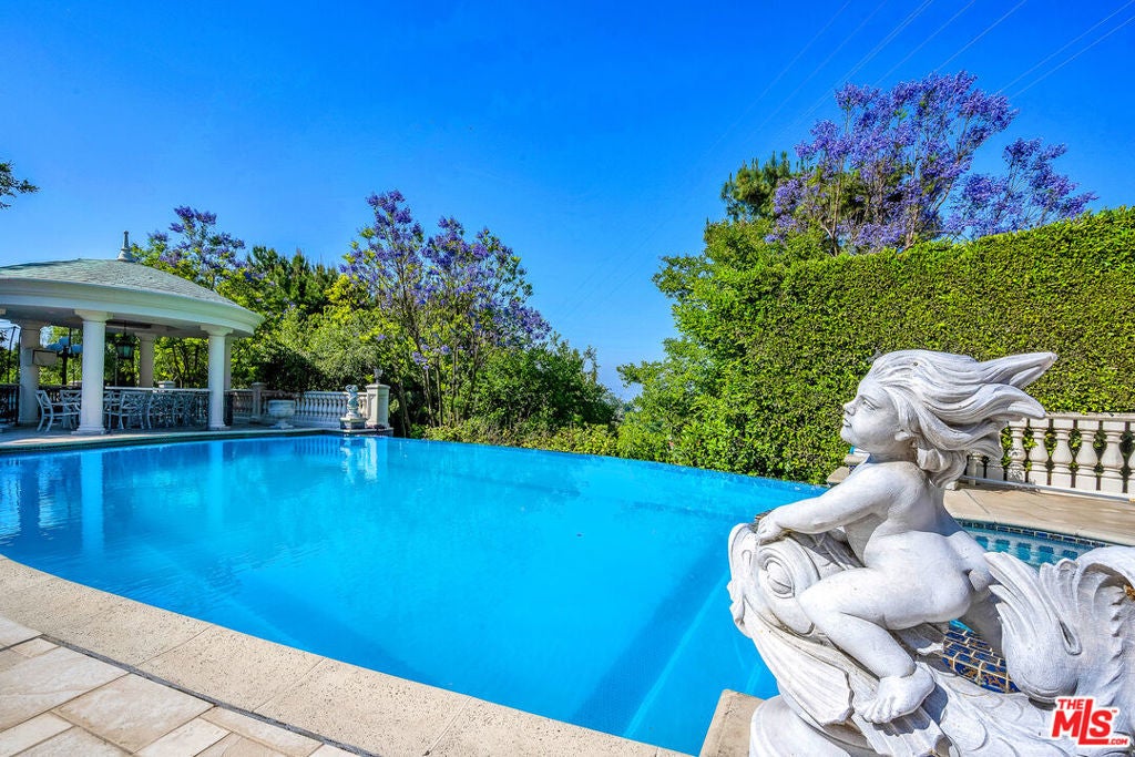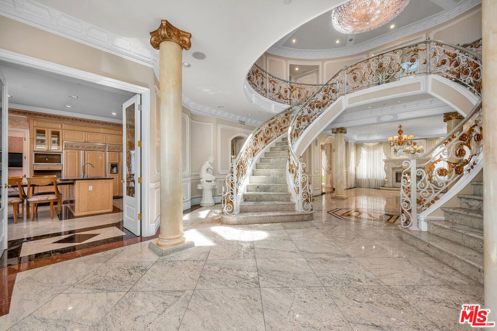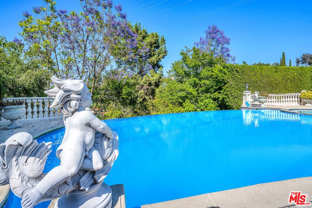 Gated European Elegance with Breathtaking Canyon Views. Perched on a private 2.5-acre estate, this gated European-inspired residence offers unparalleled luxury and privacy, complete with sweeping canyon vistas and museum-quality finishes throughout. Custom wrought-iron doors open to a dramatic entryway featuring a grand double marble staircase that sets the tone for the elegance within. This expansive estate features all the refined spaces expected of a premier property: a Formal Dining Room, stately Library, elegant Living Room, Chef's Kitchen, Games Room, Home Theatre, and Wine Cellar. A separate Guesthouse provides additional comfort with two bedrooms ideal for hosting extended family or guests in style. Car enthusiasts will appreciate the three-car garage and generous driveway with ample room for additional vehicles. Outdoor living is equally impressive with a spectacular Infinity Pool, private Tennis Court, Sauna, and a fully equipped Outdoor Kitchen and Pool House perfect for entertaining on warm summer evenings. This is more than a home, it's a lifestyle of luxury, privacy, and timeless sophistication.