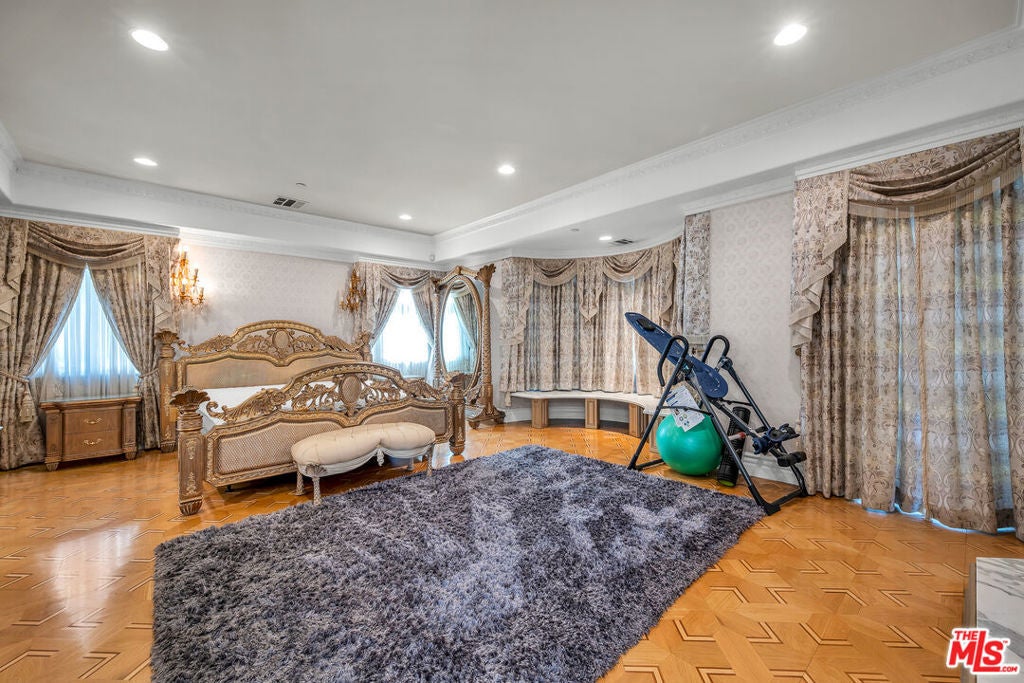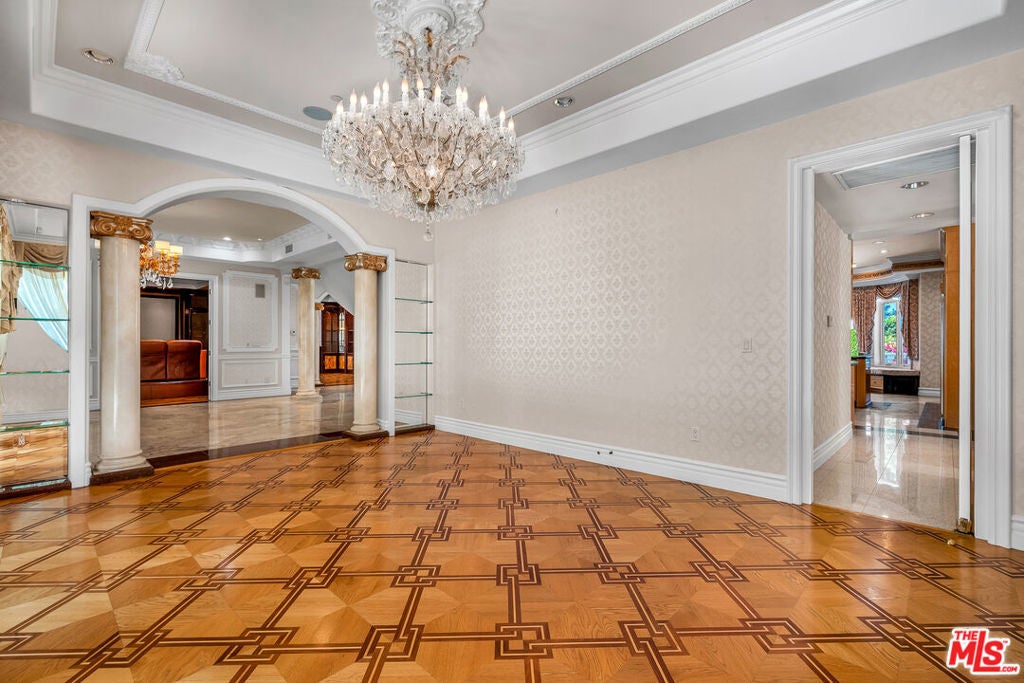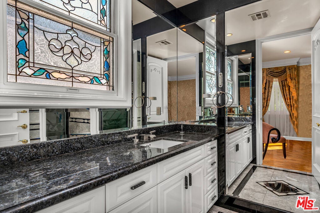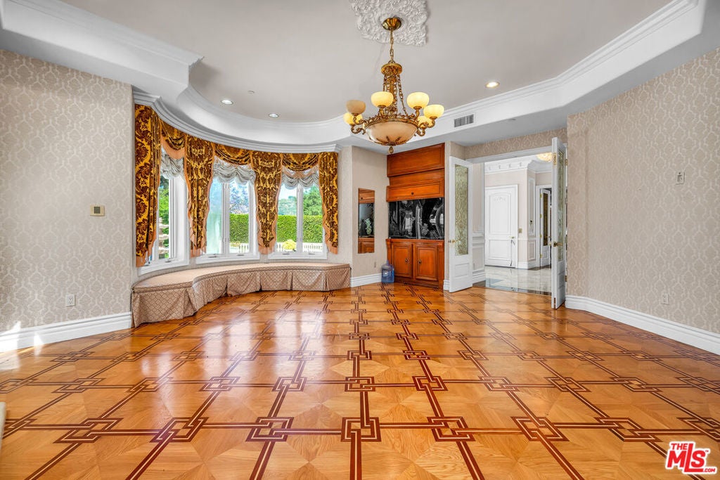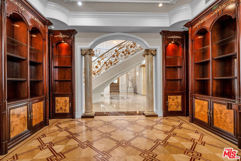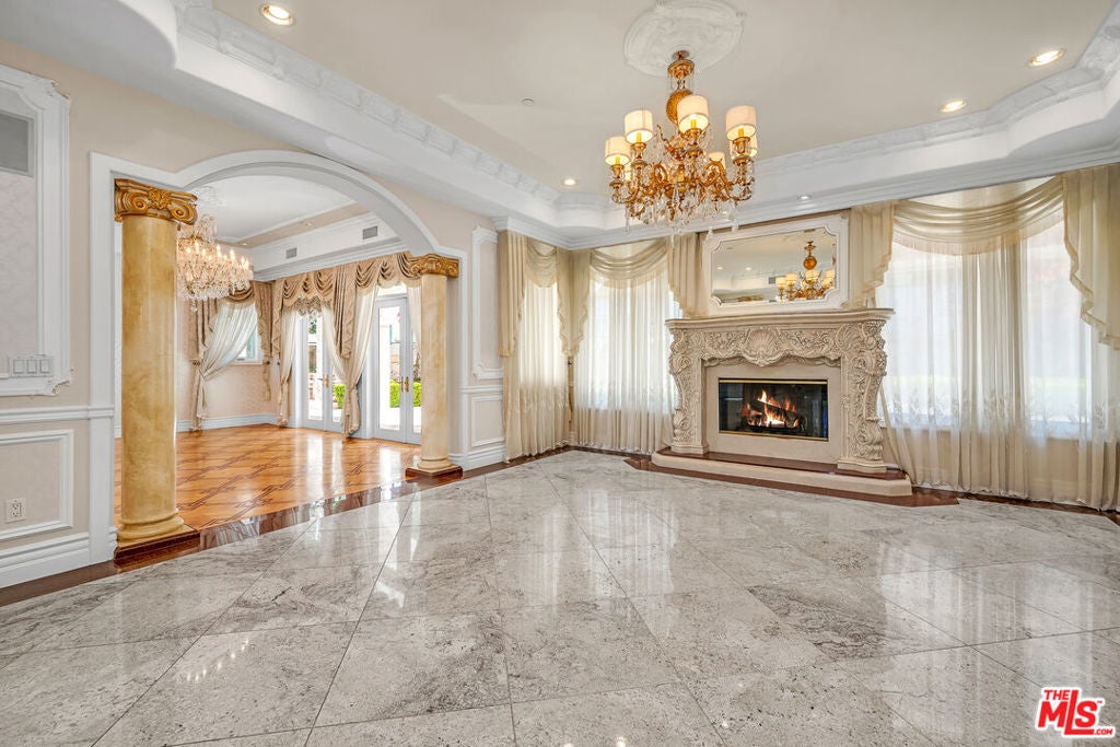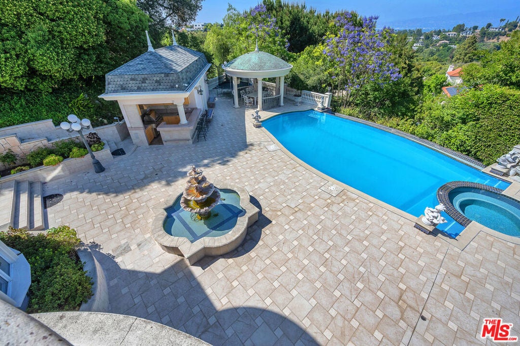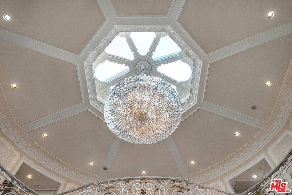 Gated European Elegance with Breathtaking Canyon Views. Perched on a private 2.5-acre estate, this gated European-inspired residence offers unparalleled luxury and privacy, complete with sweeping canyon vistas and museum-quality finishes throughout. Custom wrought-iron doors open to a dramatic entryway featuring a grand double marble staircase that sets the tone for the elegance within. This expansive estate features all the refined spaces expected of a premier property: a Formal Dining Room, stately Library, elegant Living Room, Chef's Kitchen, Games Room, Home Theatre, and Wine Cellar. A separate Guesthouse provides additional comfort with two bedrooms ideal for hosting extended family or guests in style. Car enthusiasts will appreciate the three-car garage and generous driveway with ample room for additional vehicles. Outdoor living is equally impressive with a spectacular Infinity Pool, private Tennis Court, Sauna, and a fully equipped Outdoor Kitchen and Pool House perfect for entertaining on warm summer evenings. This is more than a home, it's a lifestyle of luxury, privacy, and timeless sophistication.