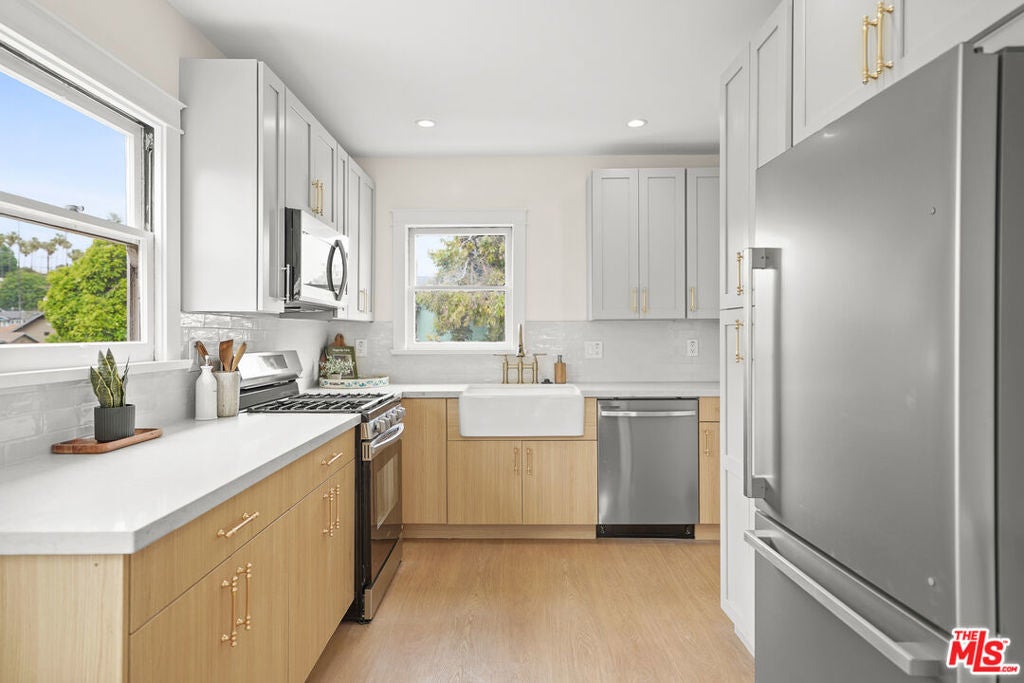 Step into the hottest slice of Highland Park. A dreamy, fully remodeled and detached (no shared walls) 2-bedroom, 1-bathroom single-level unit within a stylish Tenants in Common community. This charming residence beautifully blends vintage charisma with chic, modern updates. Everything here is new: sparkling recessed lighting, sleek plumbing, HVAC mini split systems, a designer-inspired kitchen, and stunning bathrooms adorned with contemporary finishes. The gourmet kitchen includes stylish cabinetry, premium appliances, and abundant natural light, flowing effortlessly into the dining space and cozy living room. But the location steals the show, right off buzzing Figueroa Street, your future home is steps away from Highland Park's most beloved hotspots. Stroll over to Tierra Mia, Civil Coffee or Kindness & Mischief for your daily brew, indulge in artisanal pastries at Mr. Holmes Bakehouse, or unwind at popular nightlife haunts like Highland Park Bowl and Block Party. Explore creative eats at Kitchen Mouse, Triple Beam Pizza, or Hippo, and enjoy vintage shopping sprees at The Bearded Beagle or Avalon Vintage. A front yard & covered porch enhance this space and provide an excellent space for gardening, entertaining, or just sitting out on those warm evenings. This isn't just a home; it's your ticket to the vibrant lifestyle you've been craving, in the heart of Highland Park's famed cultural and culinary renaissance. Welcome home!