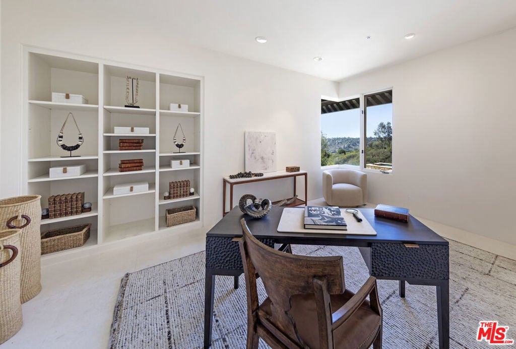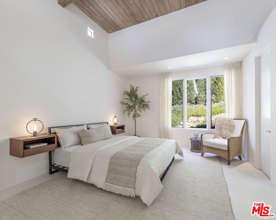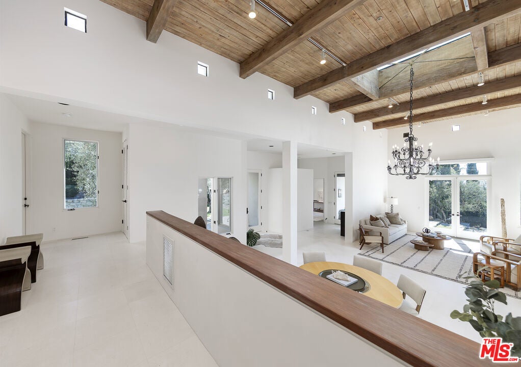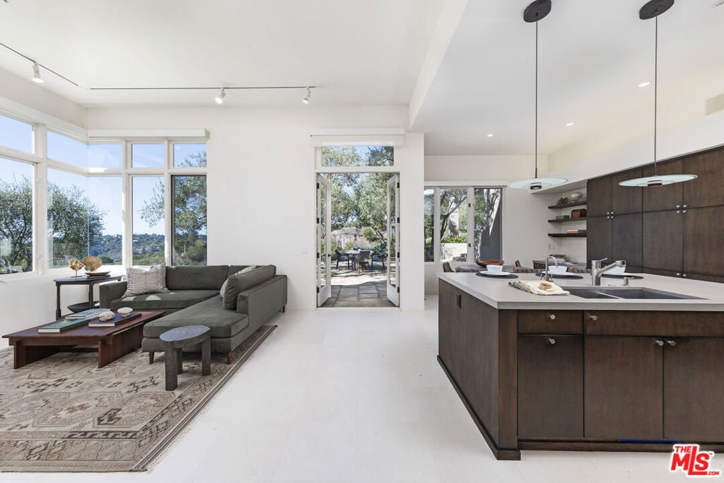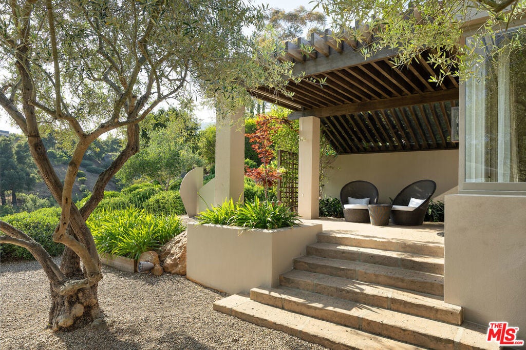 A sophisticated retreat in the hills of Montecito, this architectural gemdesigned by internationally renowned Barry Berkusboasts incomparable views of the harbor, Pacific Ocean, Channel Islands, and beyond. The 4-bedroom, 4-bath residence is a masterful expression of bold lines, soaring ceilings, and light-filled interiors. Champagne limestone floors flow continuously throughout the home. The landscaping, curated by acclaimed designer Mark Rios, elevates the outdoor experience with serene gardens featuring a koi pond, lavender beds, an infinity-edge pool with spa, towering cypress trees, climbing bougainvillea, and a charming alfresco dining area shaded by century-old olive trees. This is a Mediterranean daydream-just ten minutes from Coast Village Road and Butterfly Beach.A beautifully carved door marks the entry, revealing an alle of cypress trees that sets the tone for the tranquil elegance within. The open-plan living and den areas feature 15-foot ceilings, exposed wood beams, a skylight, and clerestory windows that bathe the space in natural light. Defined without walls, the layout flows effortlessly. Just off the main living area, a spacious private study-or optional fourth bedroom-offers flexibility and privacy. The kitchen and dining areas, accessed through another set of French doors, are designed for both function and beauty. Oversized windows frame panoramic views, while a central Caesarstone island anchors the space. Top-of-the-line appliances include a Viking cooktop and ovens, Sub-Zero refrigeration, and Miele appliances. A few steps above the main level, the bedroom wing includes two en-suite guest rooms and a beautifully reimagined primary suite. The primary suite enjoys its own private patio with ocean views, a luxurious dressing area with custom European-style closets, and a serene spa-like bath. Picture windows frame Japanese maples, while a soaking tub, seashell limestone counters, and bespoke cabinetry complete the sanctuary. Additional amenities include a Sonos sound system throughout the interior and exterior, newly installed solar panels with backup battery, and access to a shared private well with two neighboring residences. Located on a quiet private lane, this exceptional home offers the perfect balance of refined design and peaceful seclusion.
