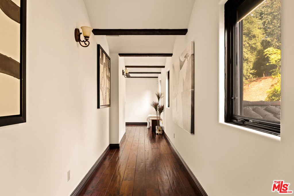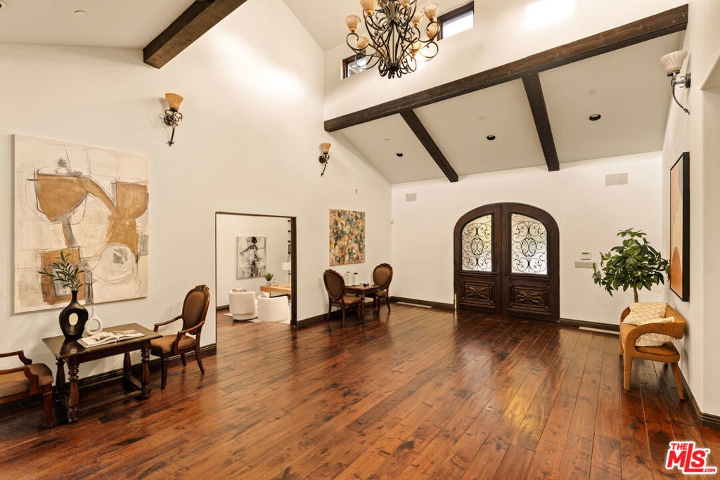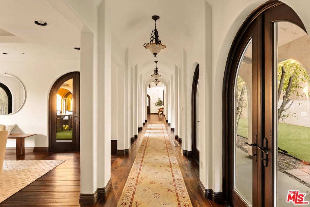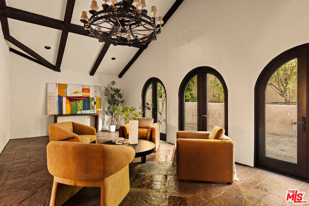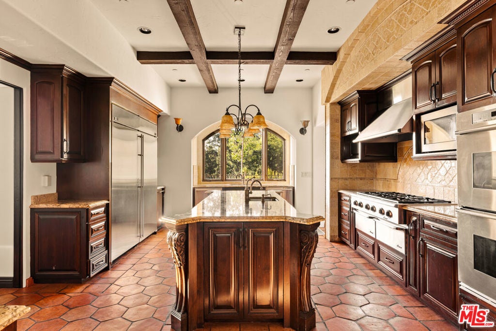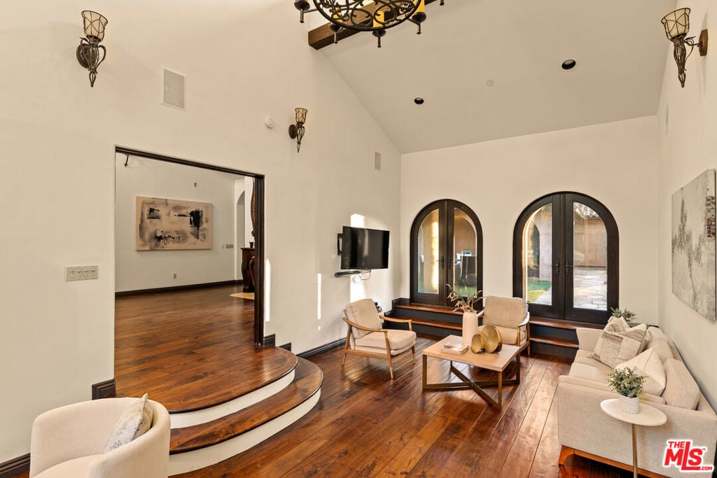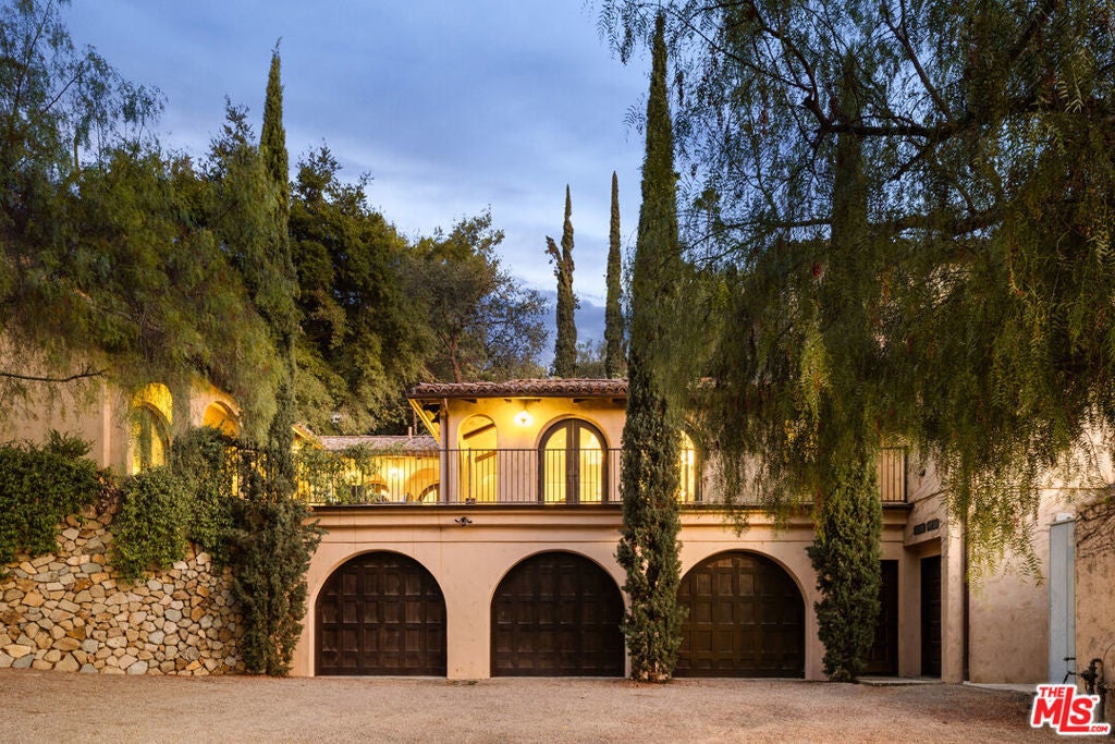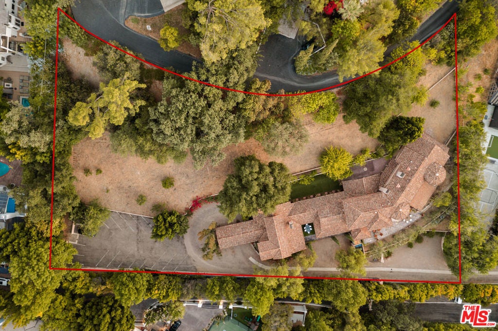 Welcome to this reimagined custom built European Villa with stunning views and magnificent sunsets is set back from the street up an approx 500' drive and set on its own private hilltop knoll. This rural country lane cul-de-sac is the site of many celebrity owned estates and offers a peaceful feeling of living in the countryside yet minutes from legendary Ventura Blvd shopping, restaurants and commuter routes. As you pass through the grand entrance gates, you enter a private world class sanctuary of mature trees set on an incomparable 1.27 acre lot where the possibilities are only limited by your own imagination. This handcrafted original owner's legacy estate welcomes you as you pass the olive grove and arrive to a 25 car motor court that could be the future sight of paddle/tennis courts, sports courts, soccer field and more! An oversized 3-car garage with stone arch accents as well as a multi-car porte-cochere welcomes both the homeowners and their lucky guests. The grand foyer w/ fireplace & soaring ceilings sets the stage for the architectural magnificence that awaits. Hand hewn wide plank solid walnut floors flow through most rooms in the home. A true executive home office will make you never want to leave. The stately art gallery hallway is approx. 120-ft of space that has walls of glass bringing natural light and greenery into view. A banquet-sized formal dining room caters to both large scale events as well as intimate family occasions. The chef's kitchen offers granite counters, stone tile floors and a suite of professional stainless appliances opening to a breakfast room rotunda and the outdoor living dining patio beyond. Additional entertaining spaces include a vaulted ceiling den with fireplace perfect for a library or game room. The adjacent media room is both a family/screening room as well as a bar room area opening to the patio. There are 2 generous sized en suite bedrooms on this level with separate entrances. The penthouse primary suite is truly the crowning glory of the home with an additional art gallery hallway and endless views over the Valley, treetops and mountains beyond. The main bedroom area is flanked by a sitting room/additional office space, dual baths (one w mosaic tile and the other with white Calcutta marble) 2 massive movie star worthy closets and a generous home gym that could be future additional bedroom space. There is an elevator that serves the main and penthouse levels as well as the garage and home office level. The lower level home office space has been the site of a successful business for approx. 17 years and offers approx 1,700 sq ft of limitless options. Future kids fun zone, screening room, additional bedroom space, etc. Currently there is a service kitchen, bathroom and 2 enclosed office spaces with its own entrance. The property even has its own fire hydrant! This one-of-a-kind custom Villa is ready for its next privileged owner to move in and experience what The Good Life truly means. Celebrate your success, good fortune, family & friends at this legendary estate that has been the site of numerous Hollywood parties and adventures and now awaits a new steward to usher in a new era of fame and fortune and tranquility.